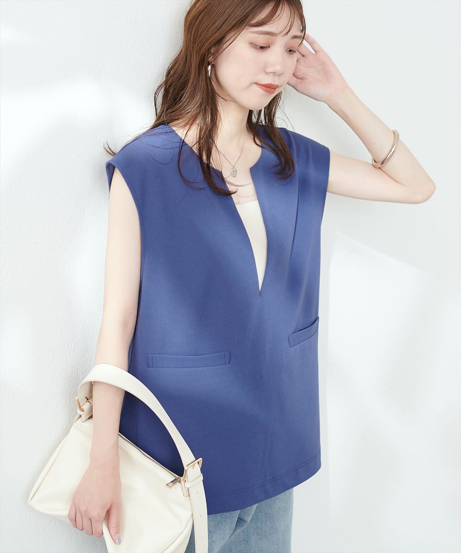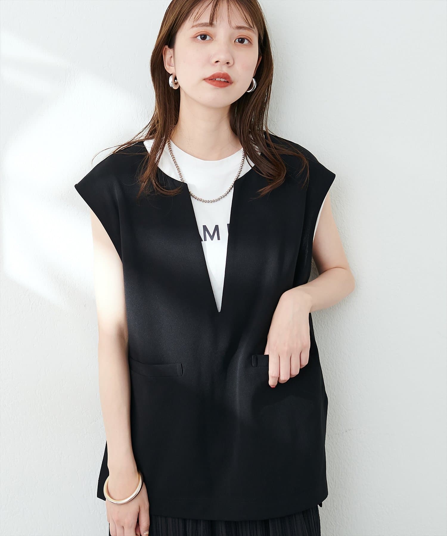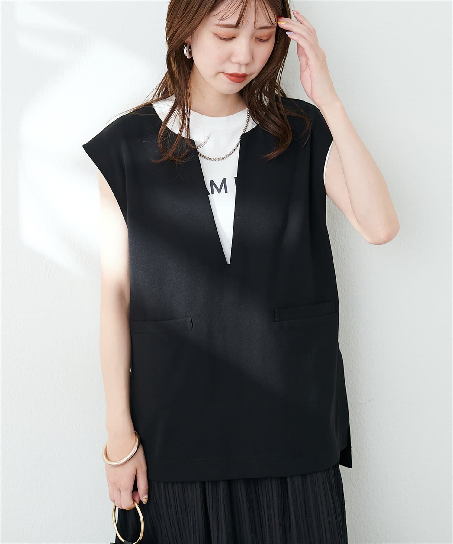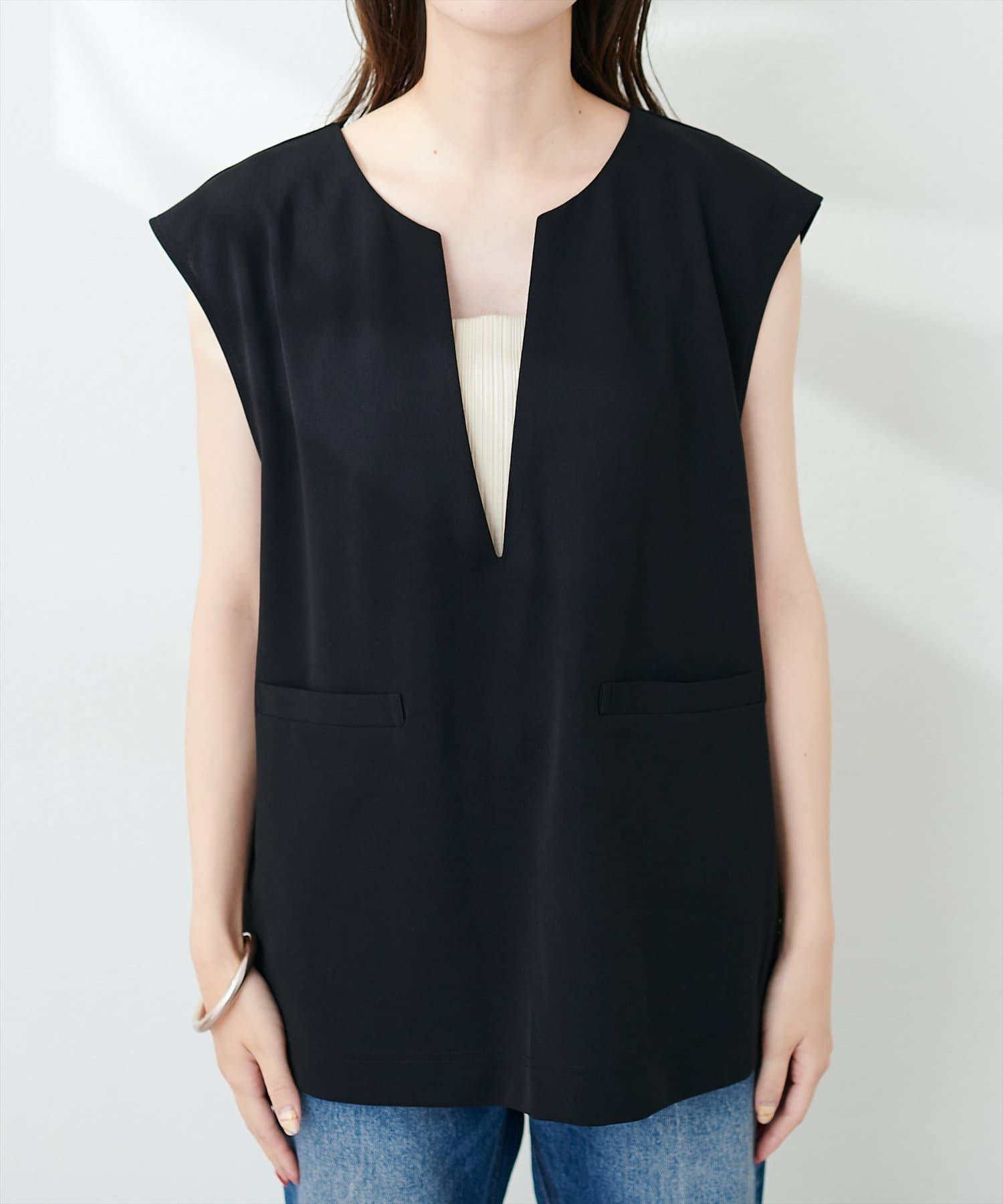カットジョーゼットキーネックベスト