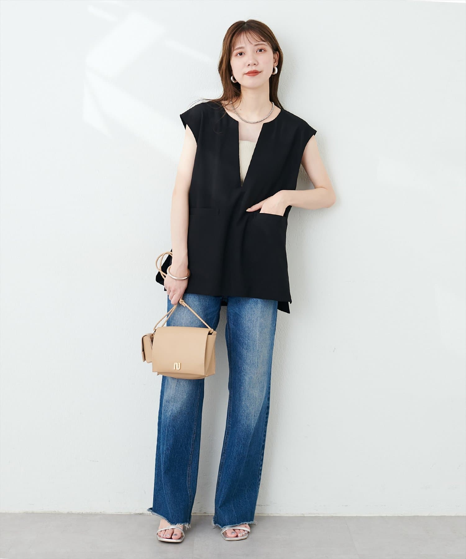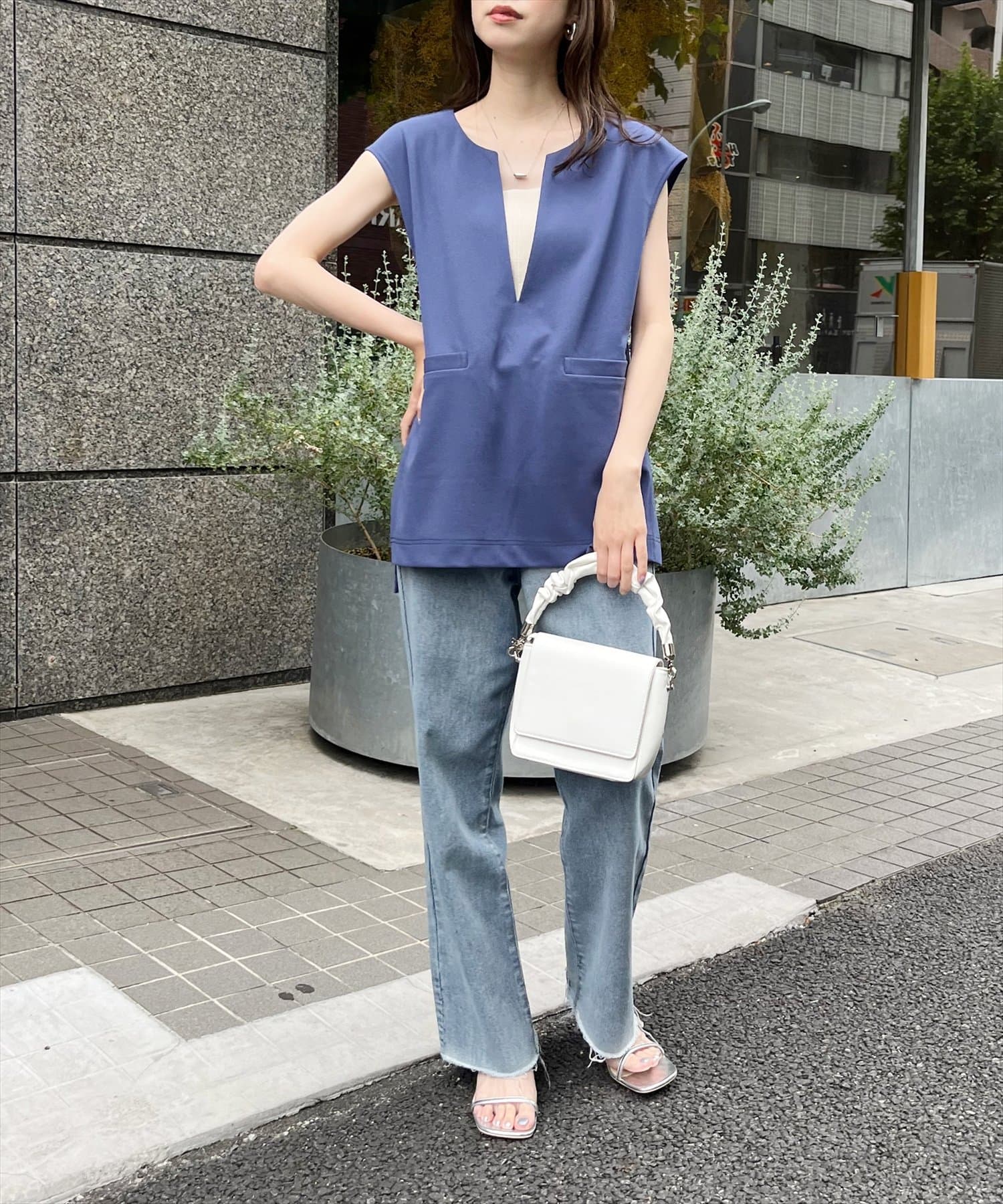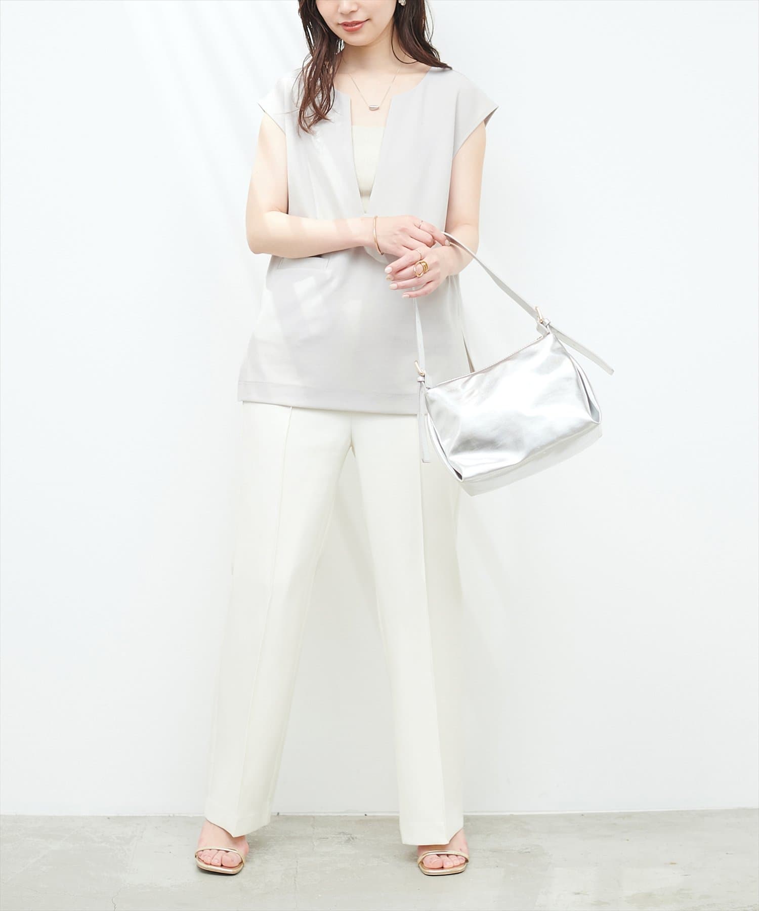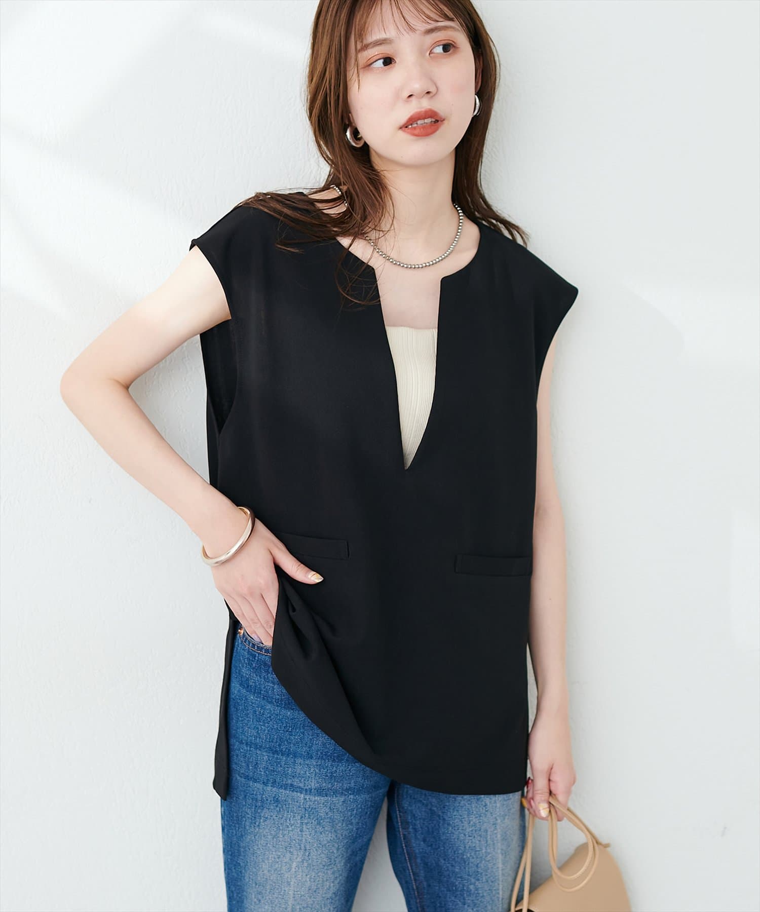 カットジョーゼットキーネックベスト