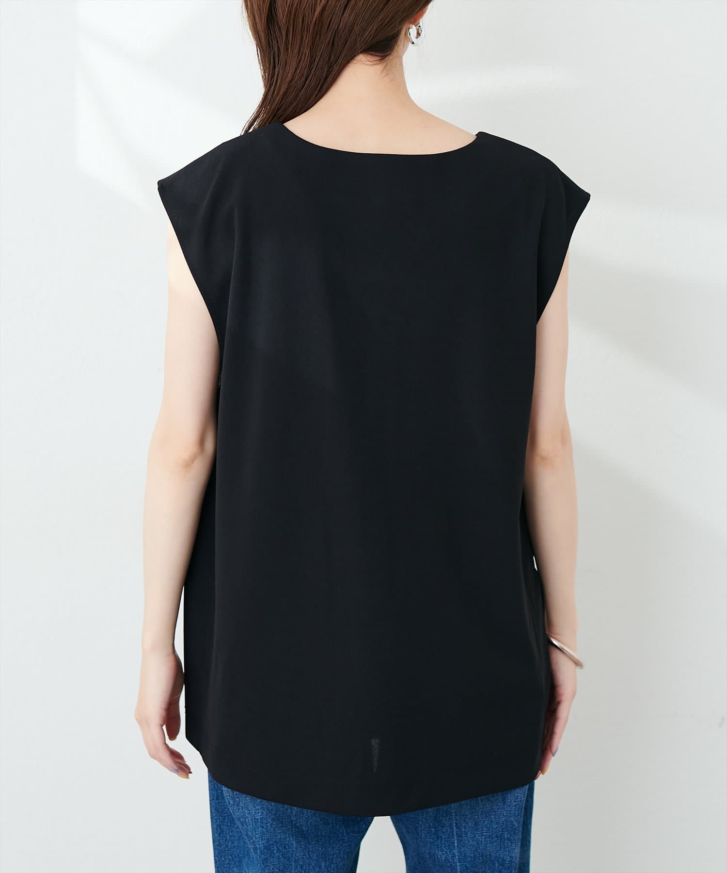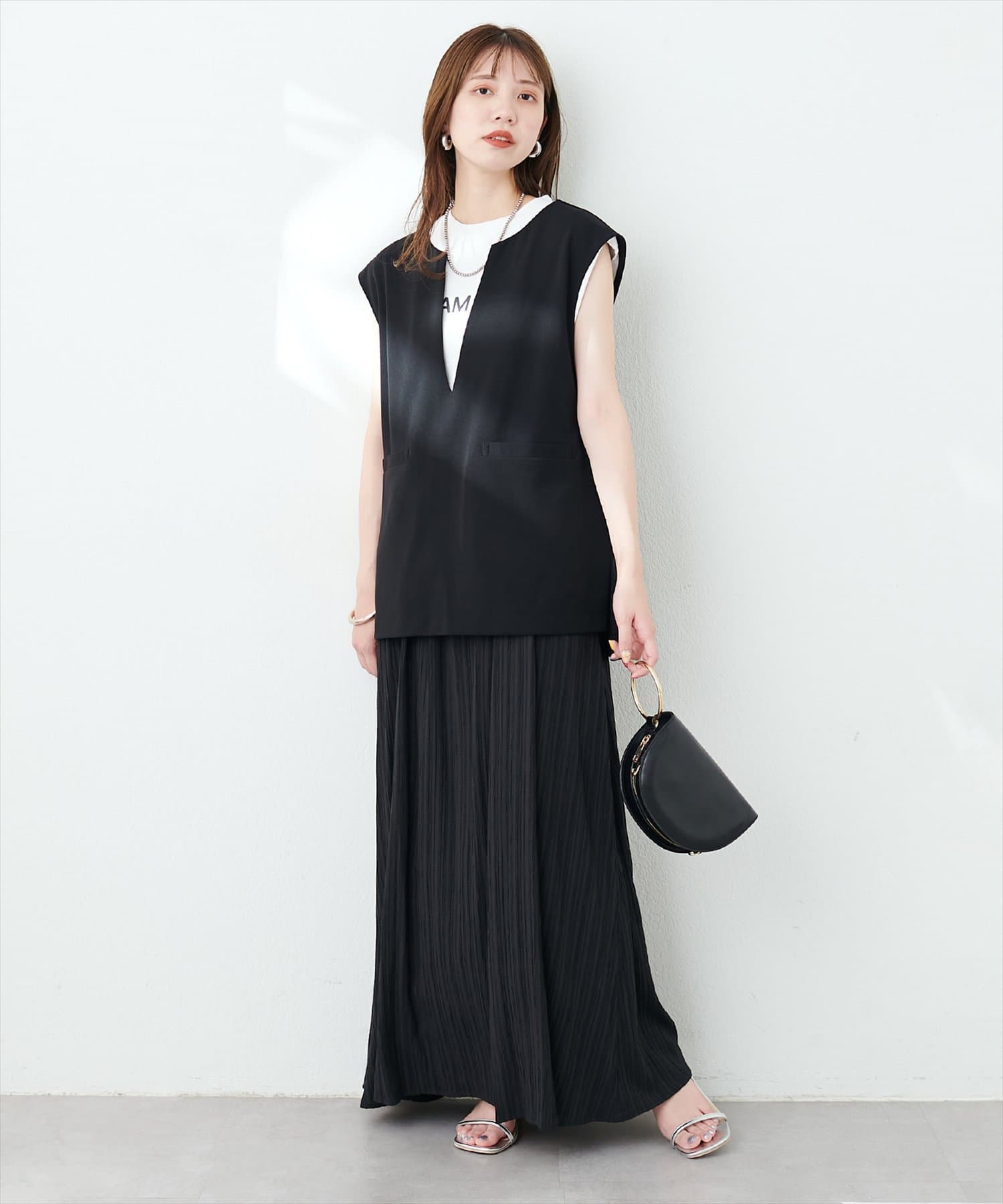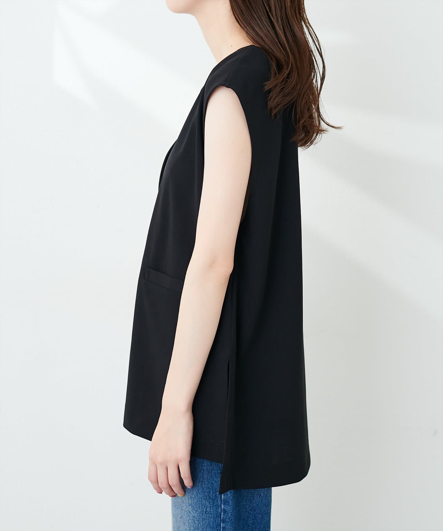 やや伸縮性があり、ゆるっと着れるカットジョーゼットのベスト。