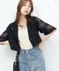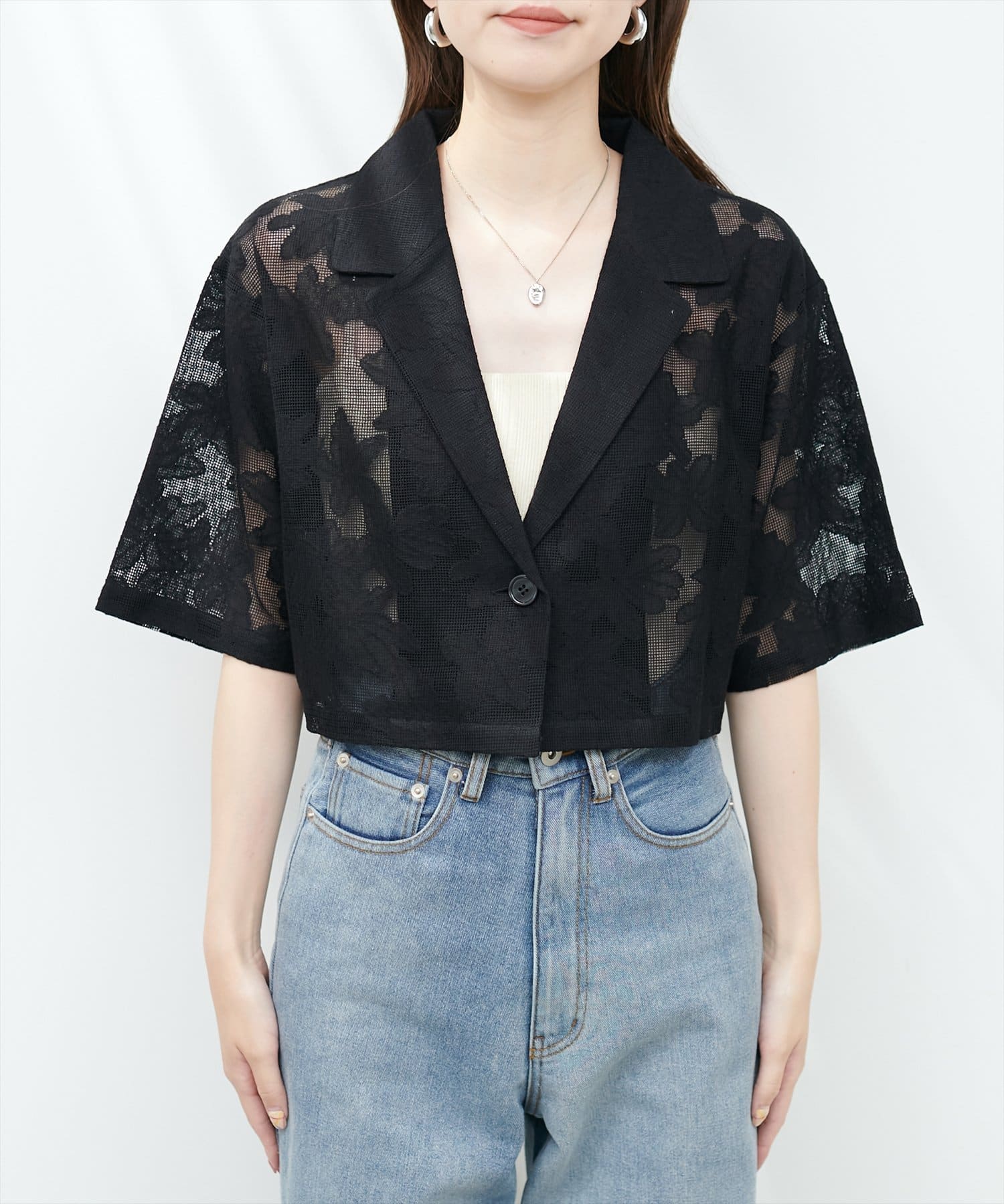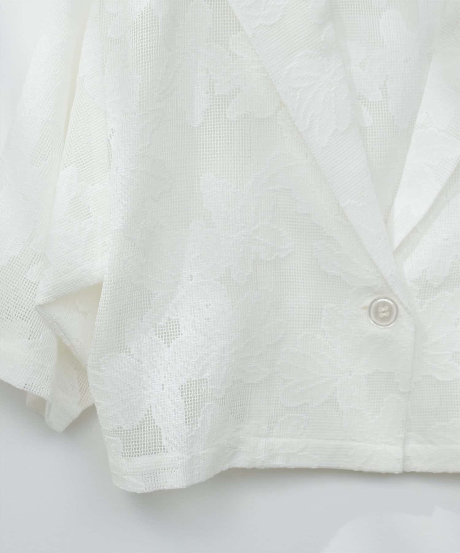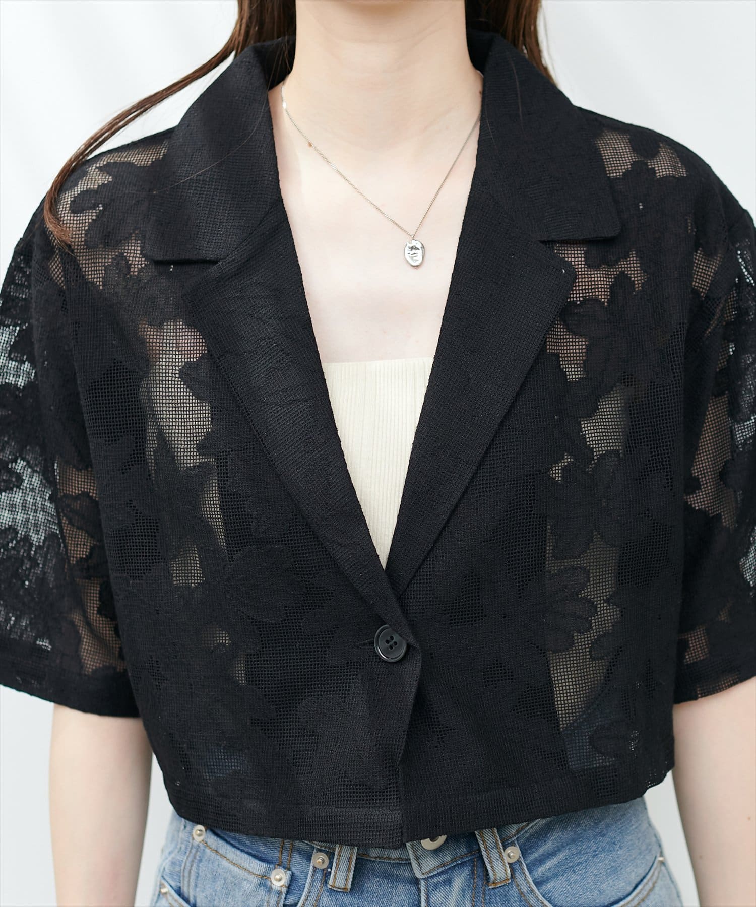ヴィンテージ感のあるクロシェレースを使用したショート丈ジャケット。