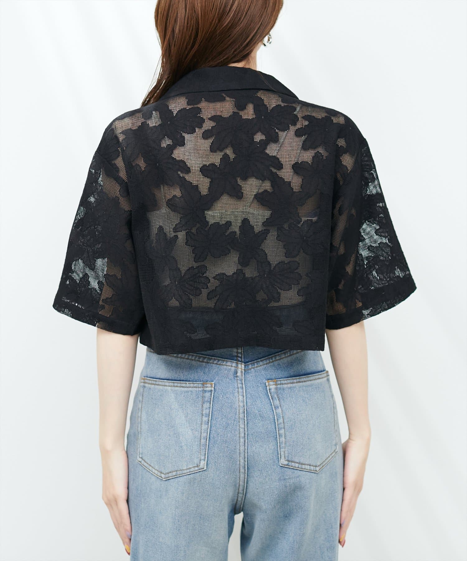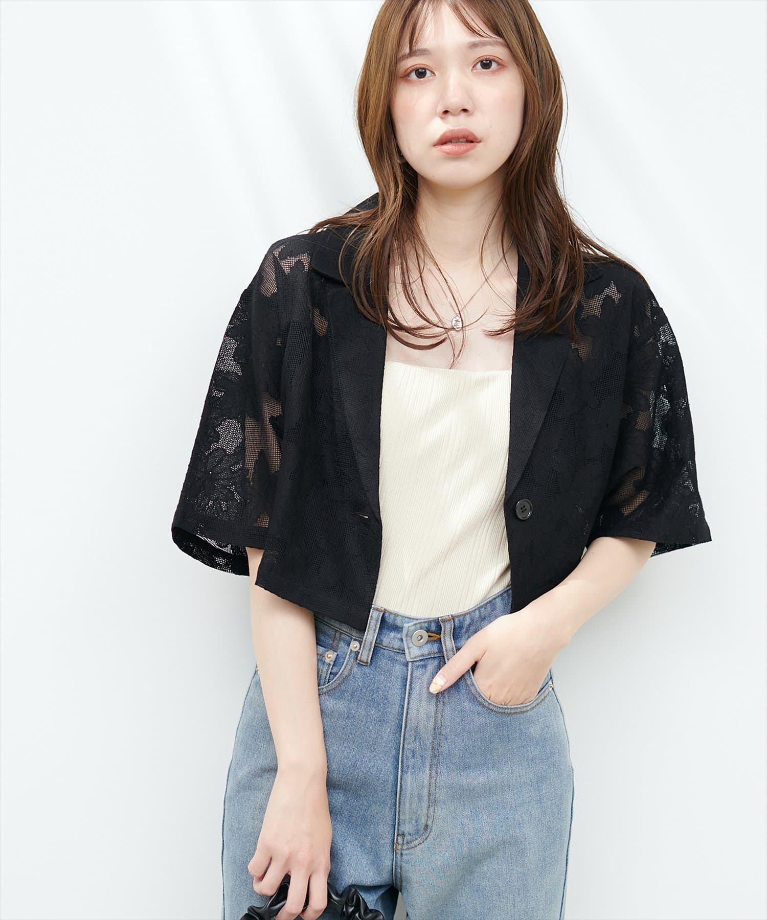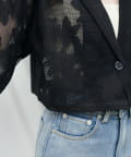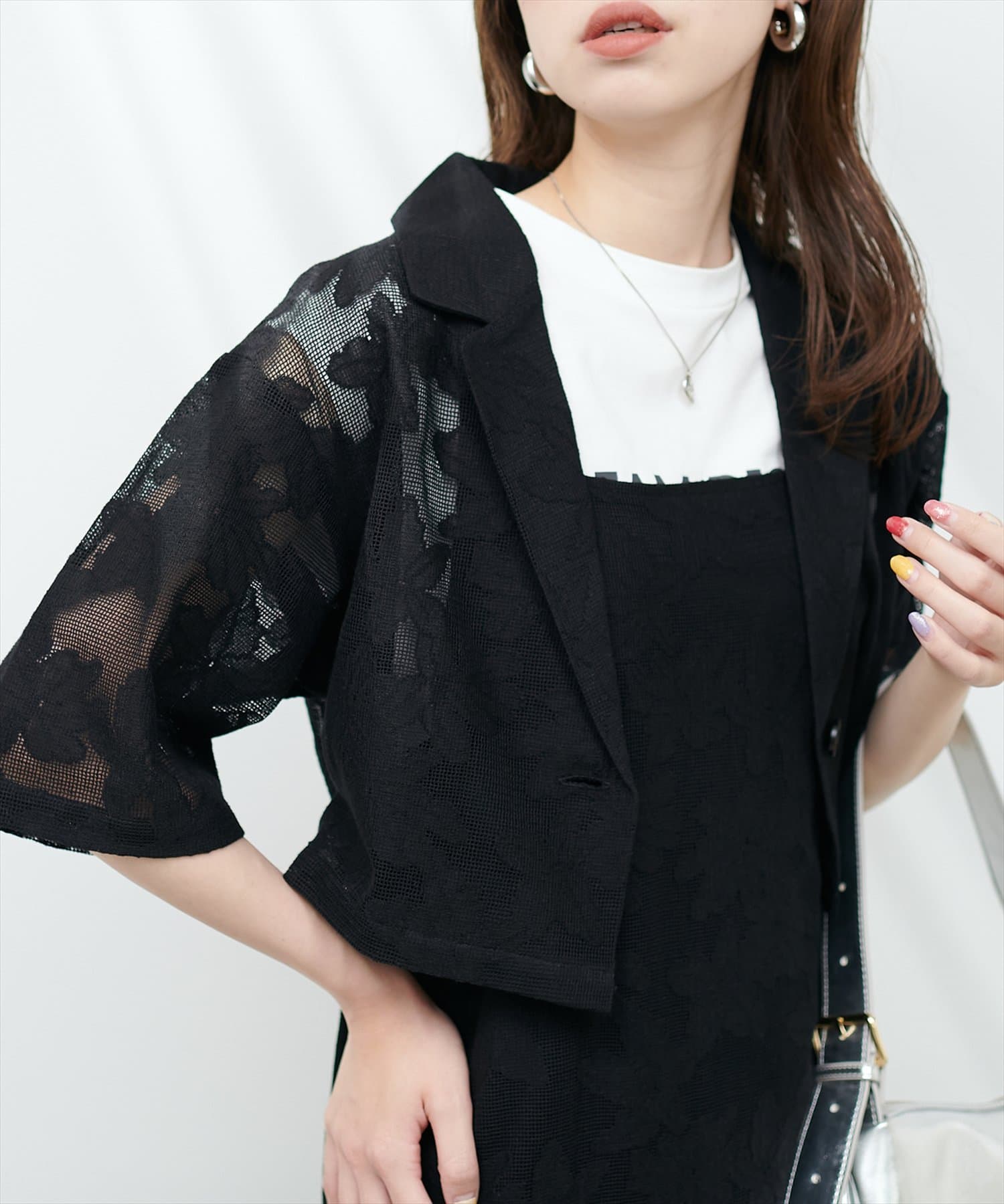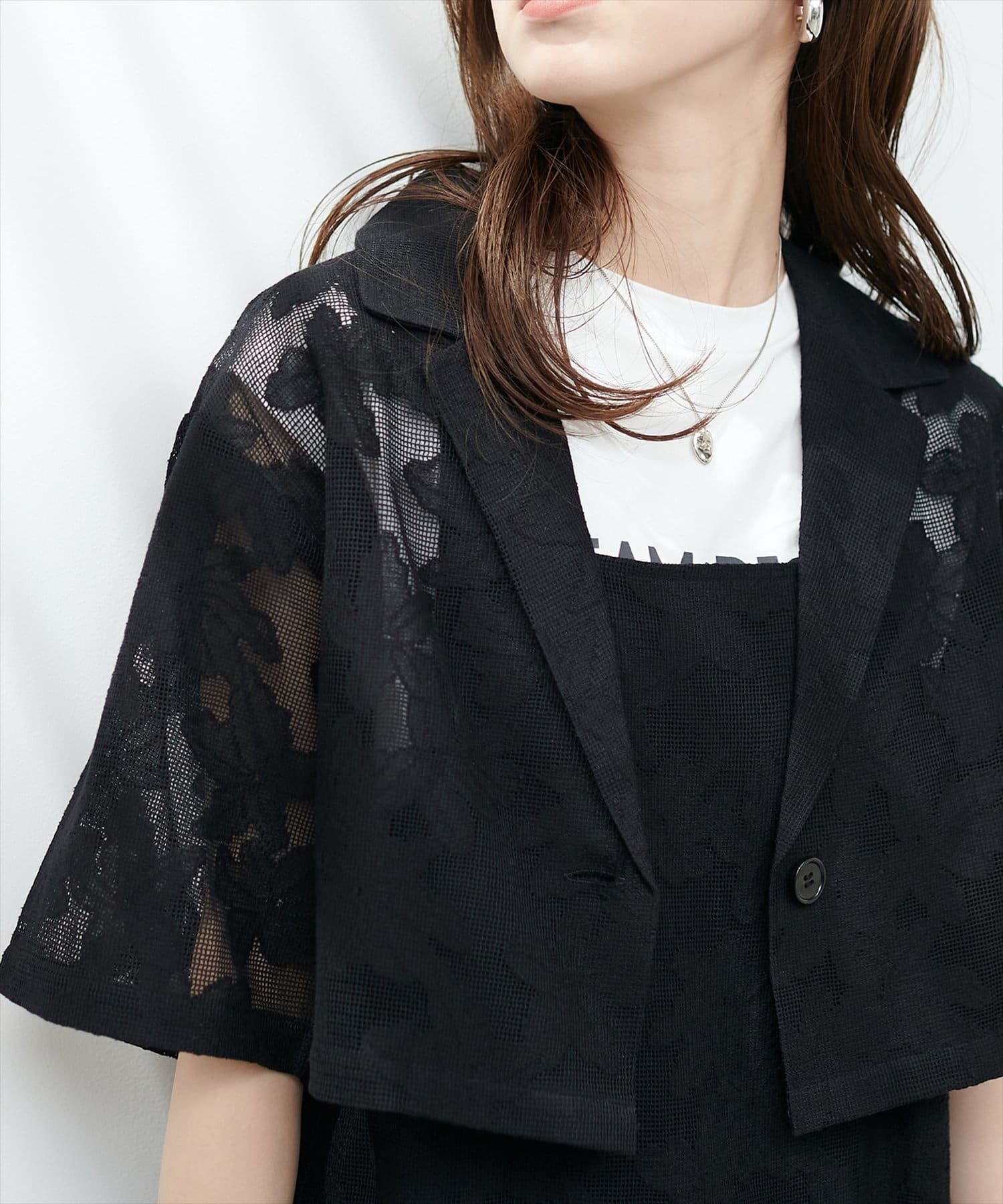 ヴィンテージ感のあるクロシェレースを使用したショート丈ジャケット。