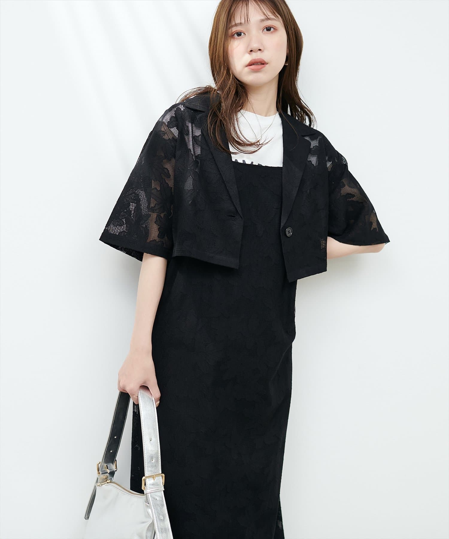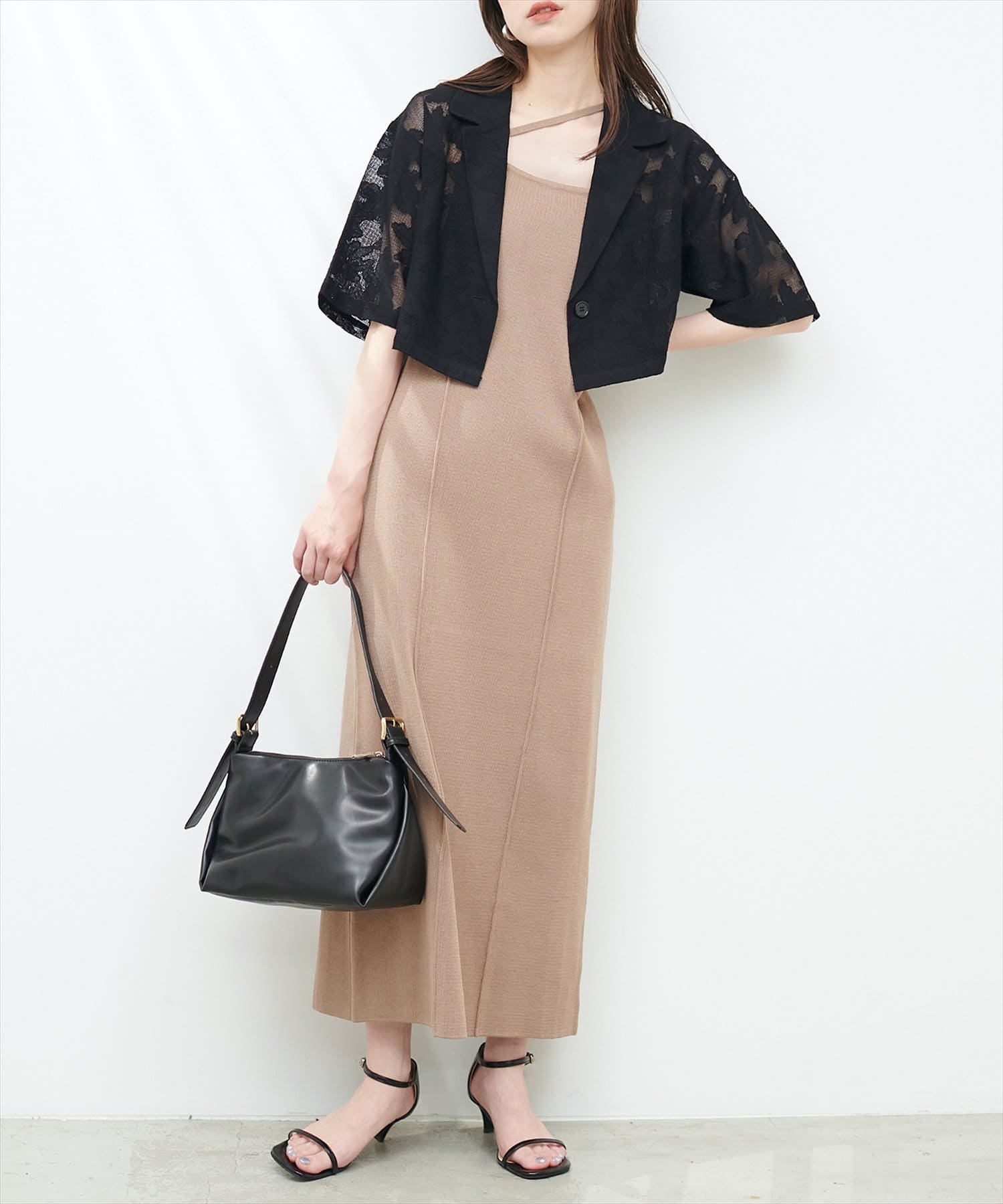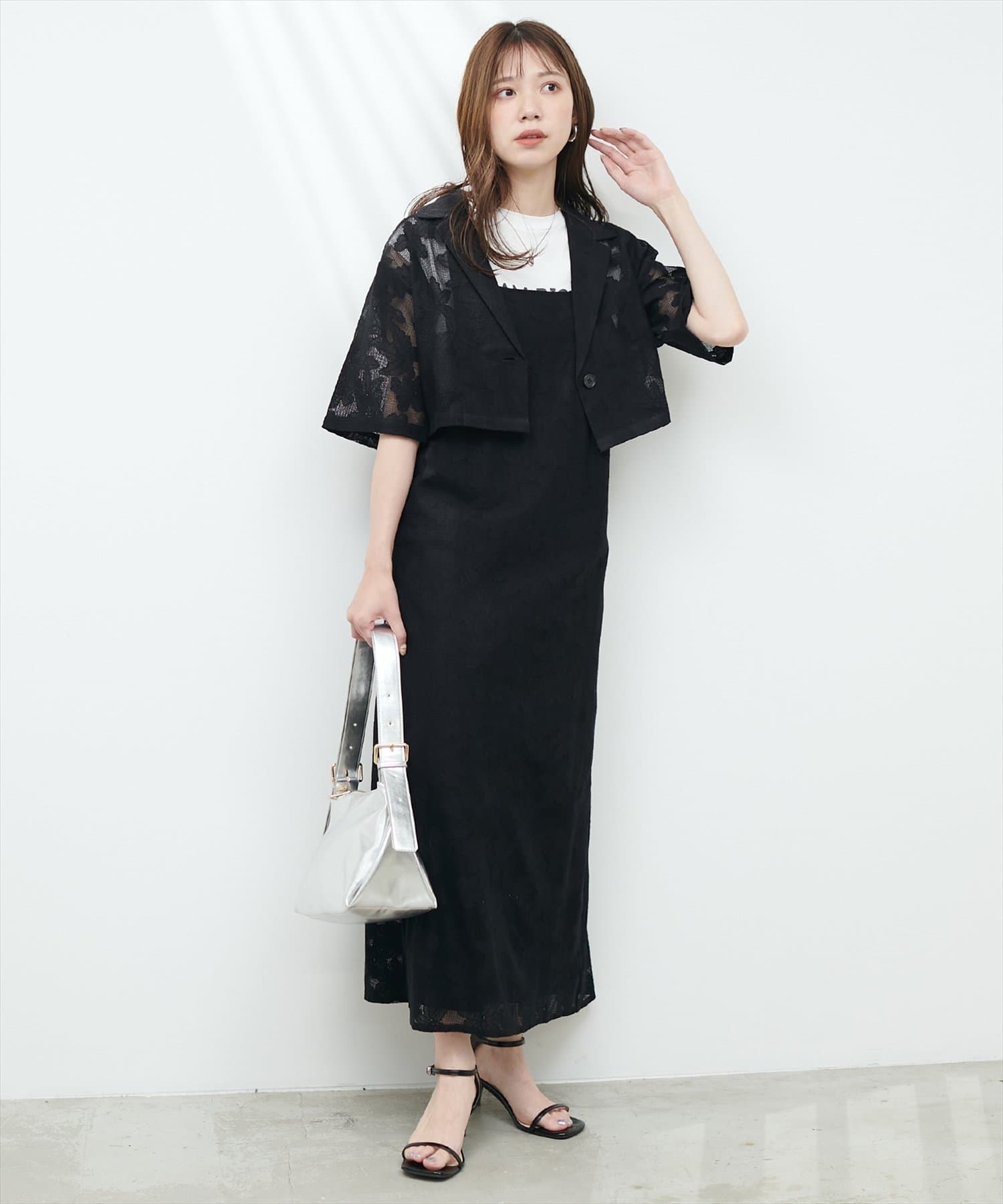 シリーズのクロシェレースキャミワンピースとセットアップでお召し頂くと、洗練された中にトレンド感のあるスタイリングが完成します。