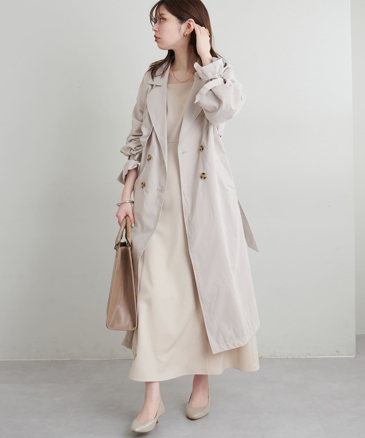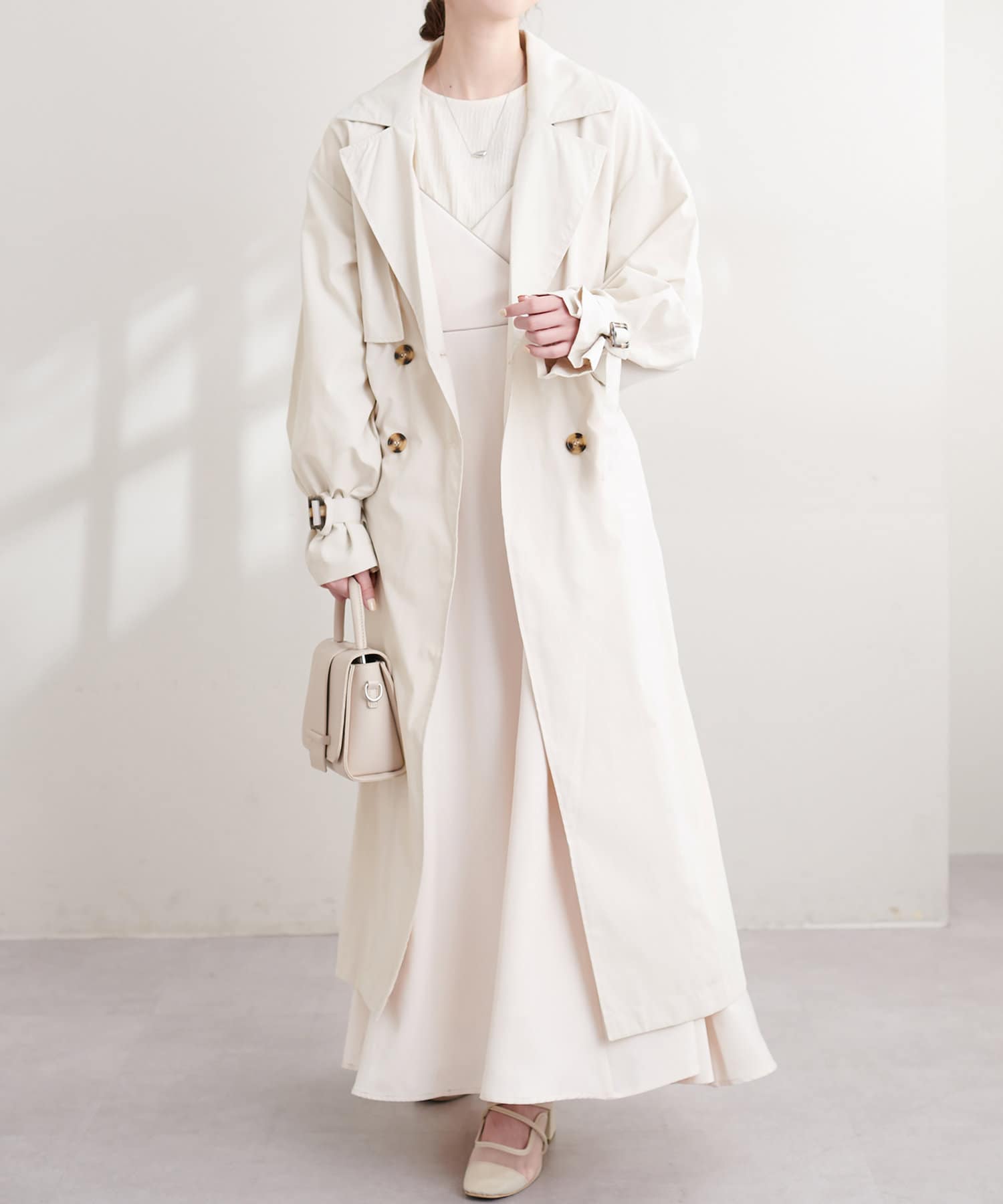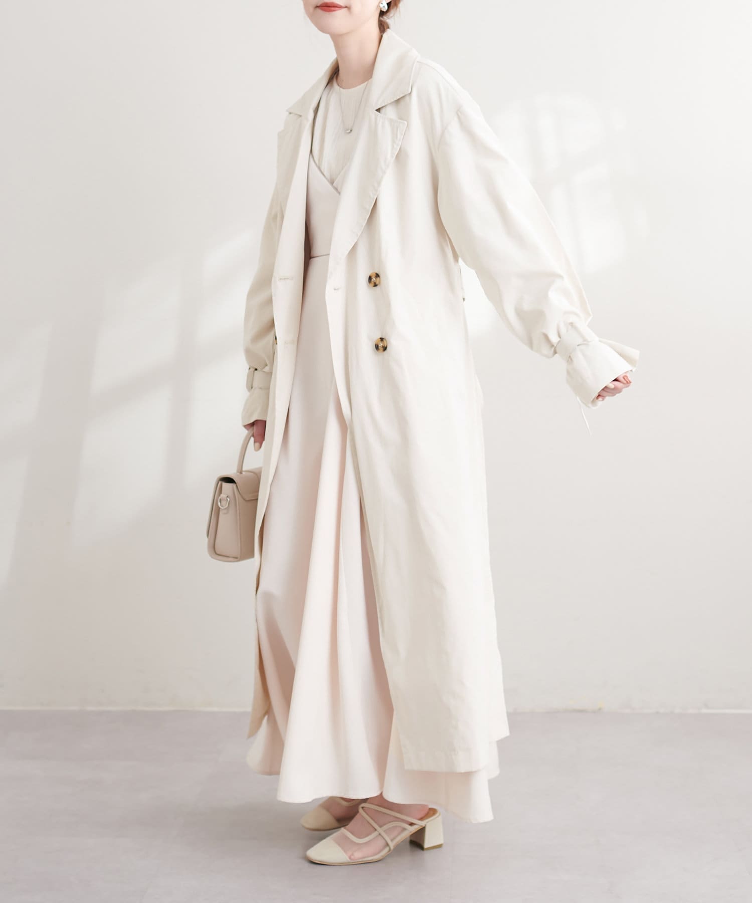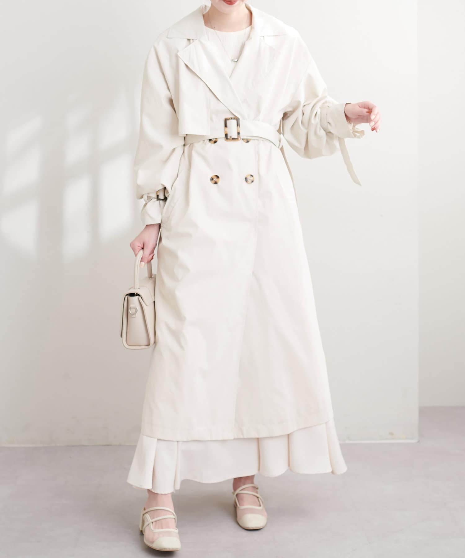 ボタンを全て閉じて、付属のベルトでウエストマークして頂くとメリハリのあるワンピース風な仕上がりに◎