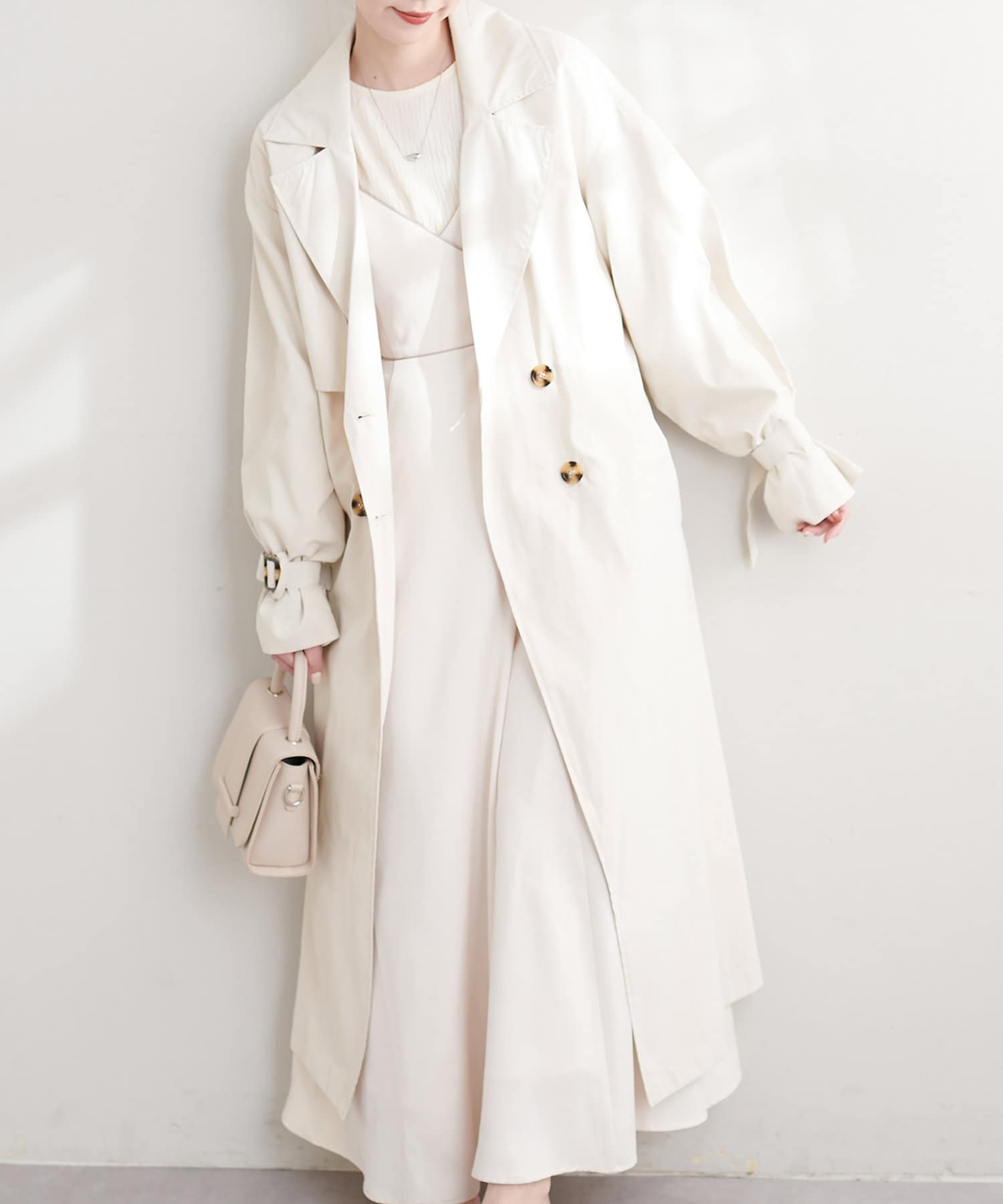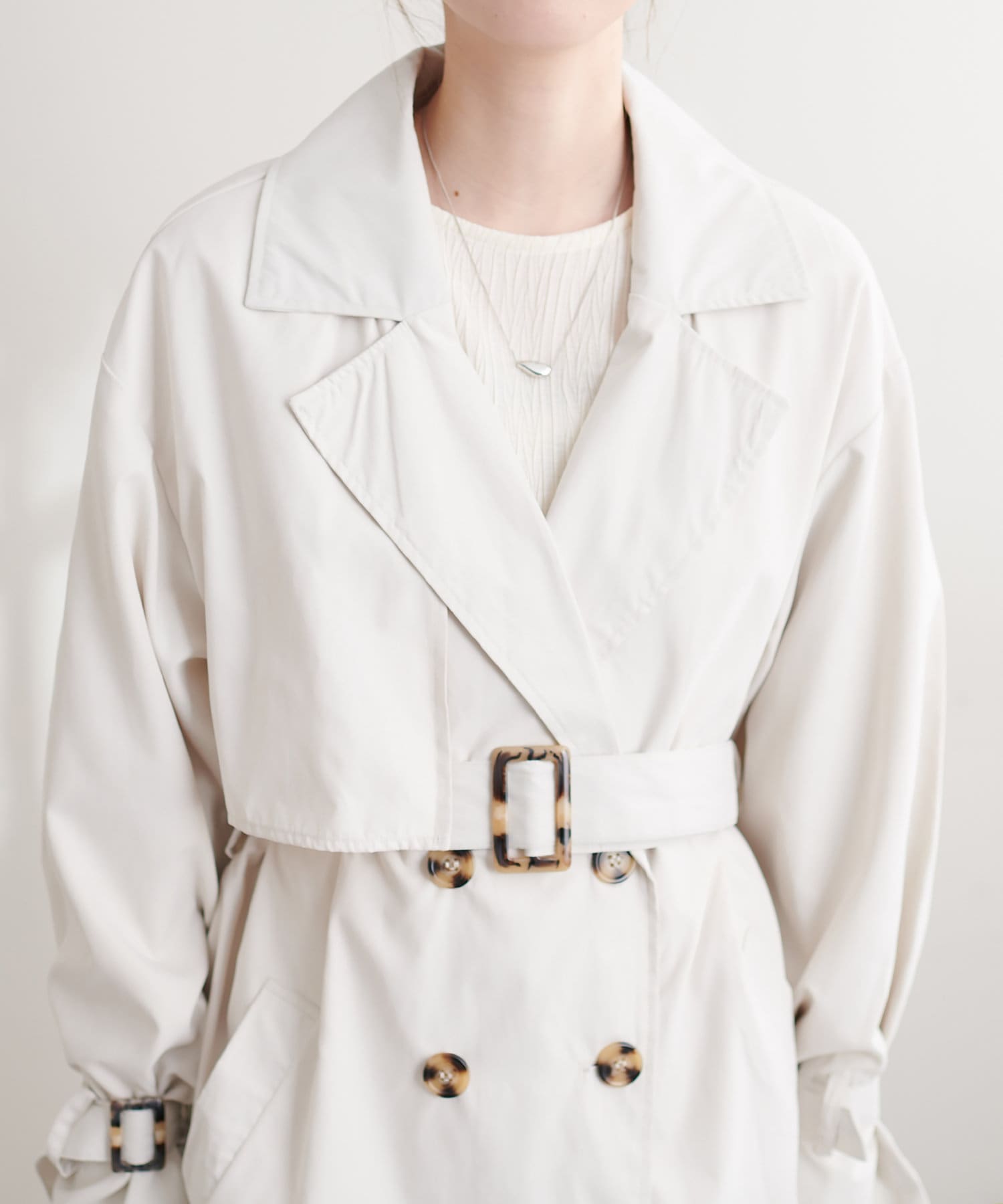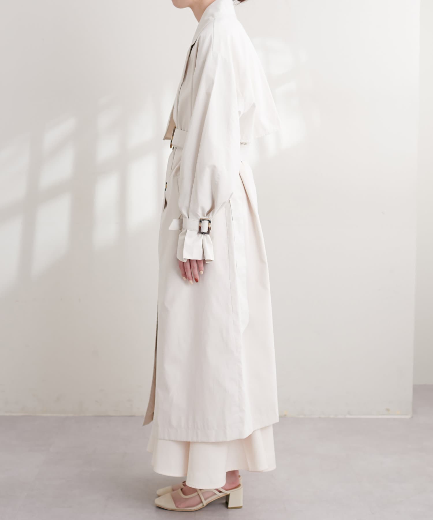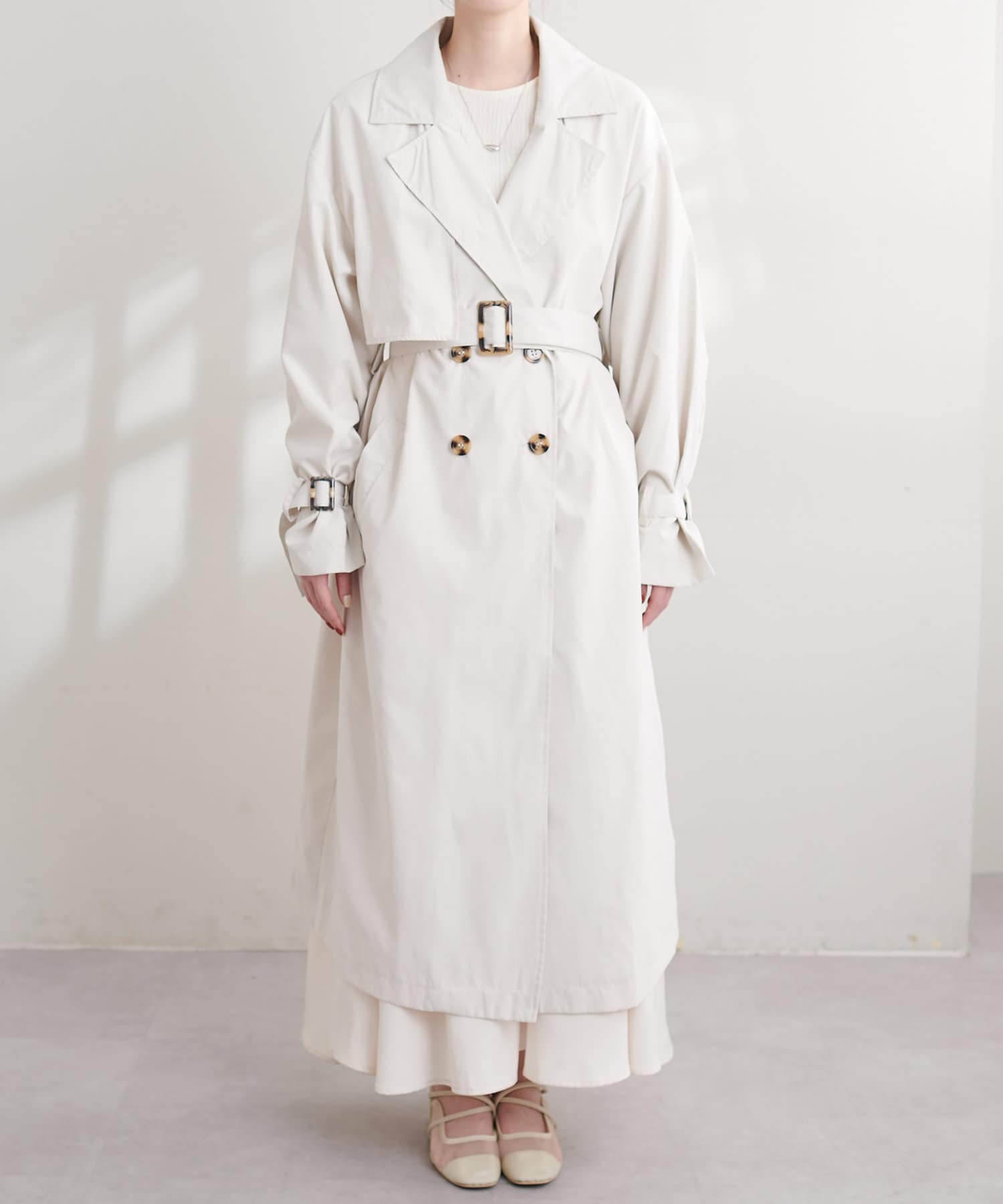 ボタンを全て閉じて、付属のベルトでウエストマークして頂くとメリハリのあるワンピース風な仕上がりに◎