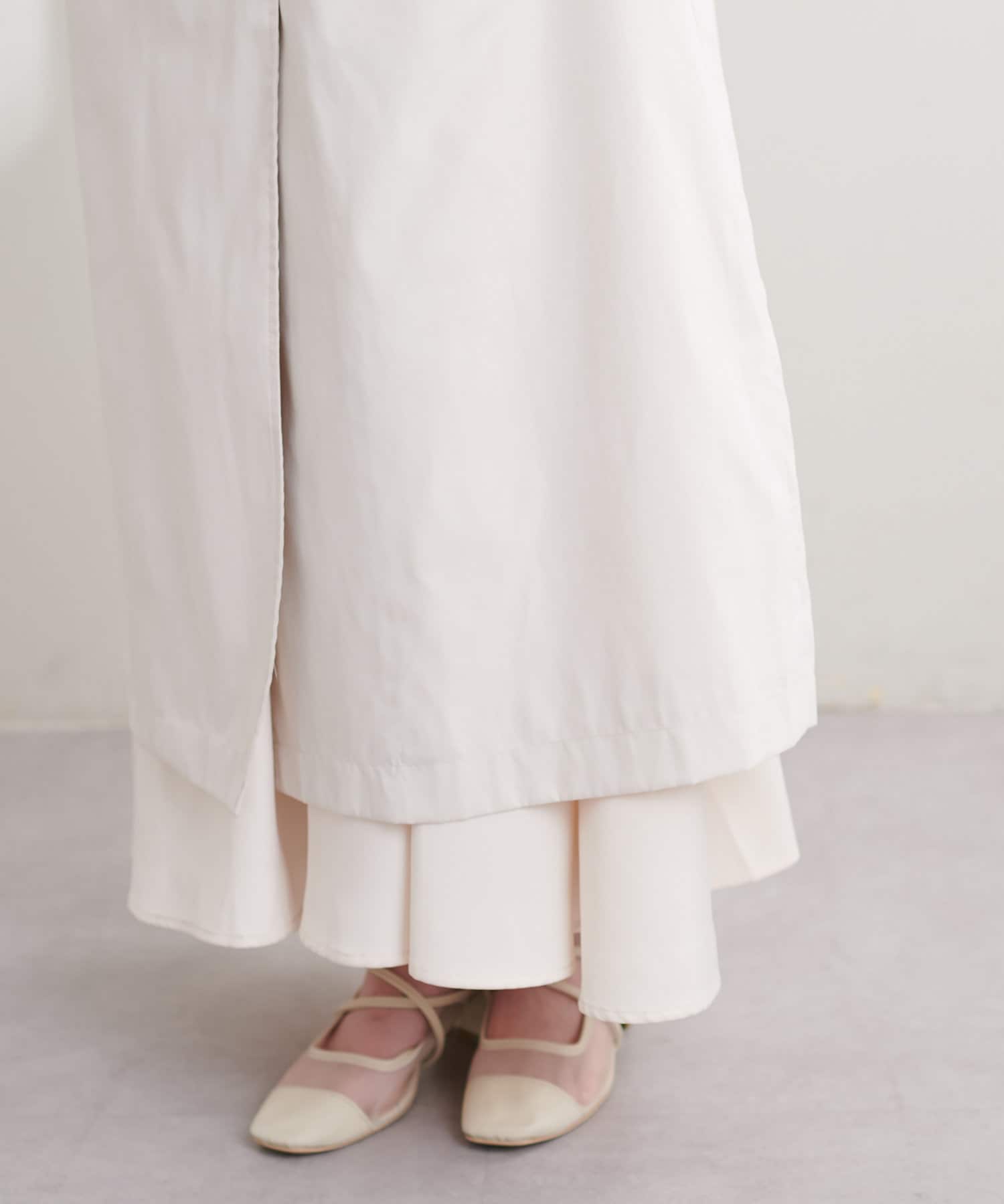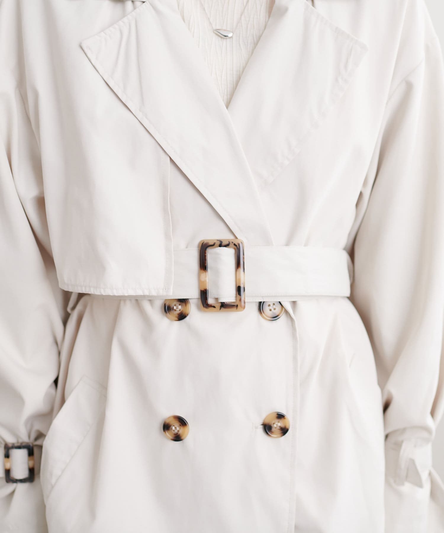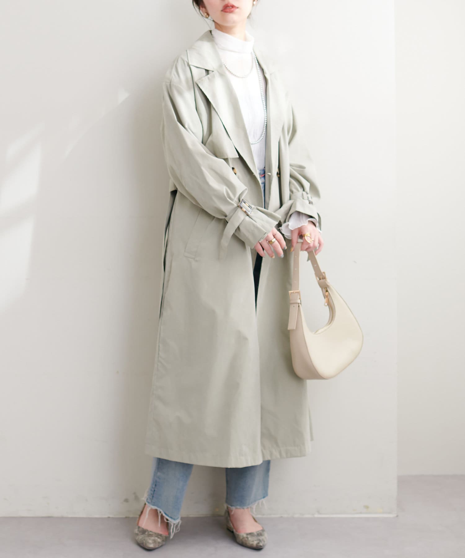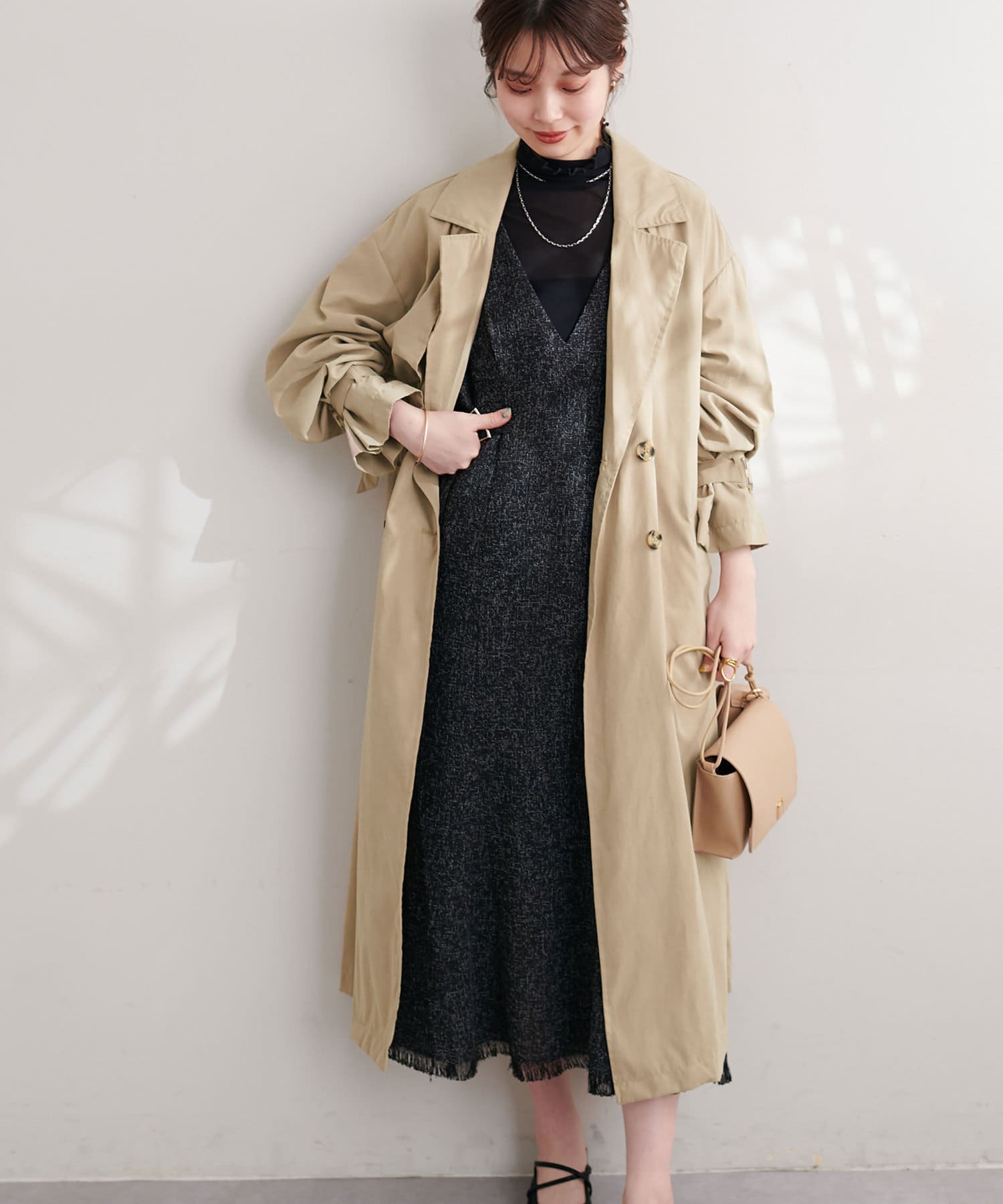 ボタンを全て閉じて、付属のベルトでウエストマークして頂くとメリハリのあるワンピース風な仕上がりに◎