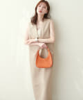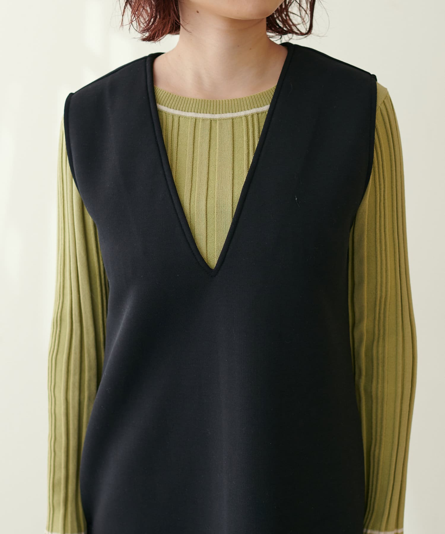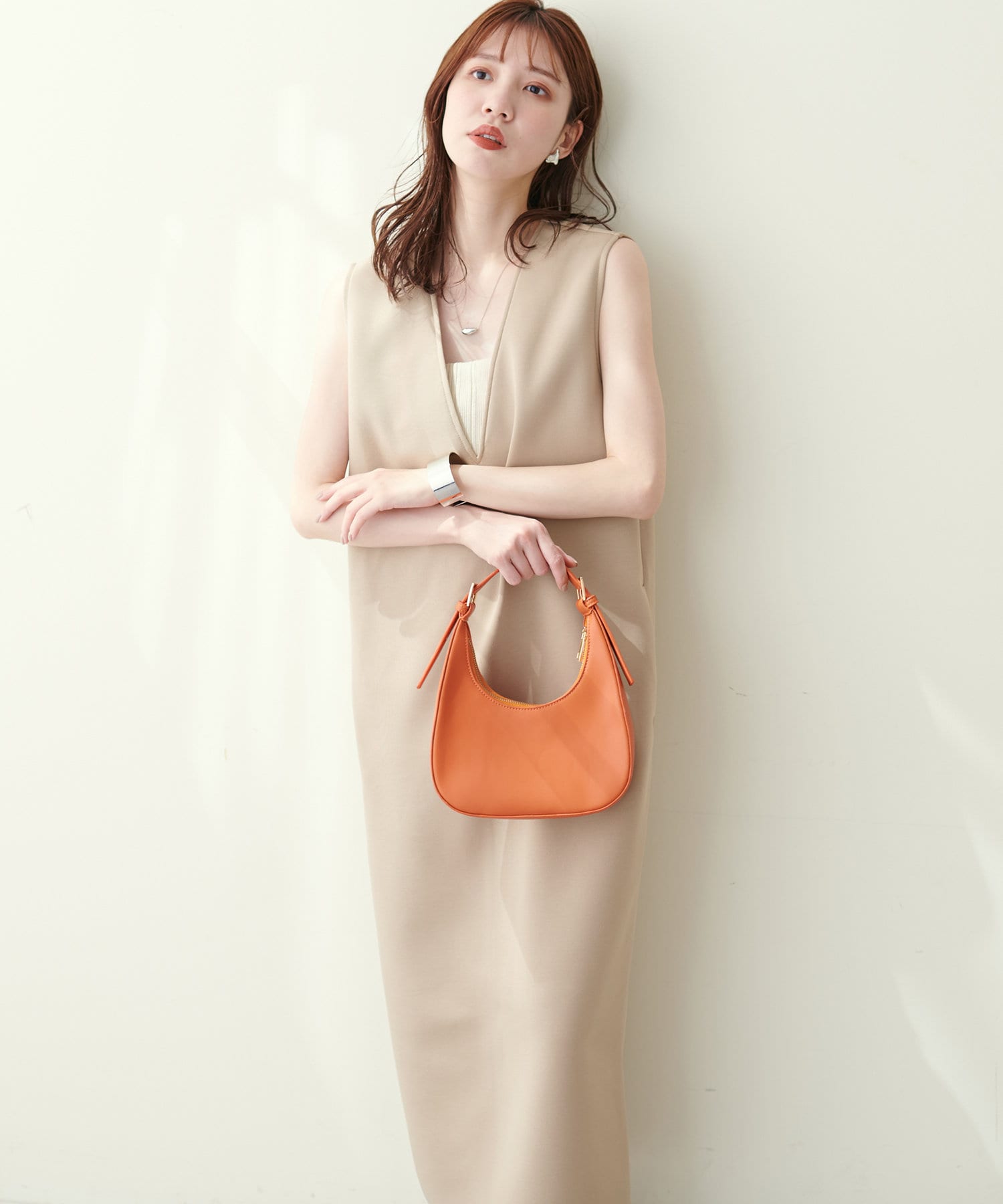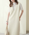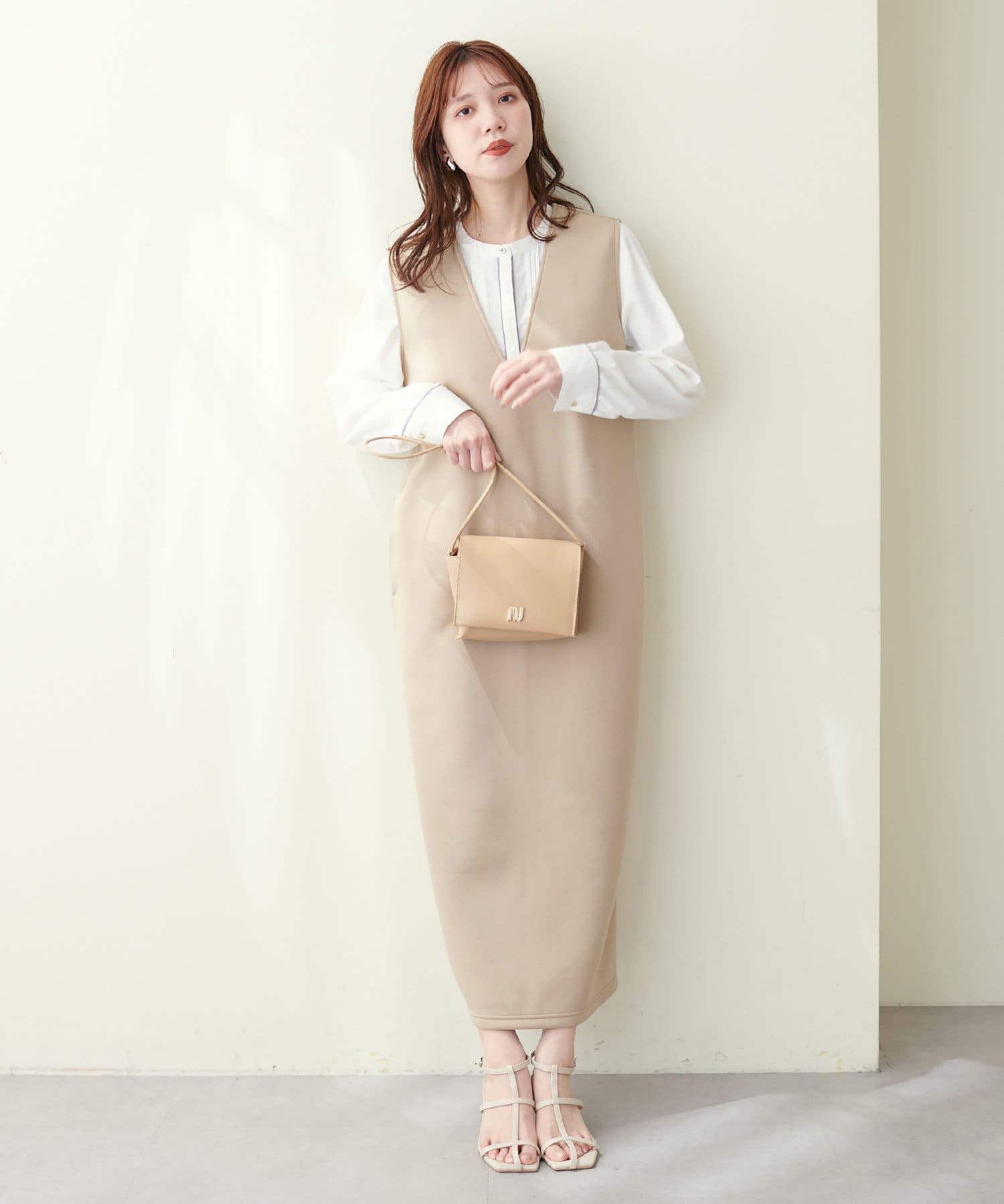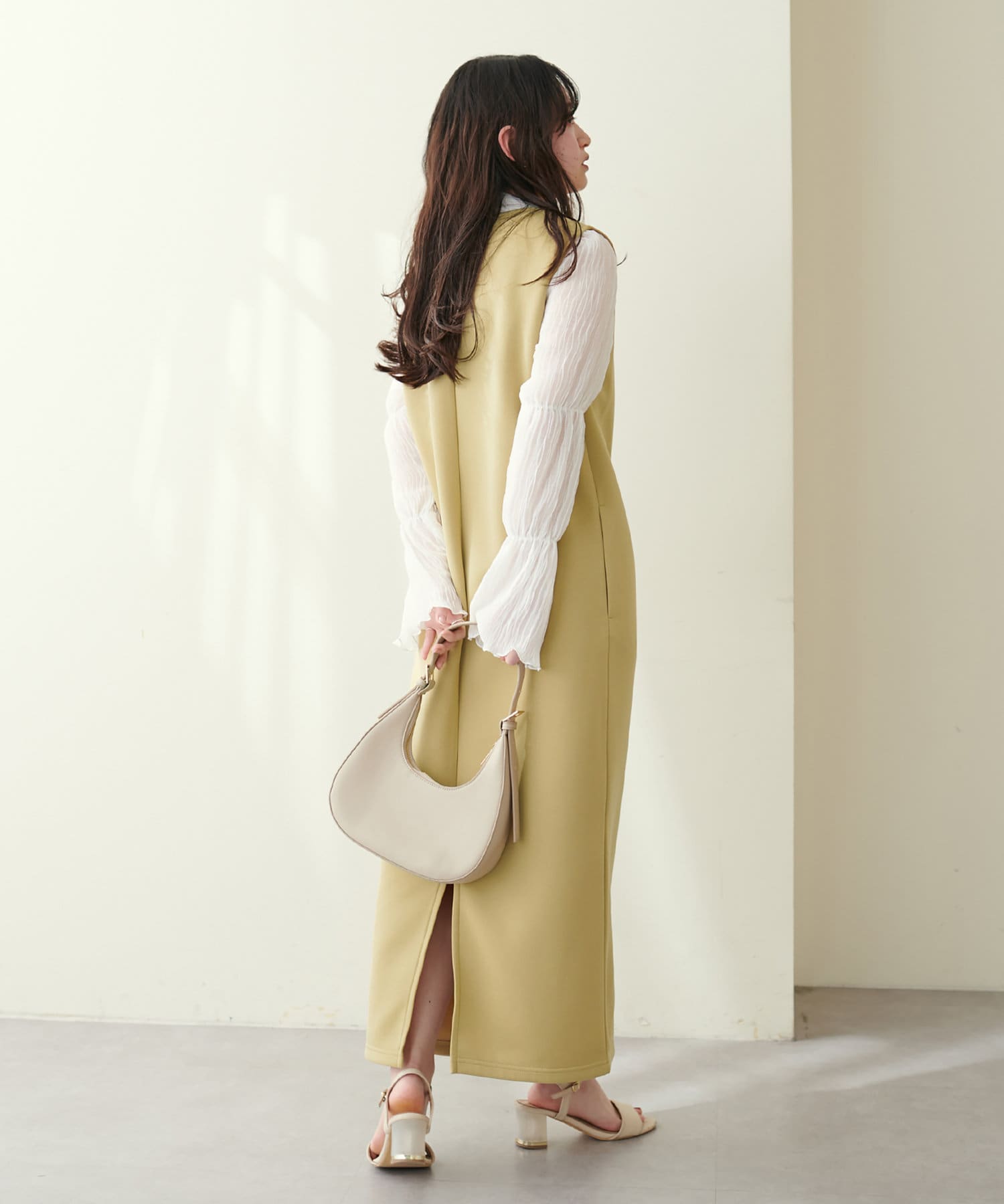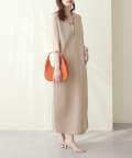 Vネックのデザインがお顔周りをシャープに見せるワンピース。