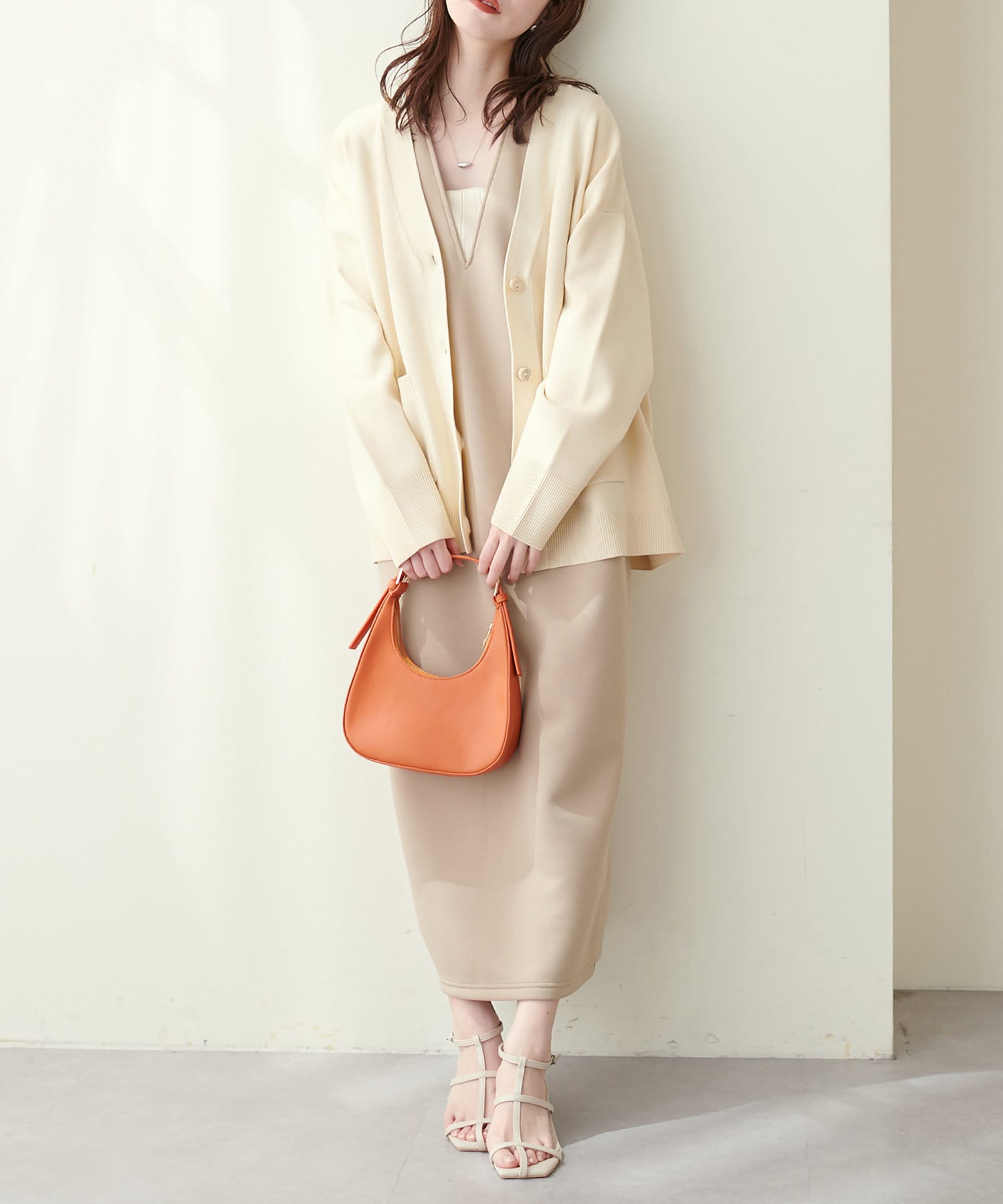 ゆとりのあるシルエットで抜け感がありながら、深めのVネックが大人らしい印象を与えます。