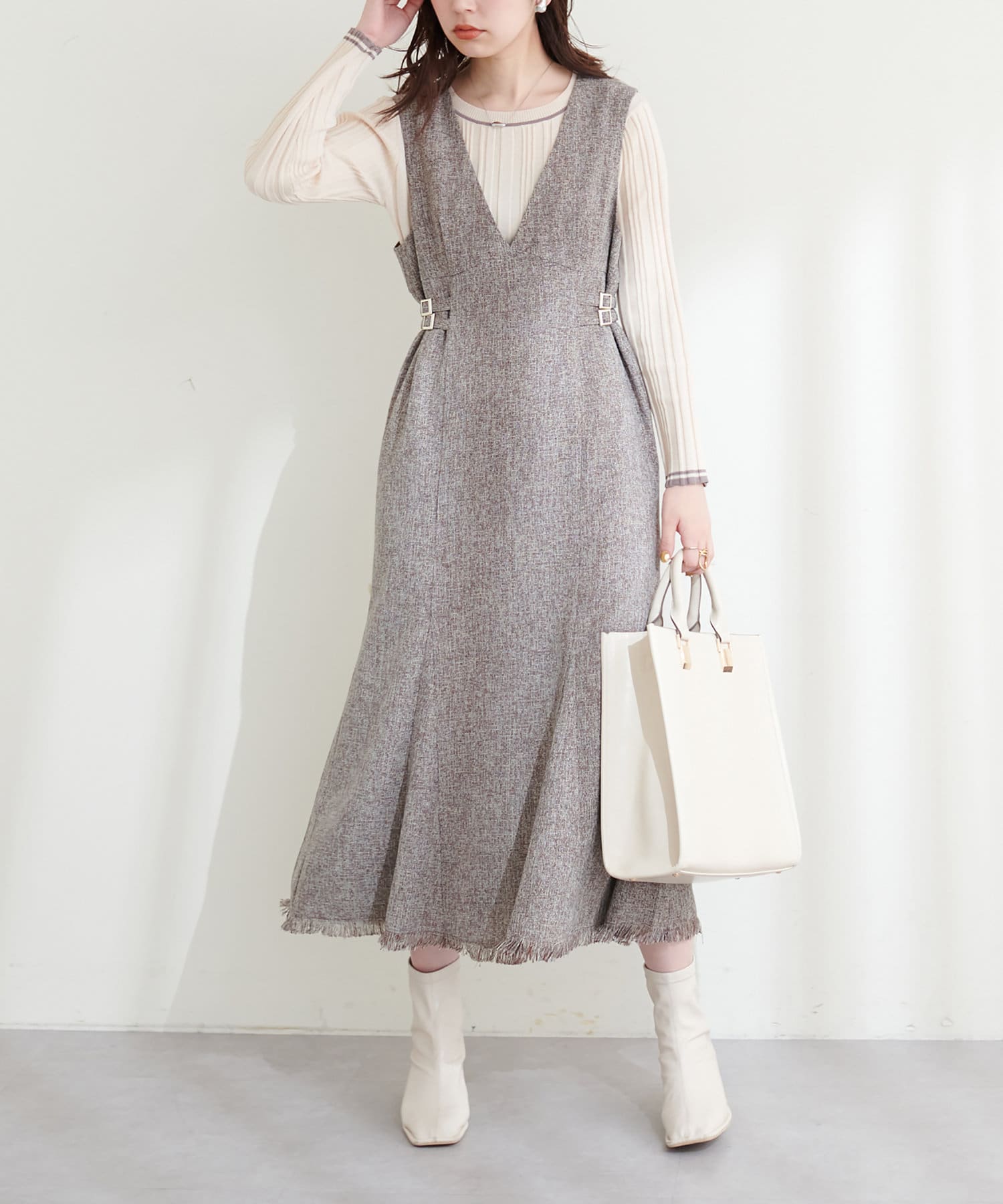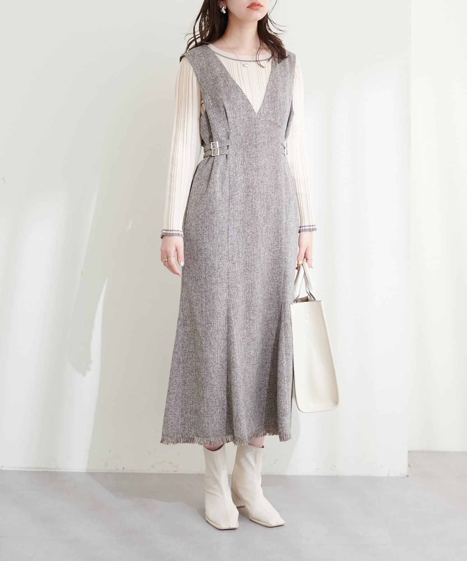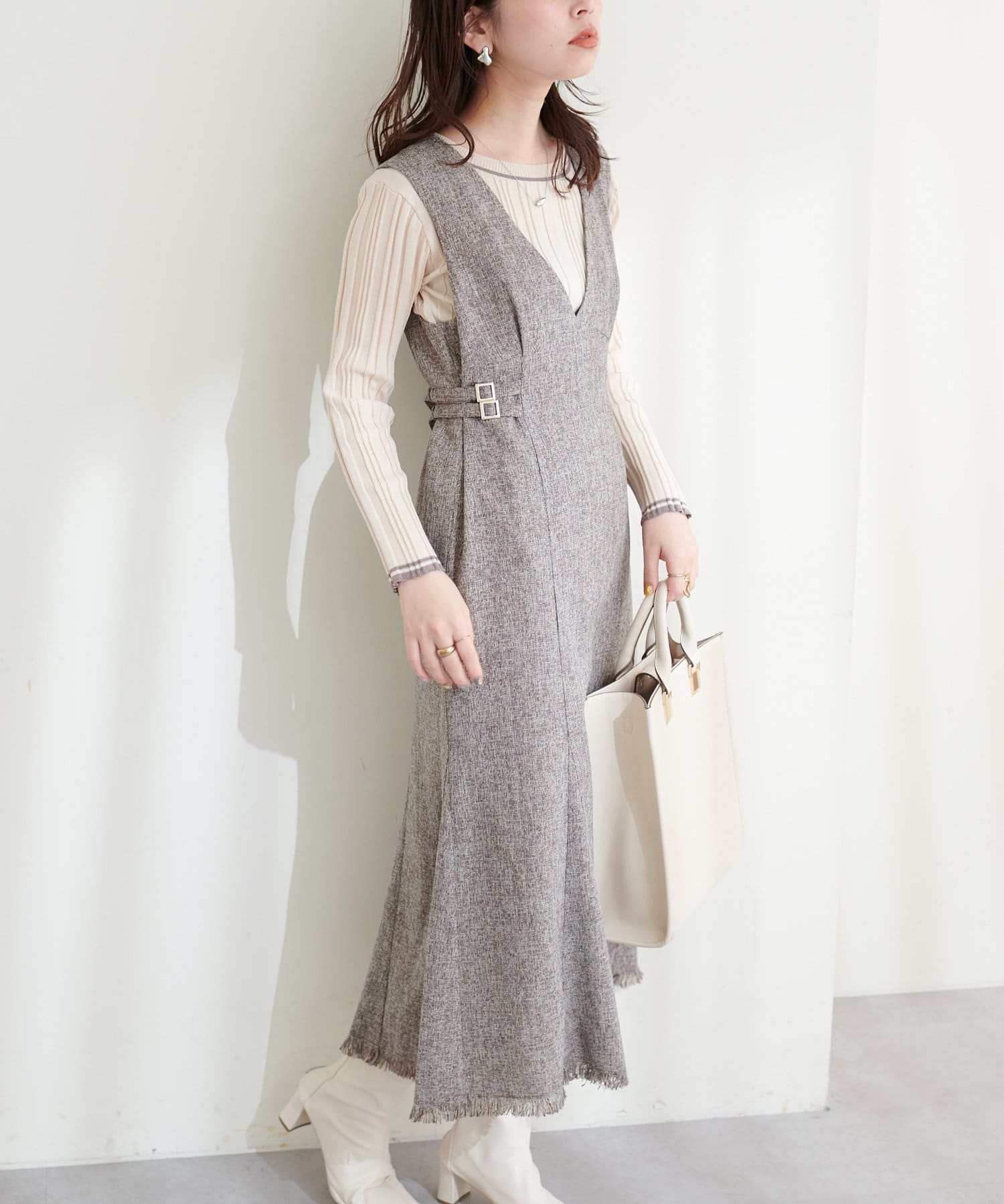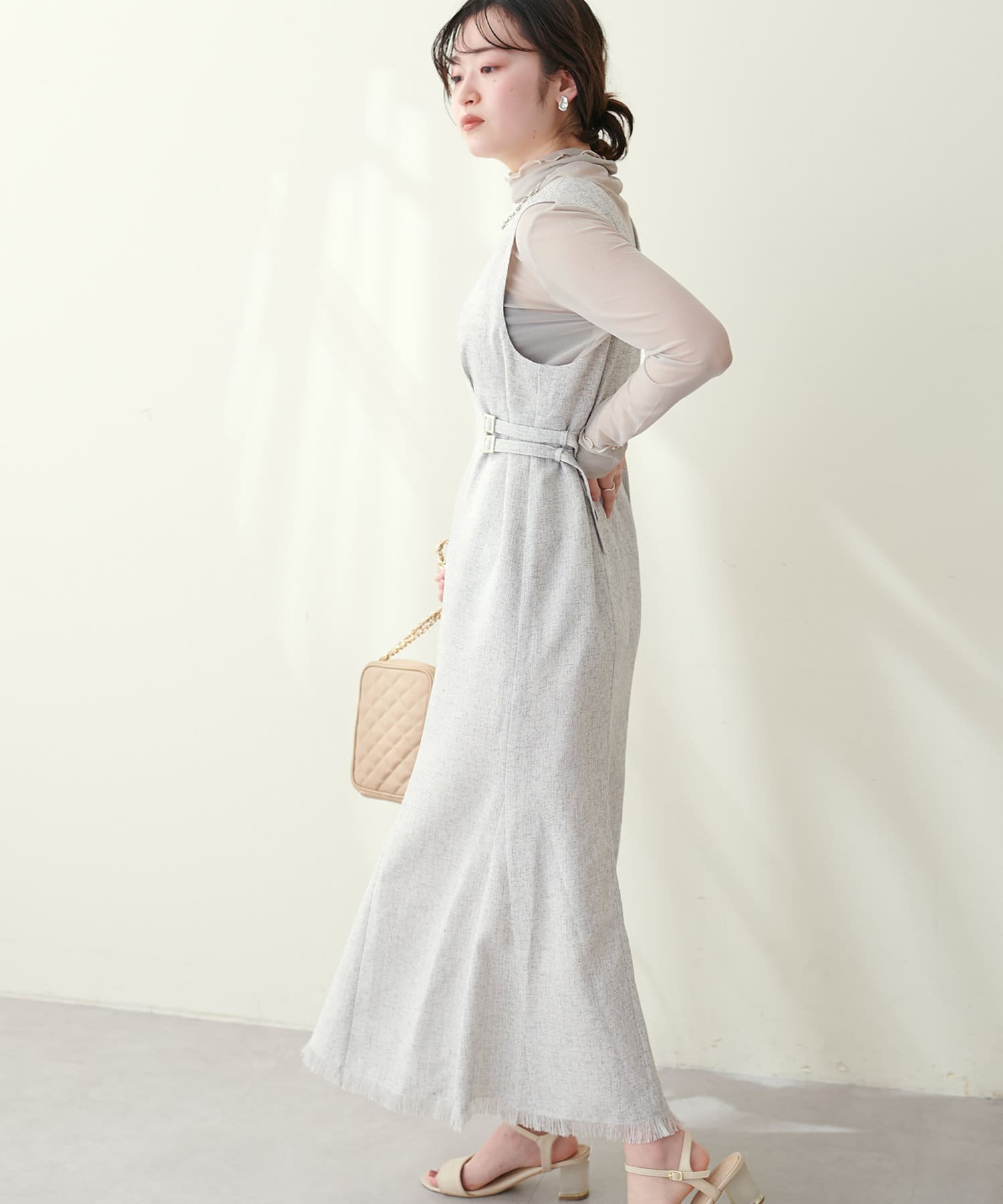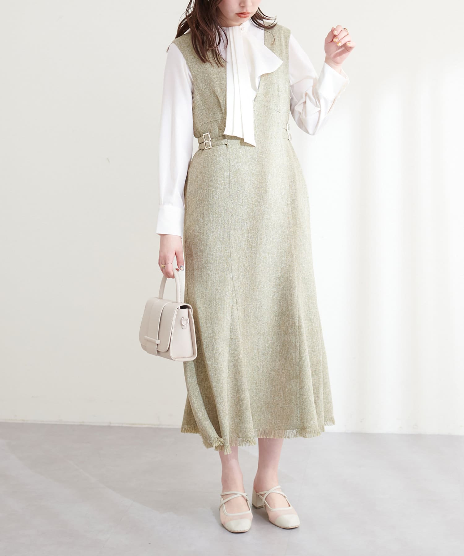 WEB限定カラー有り/サイドベルトデザインツィードジャンスカ