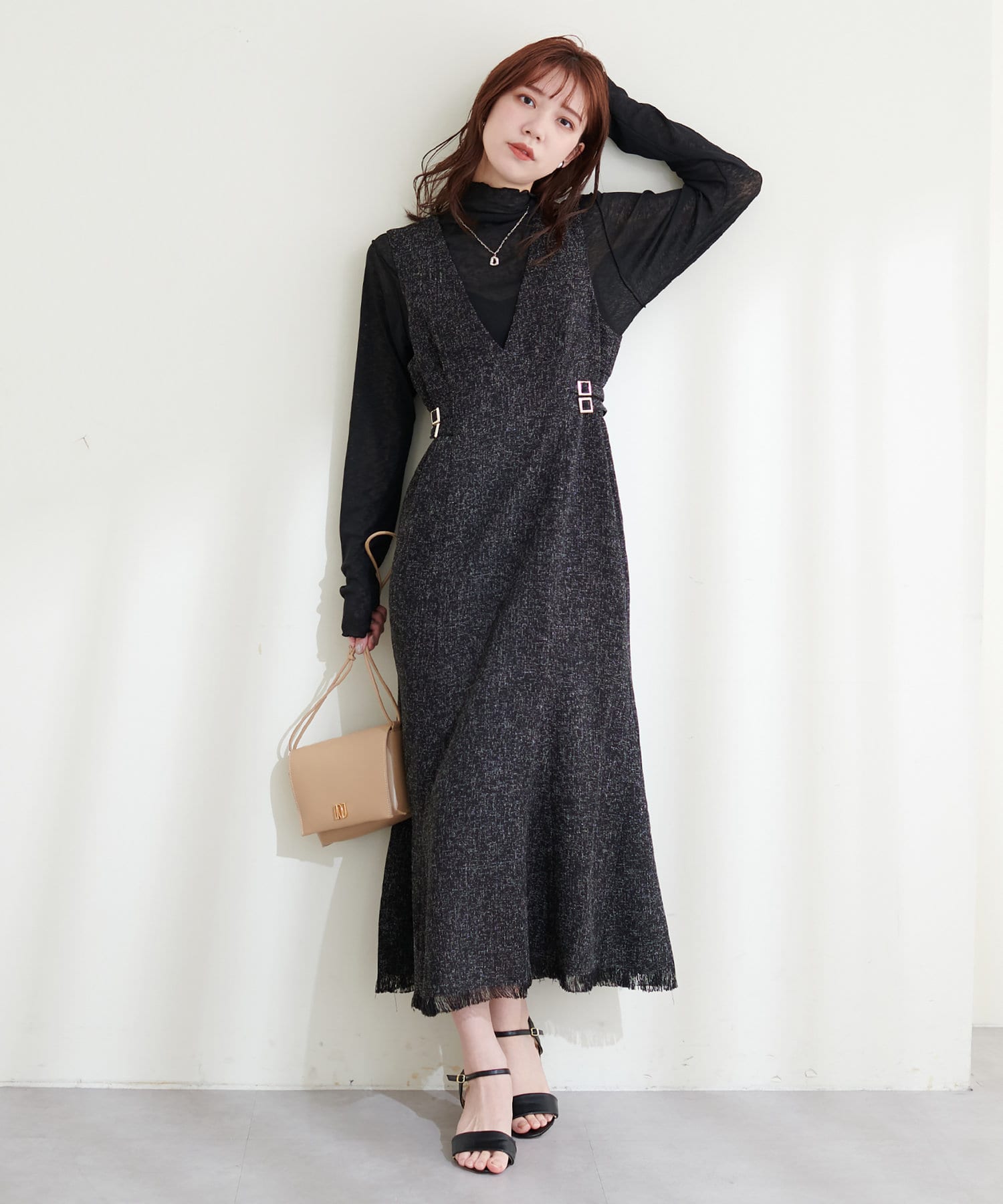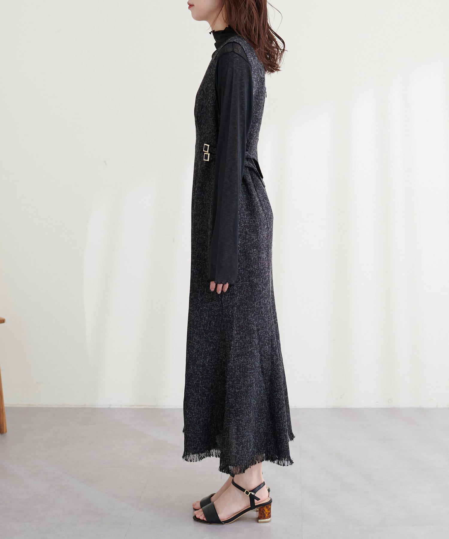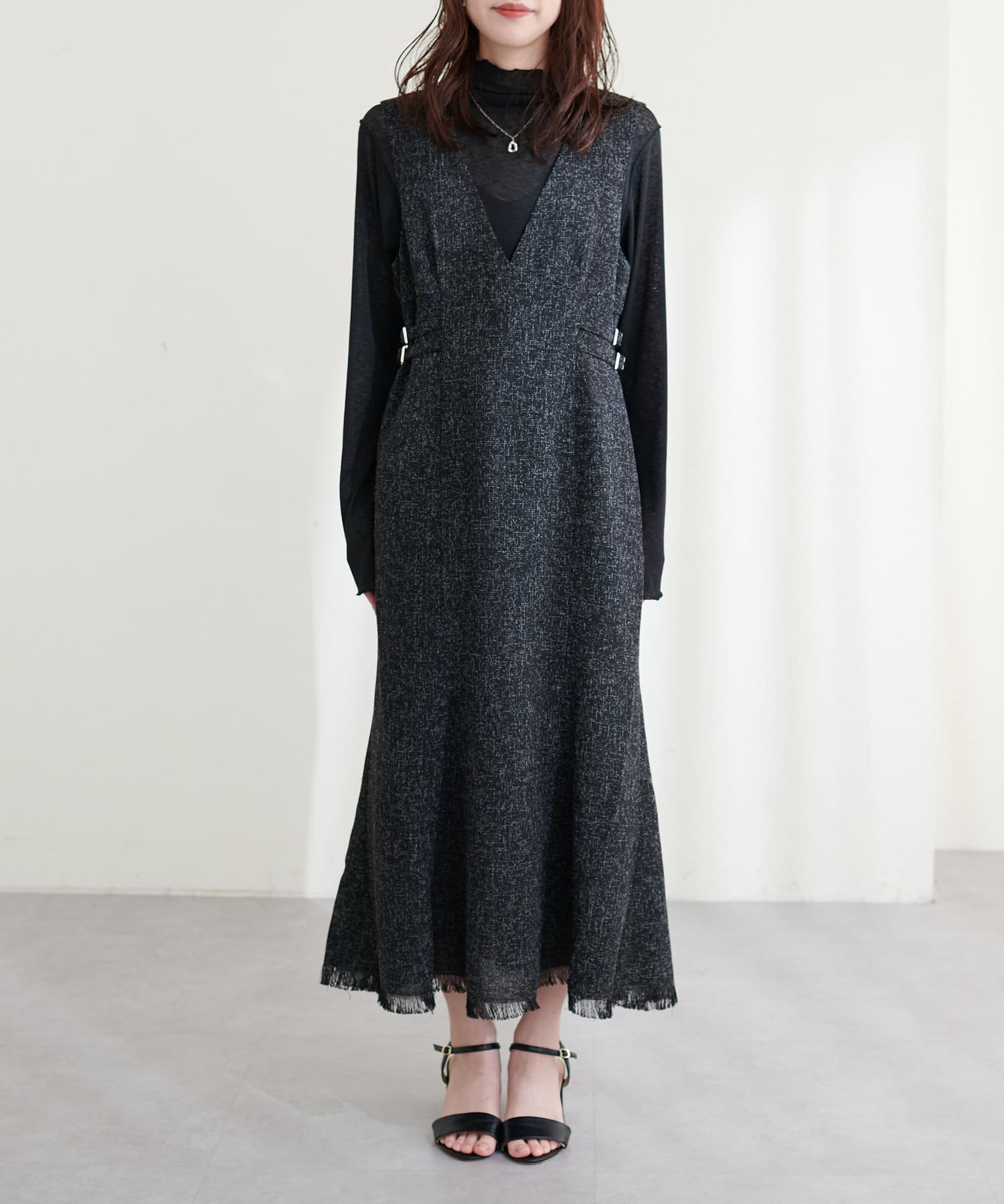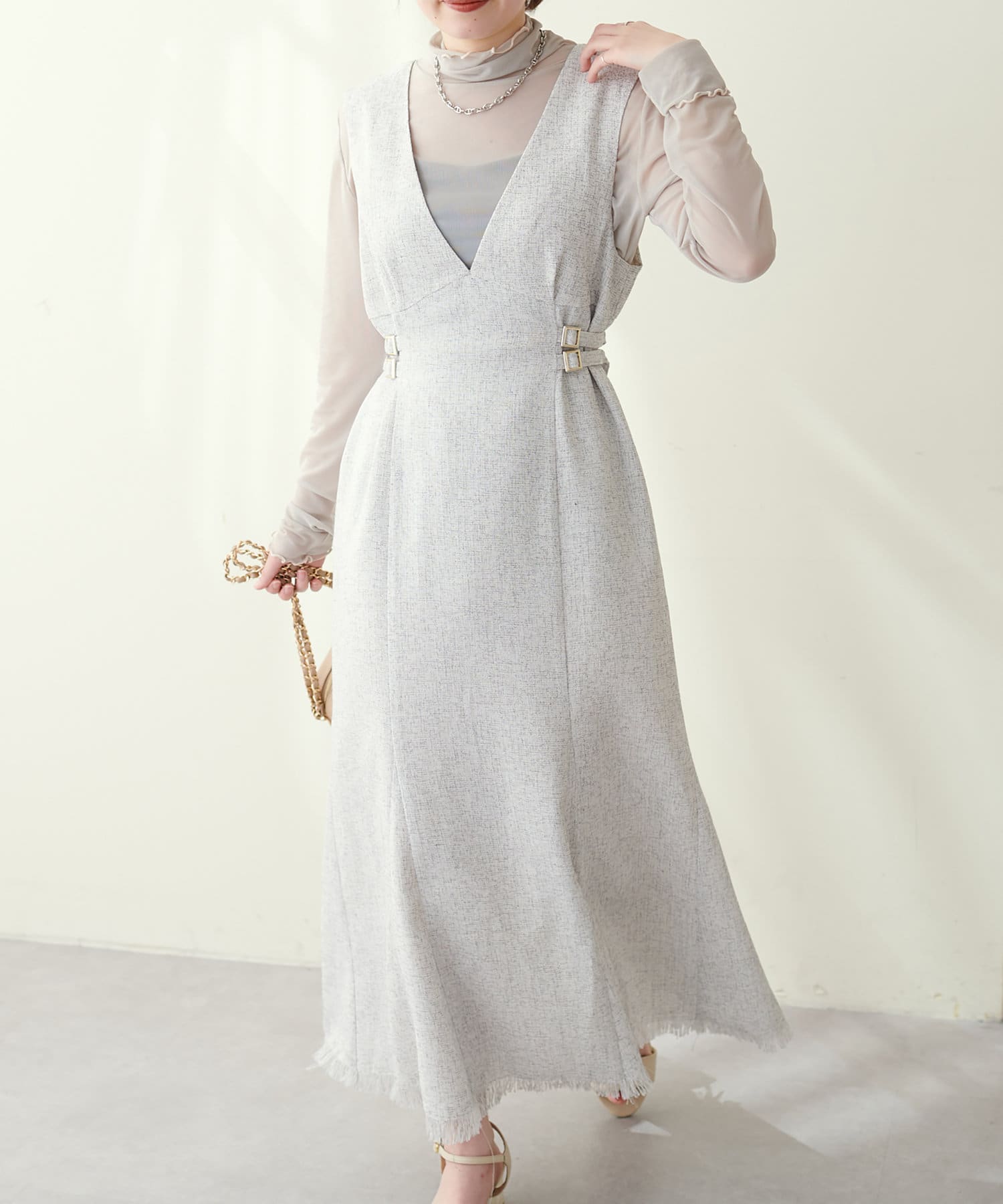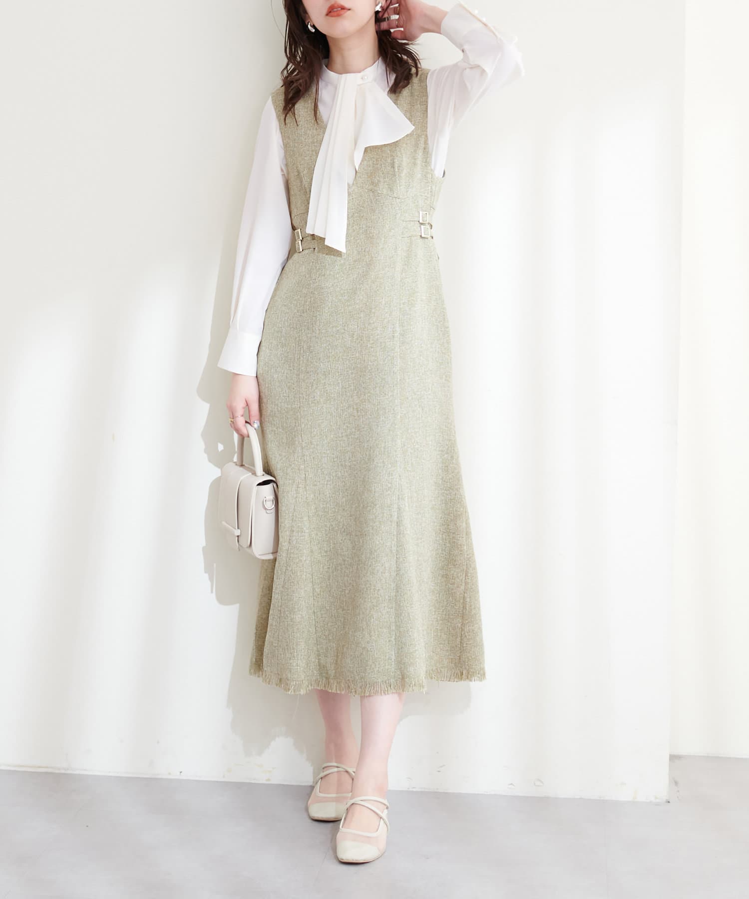 WEB限定カラー有り/サイドベルトデザインツィードジャンスカ