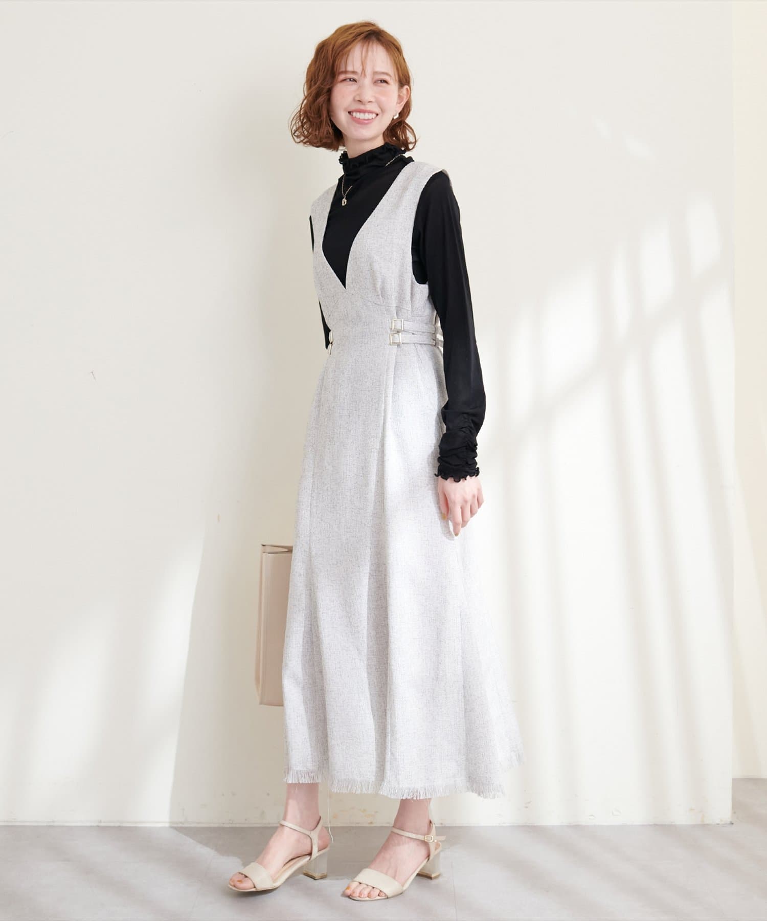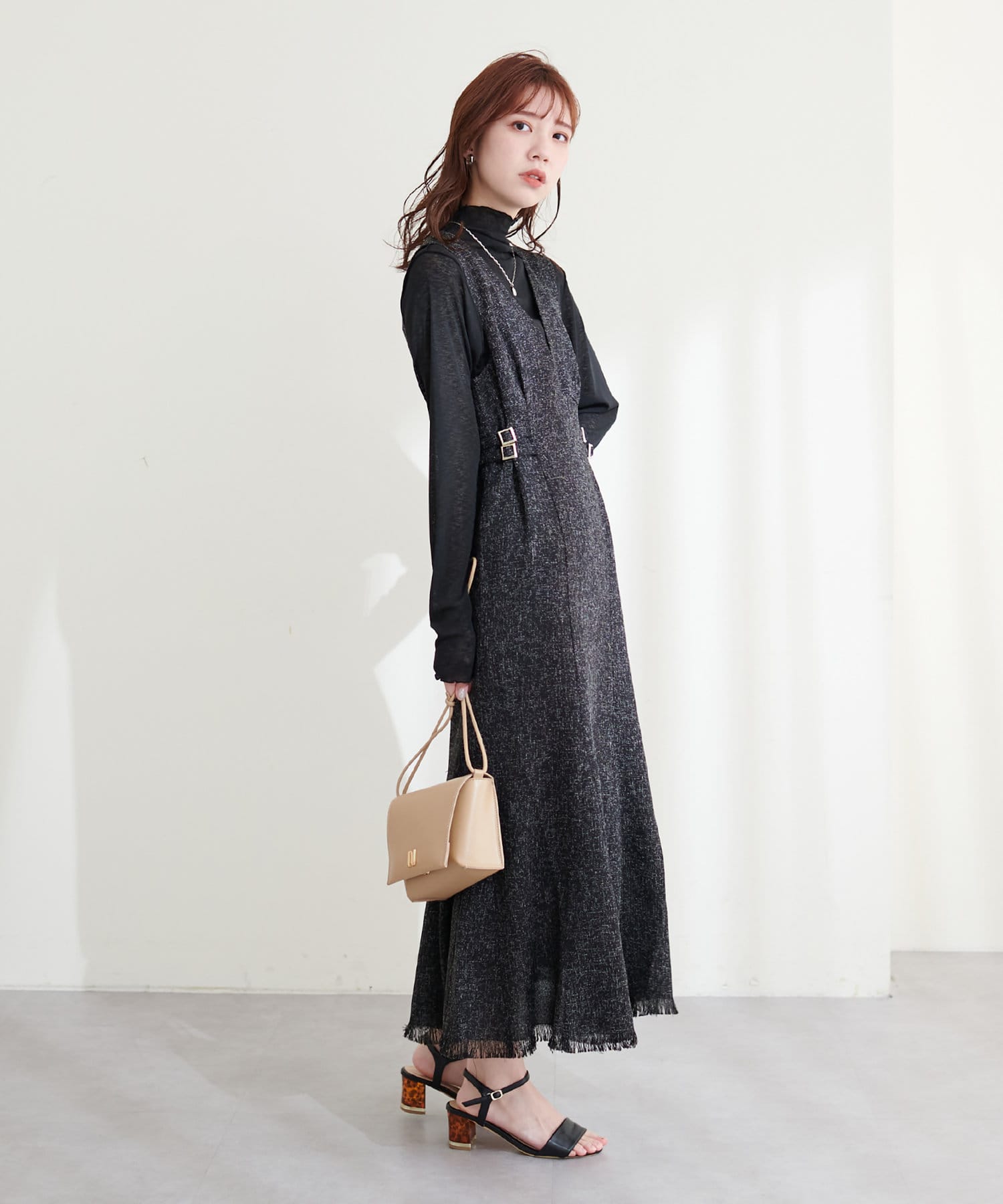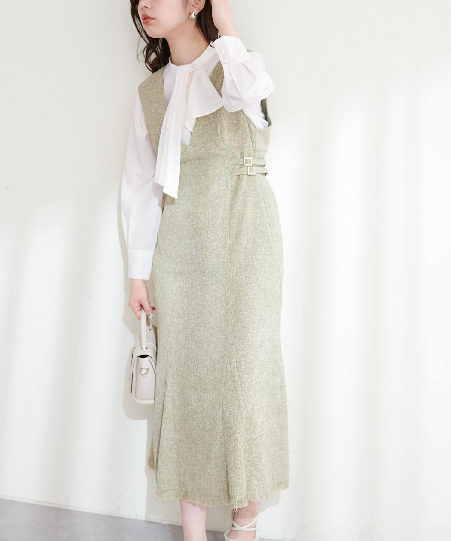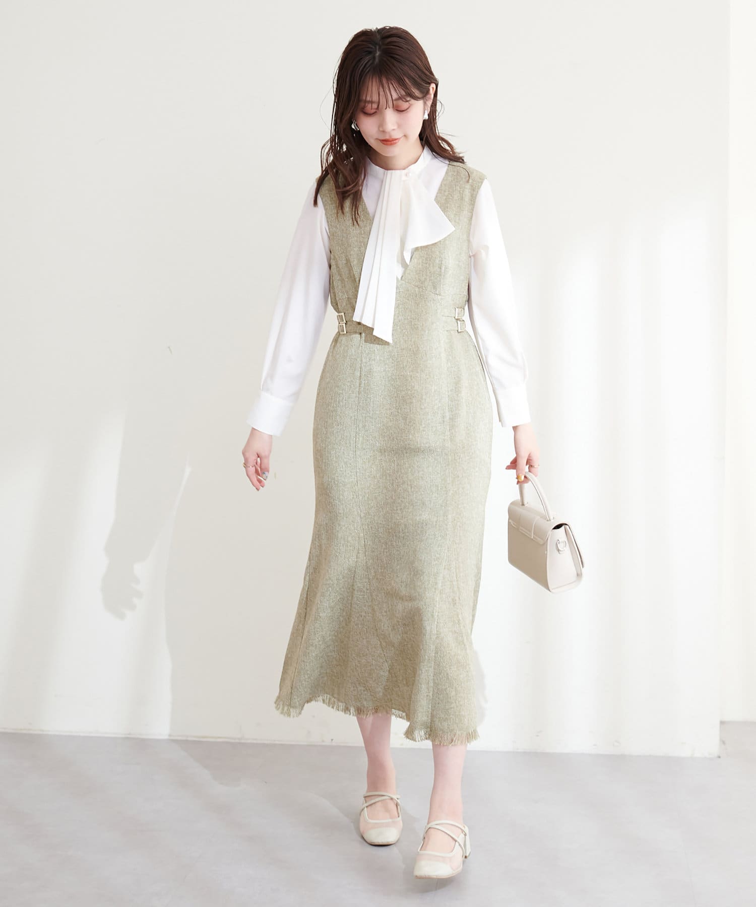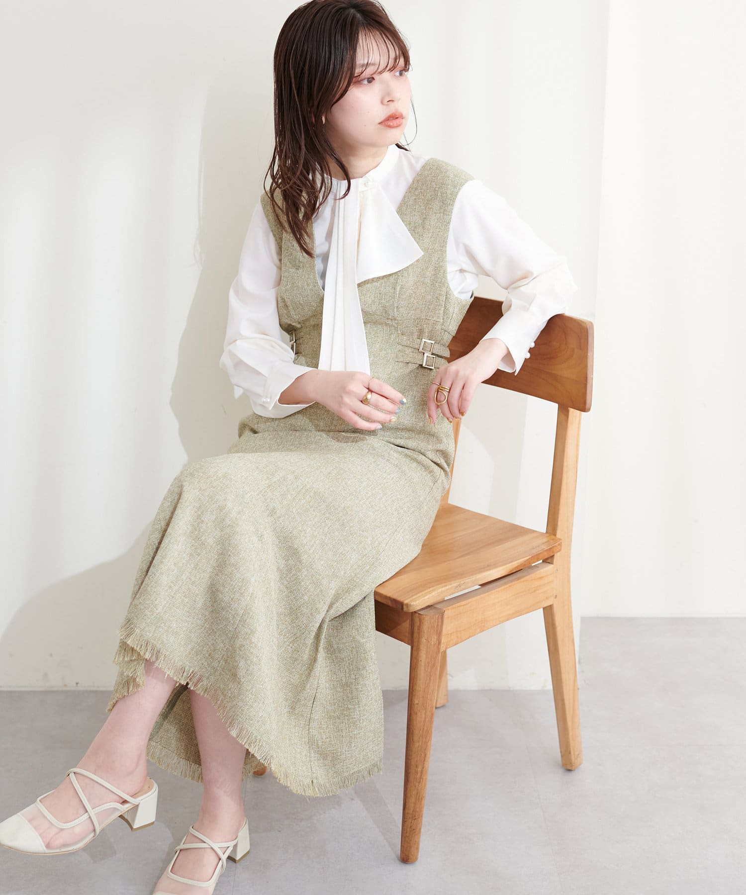 WEB限定カラー有り/サイドベルトデザインツィードジャンスカ