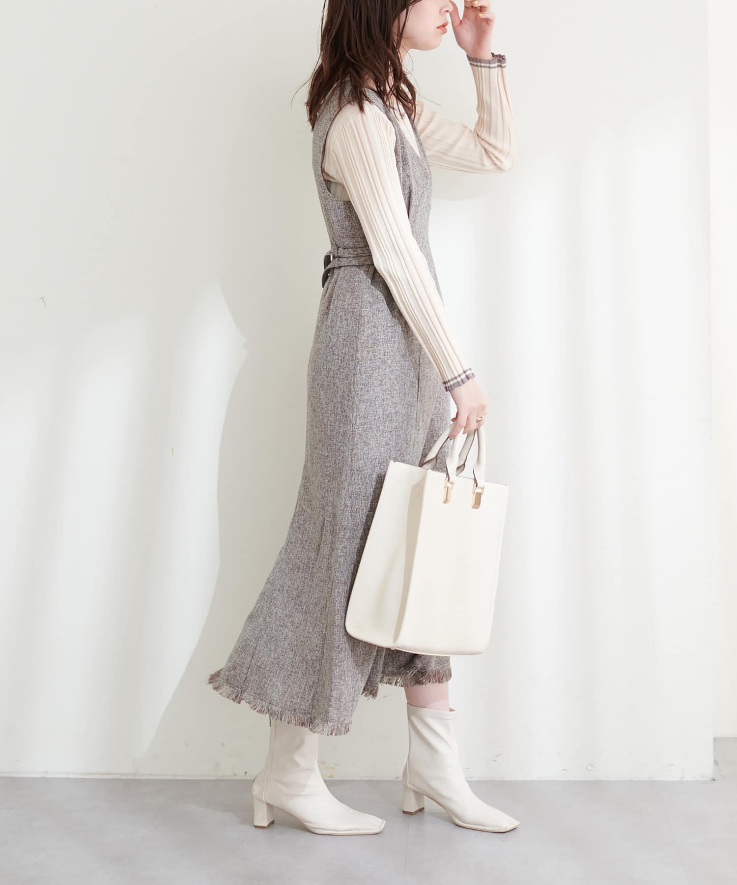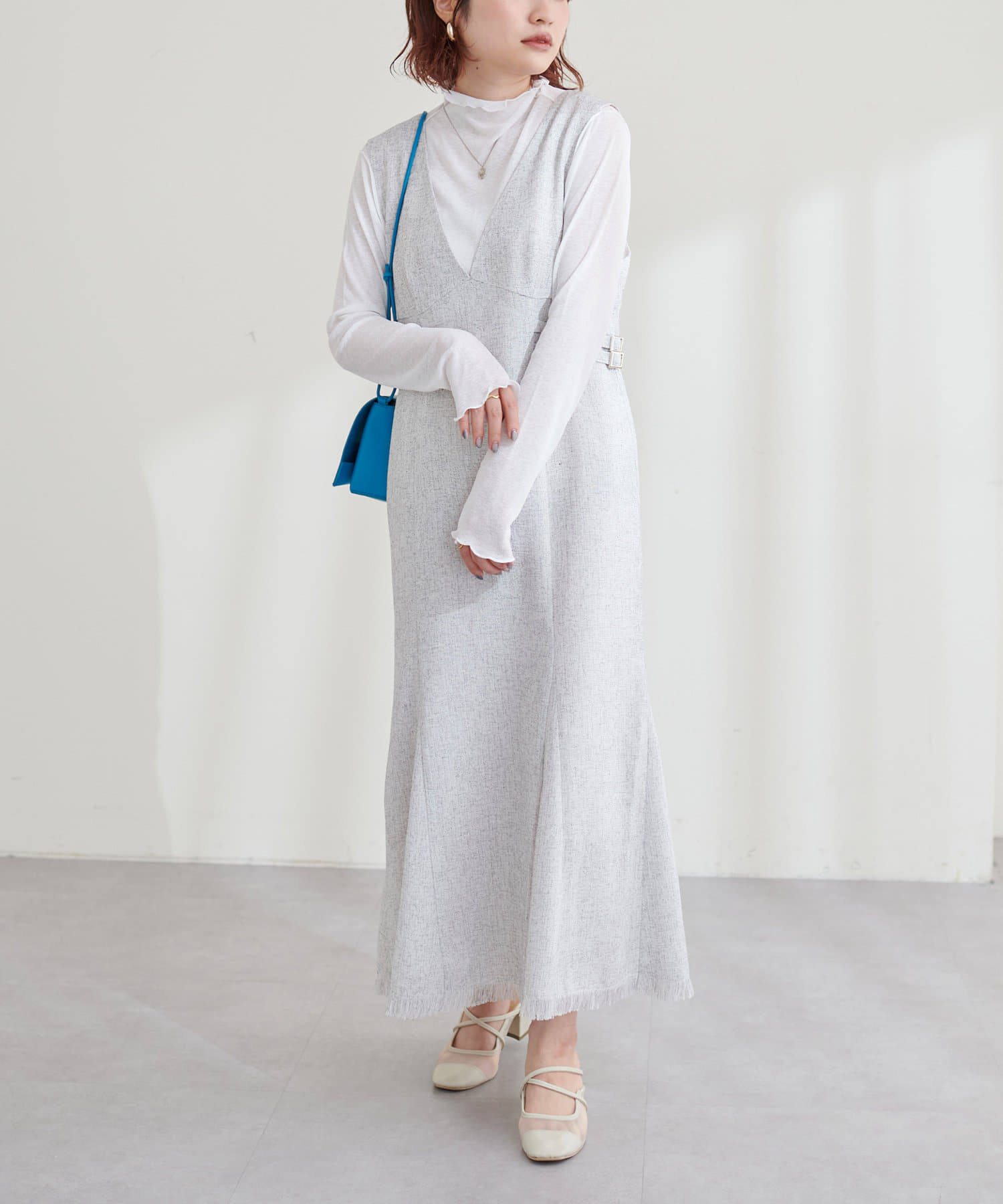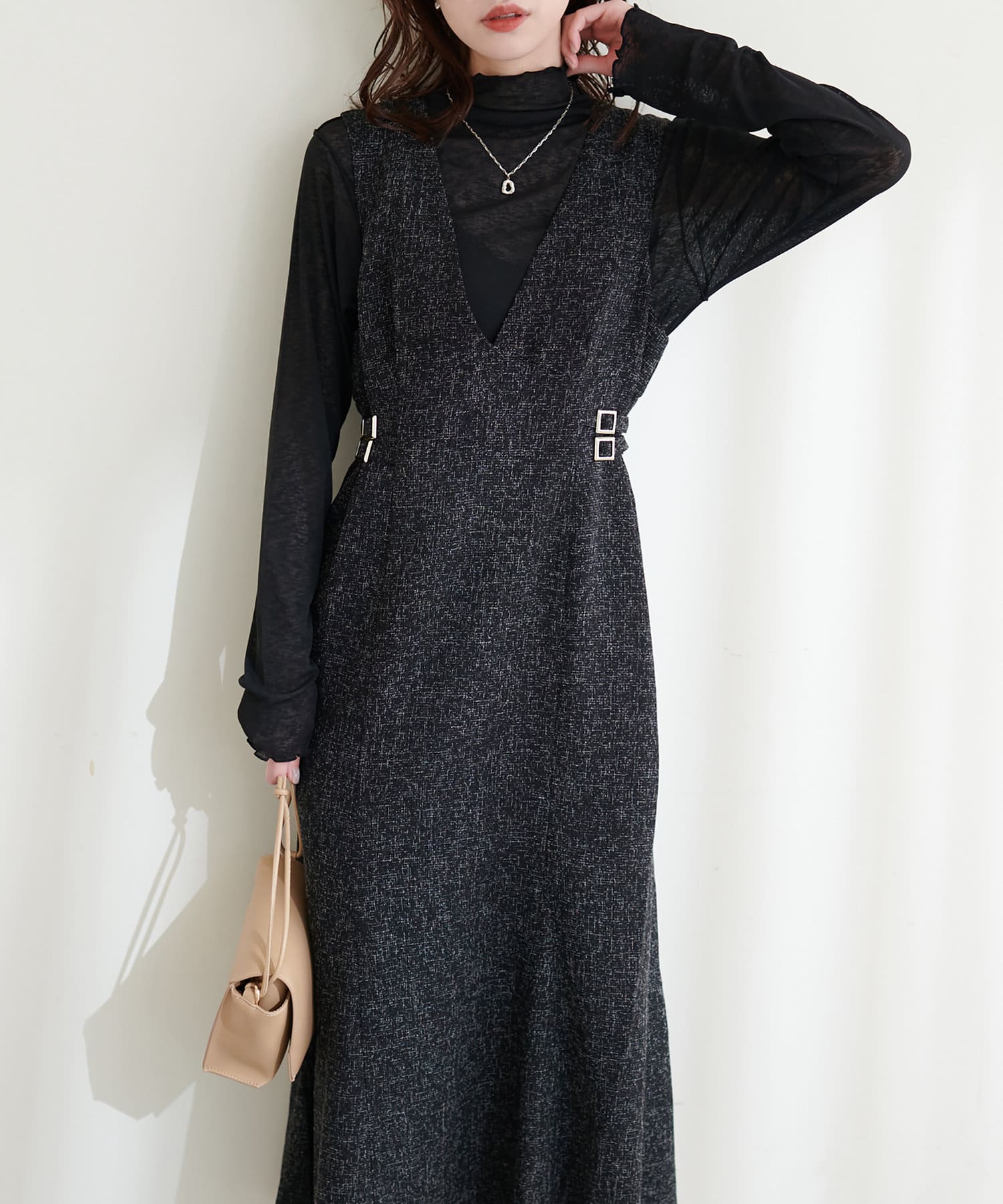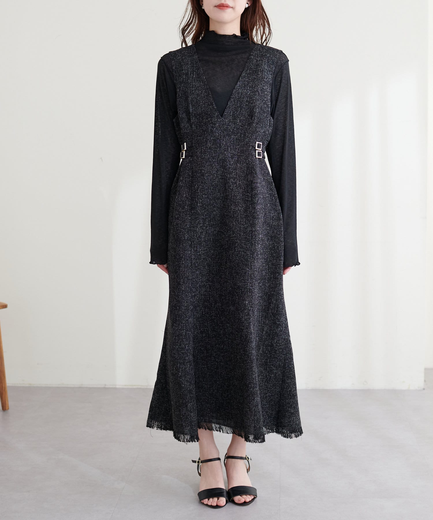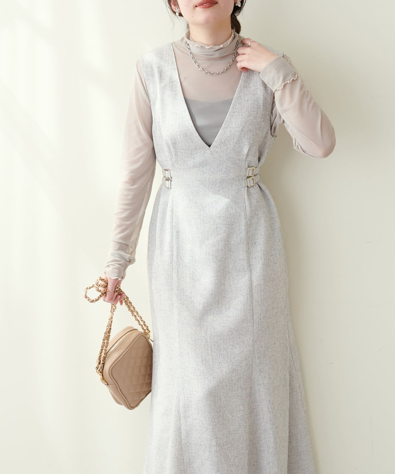 WEB限定カラー有り/サイドベルトデザインツィードジャンスカ