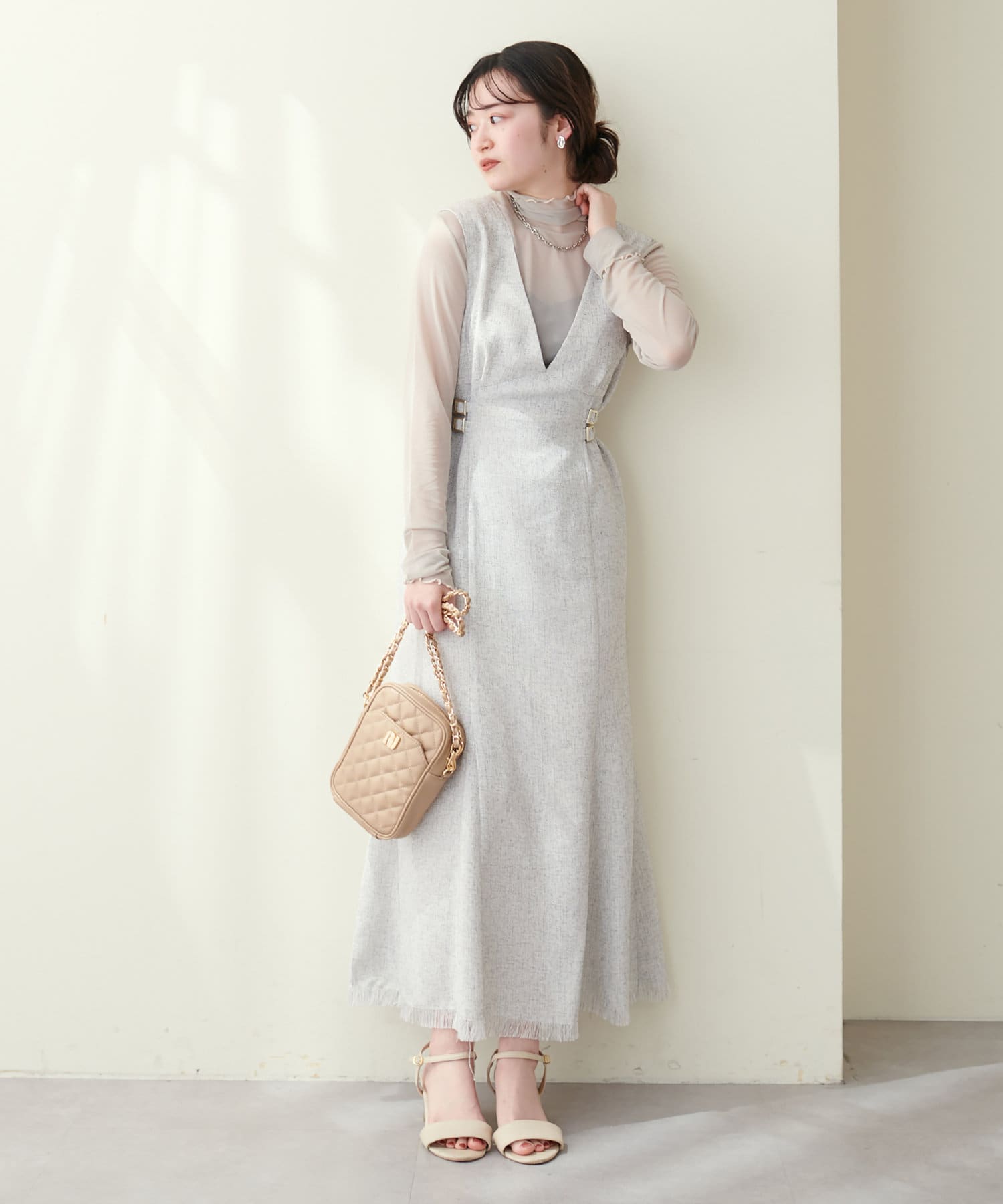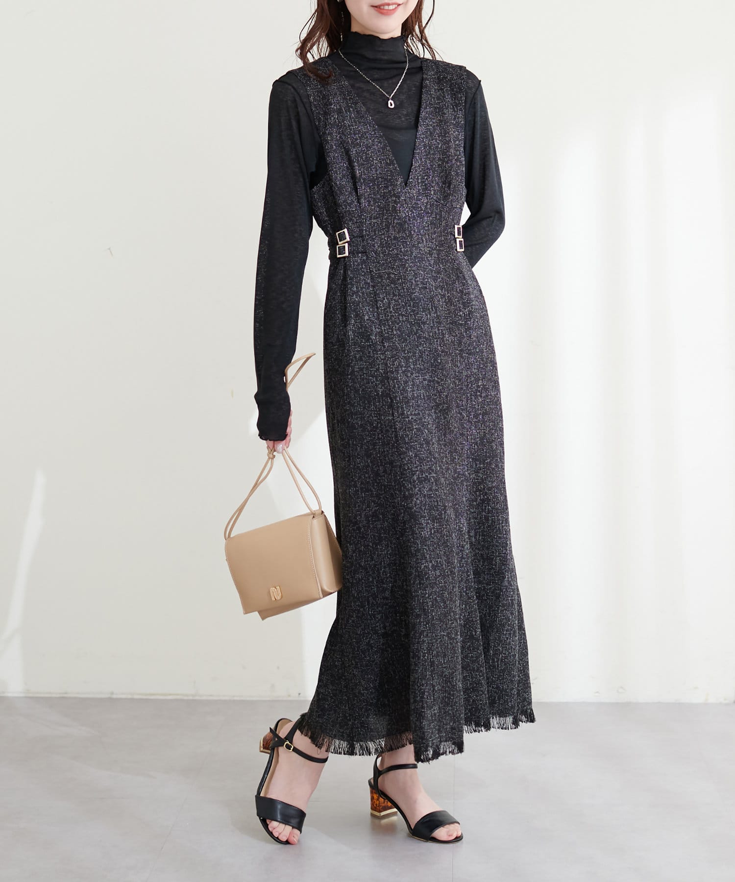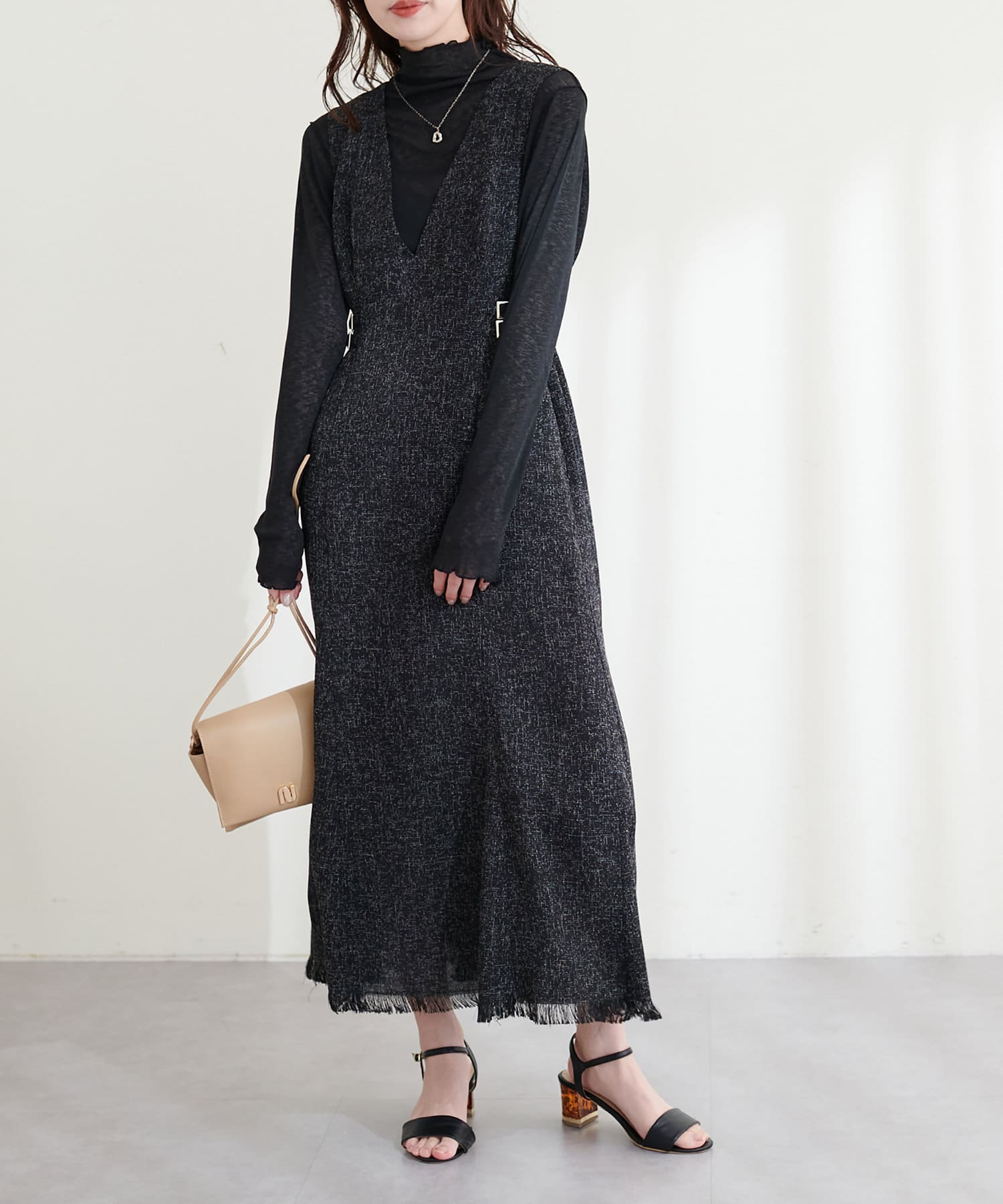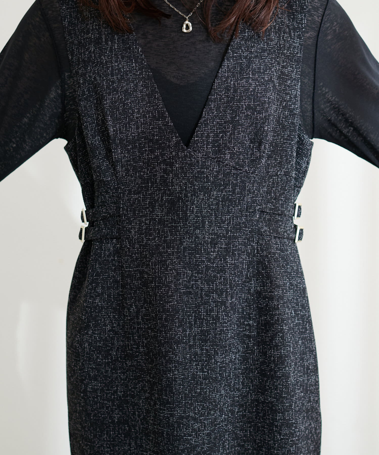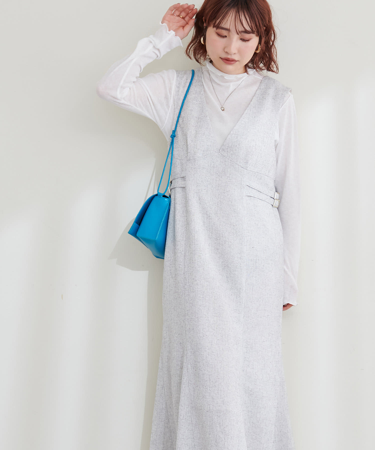 WEB限定カラー有り/サイドベルトデザインツィードジャンスカ