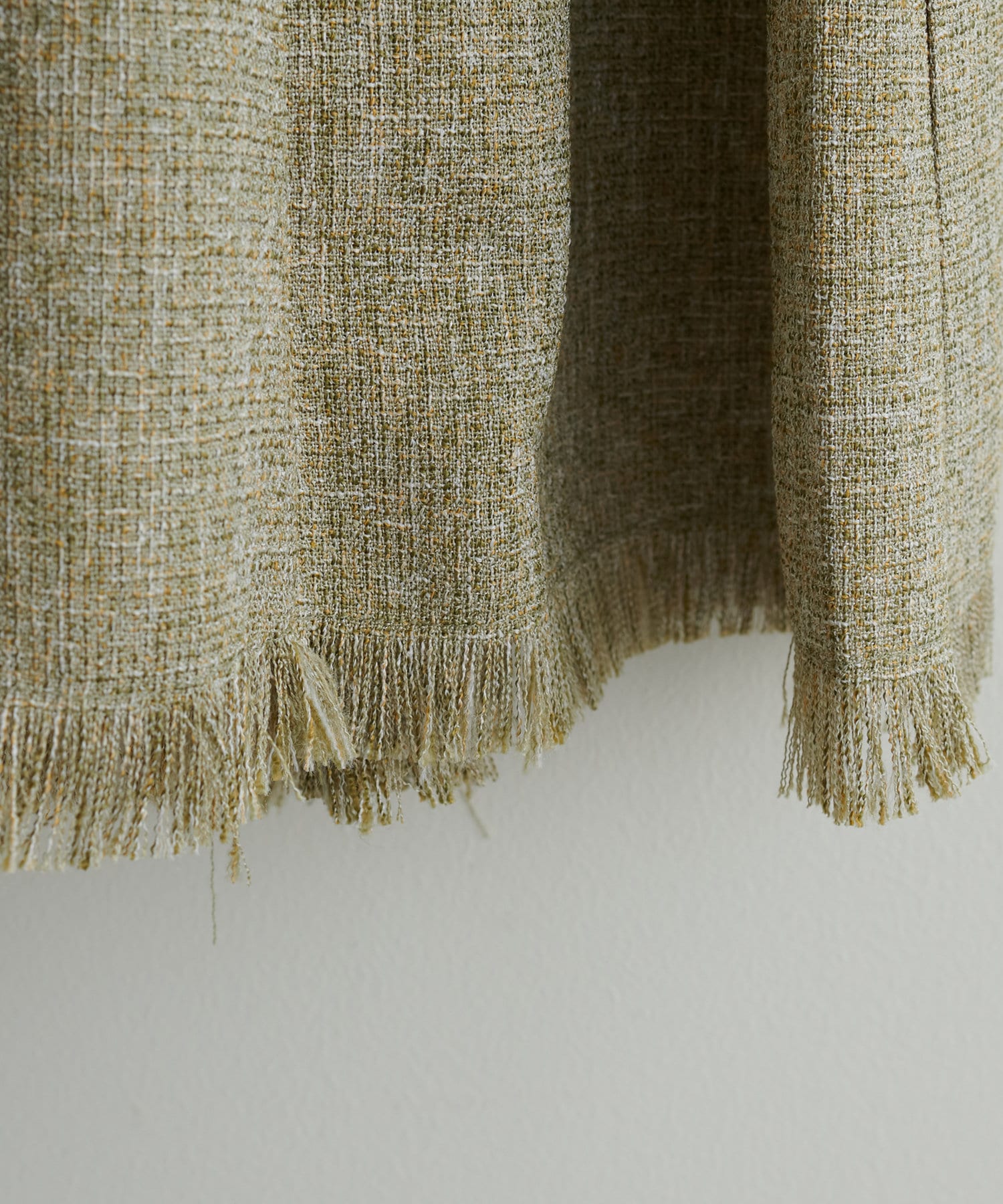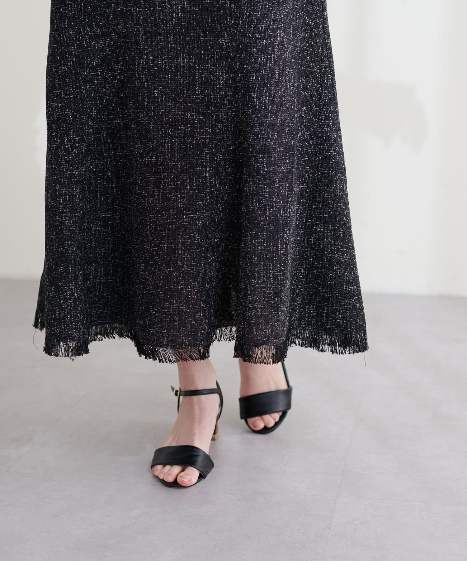 スカート部分は途中から動きの出るフレアになっていて、フリンジの付いた裾が動くたびに綺麗なドレープが生まれます。