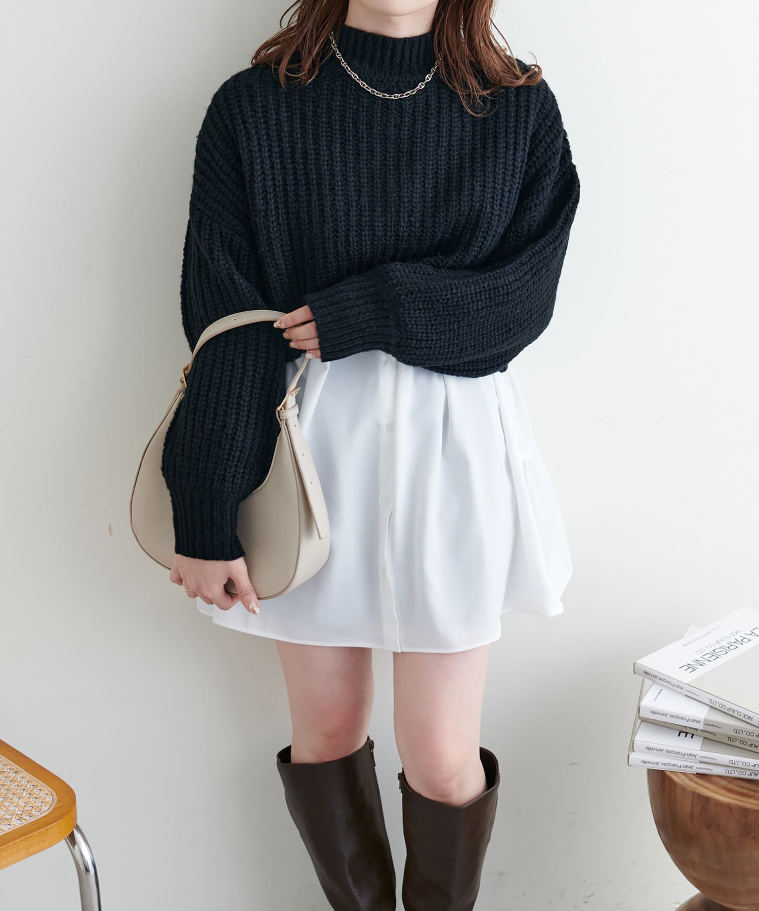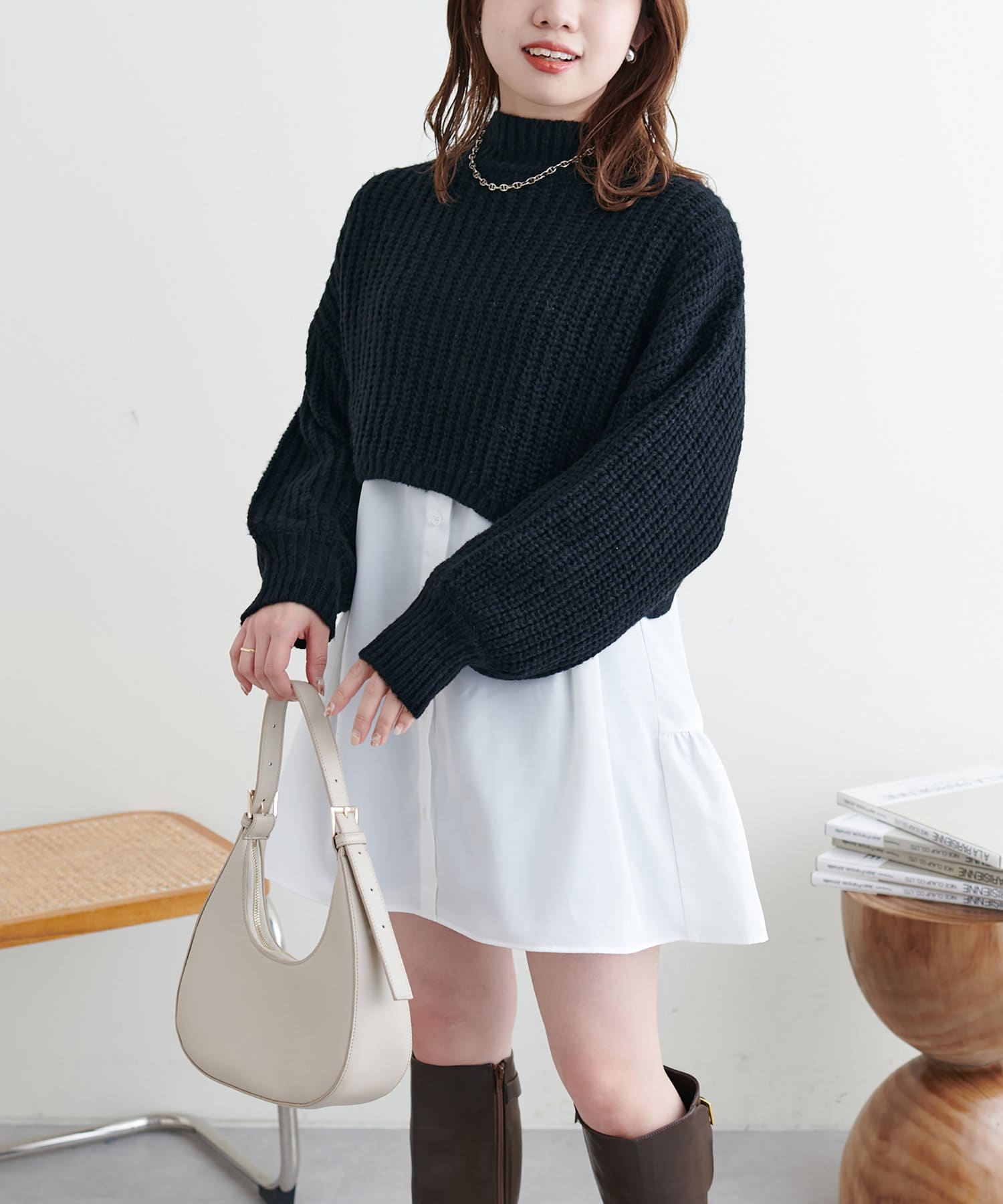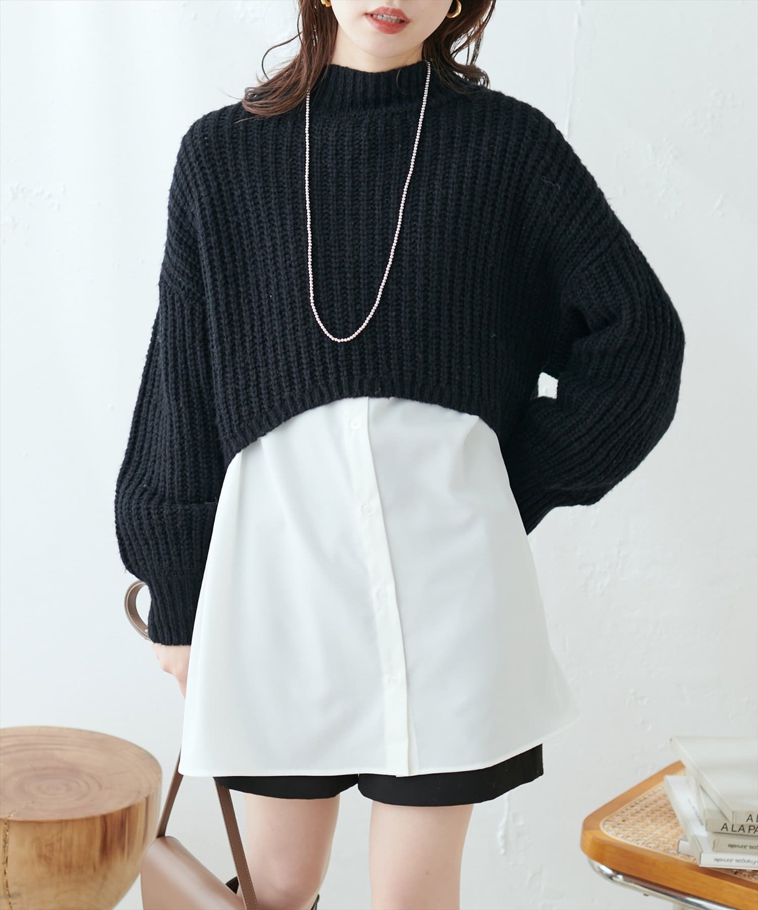 オーバーめなショート丈のニットはスタイルアップ効果抜群◎