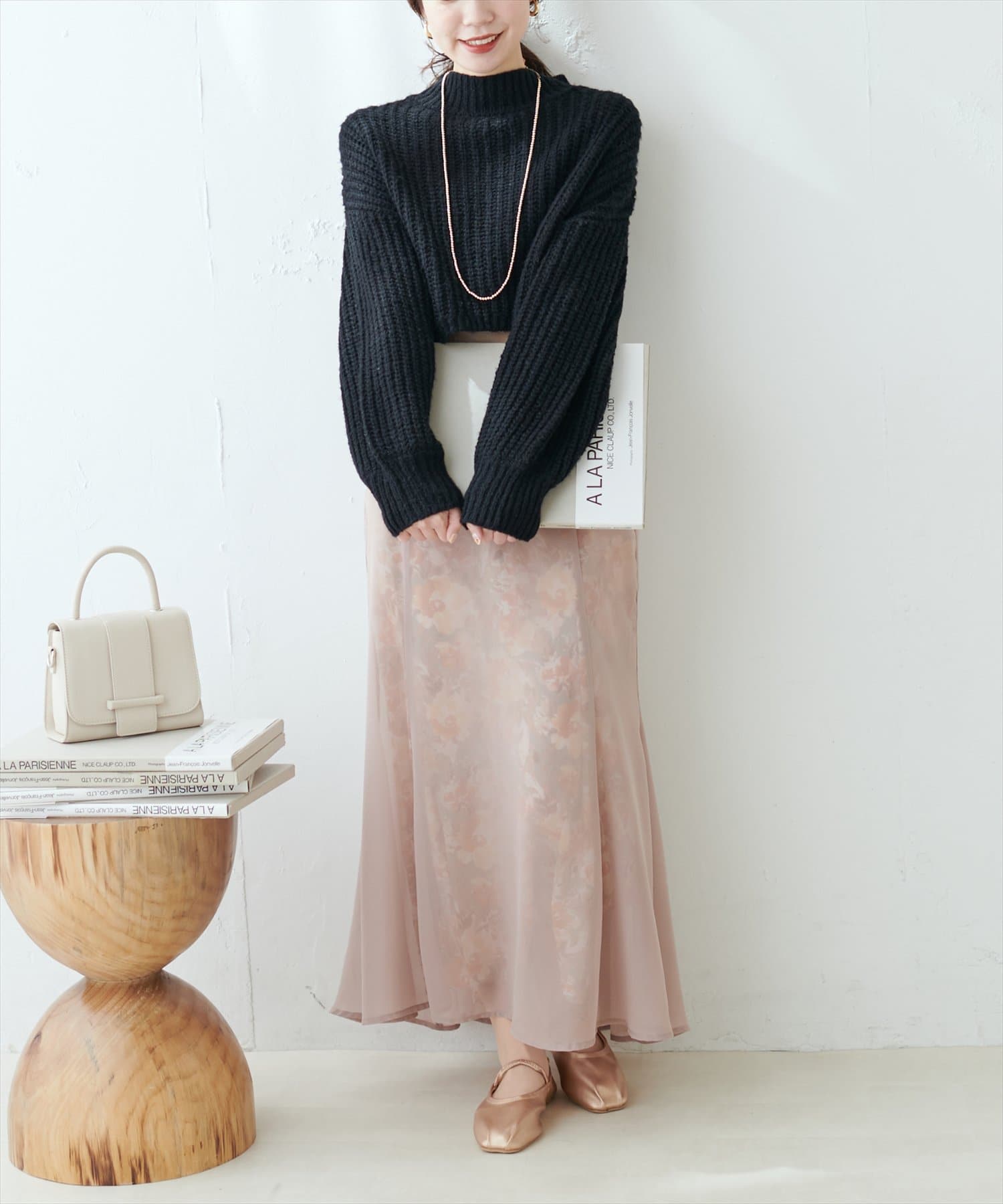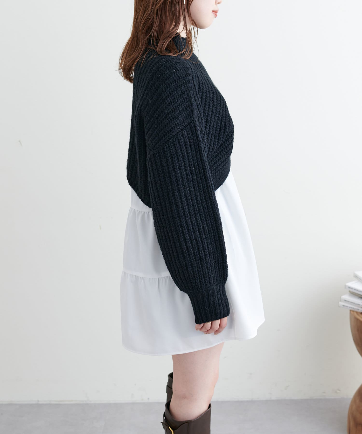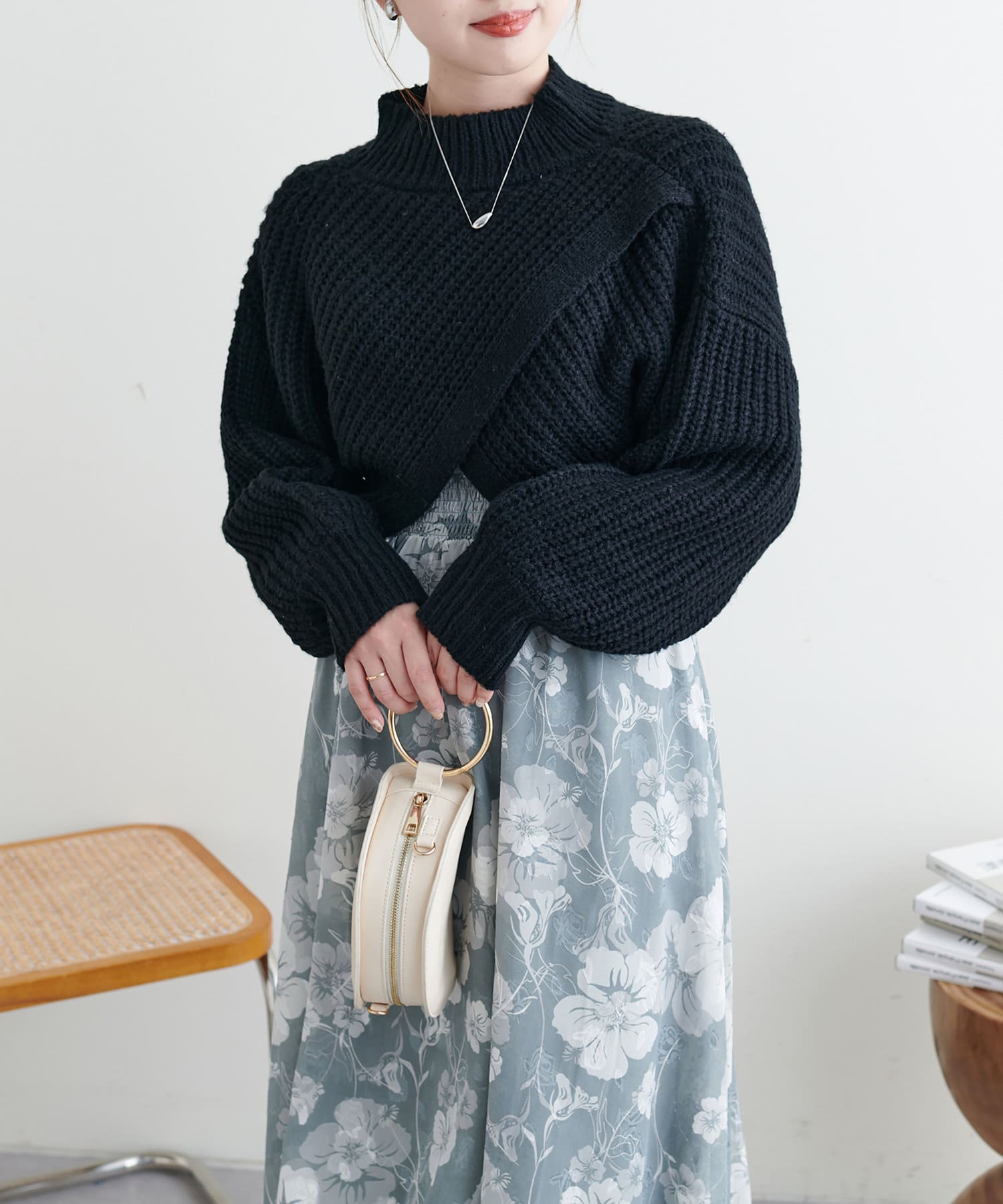 オーバーめなショート丈のニットはスタイルアップ効果抜群◎