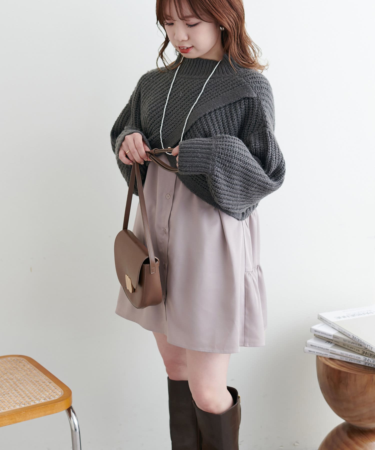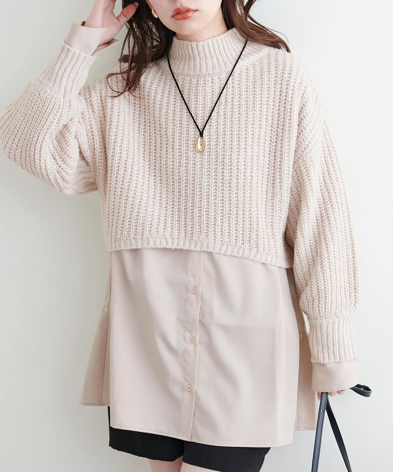 ニットとシャツチュニックがセットになった着回し抜群アイテム!