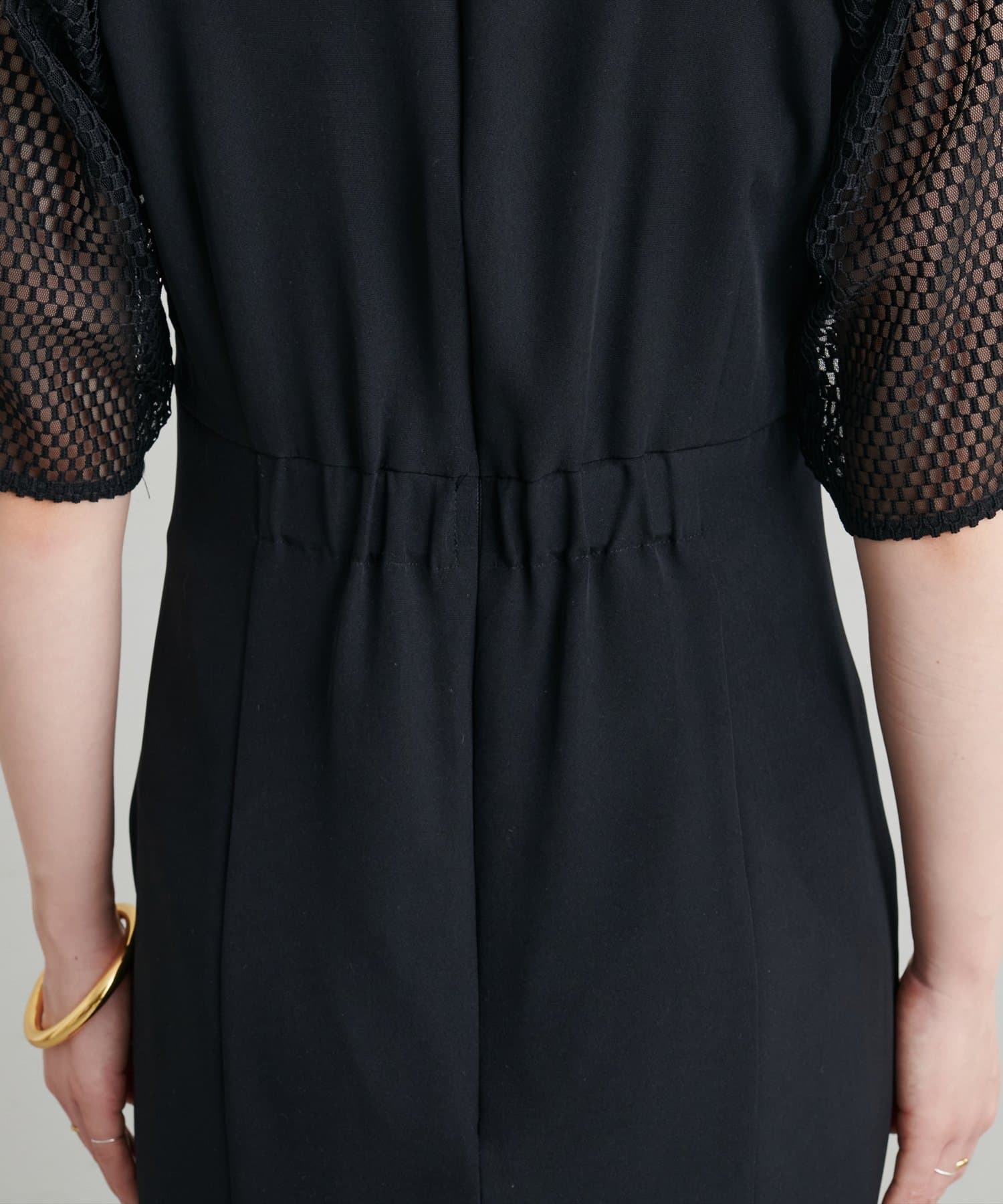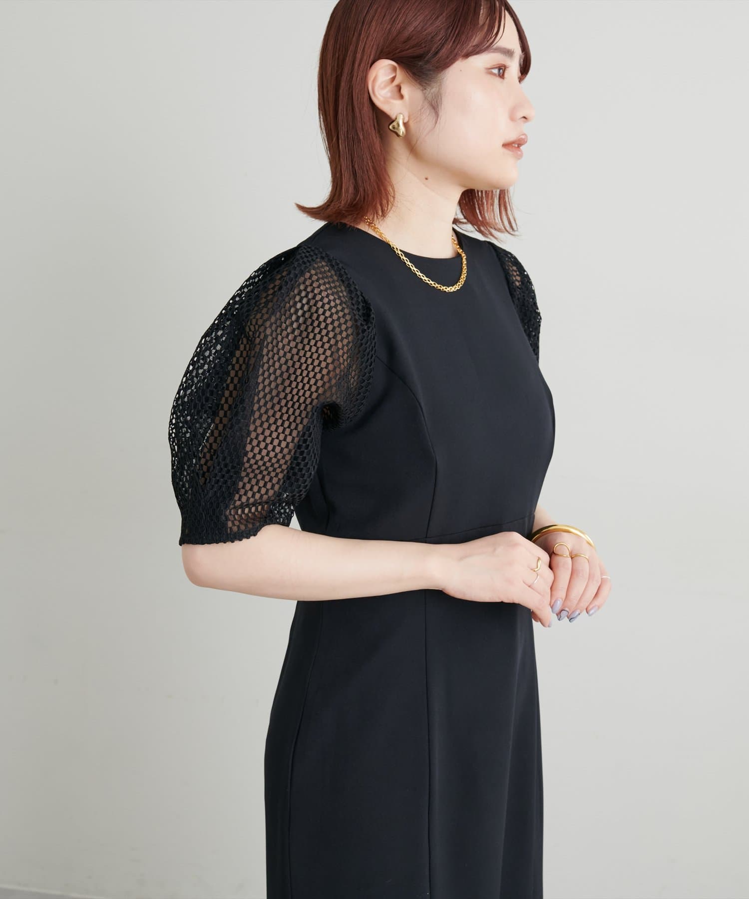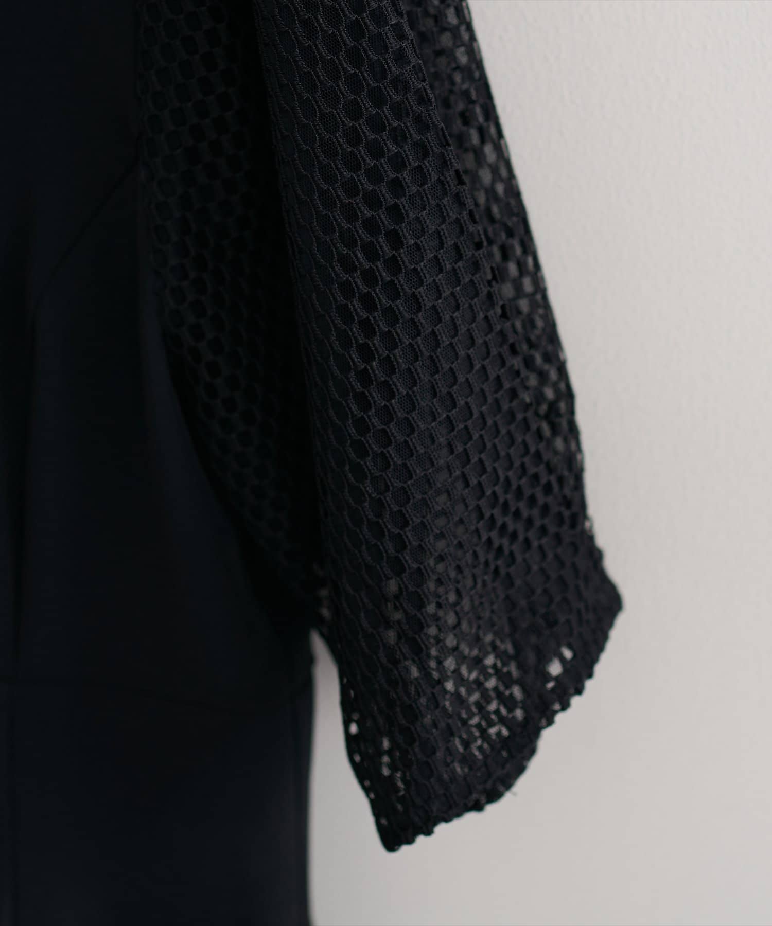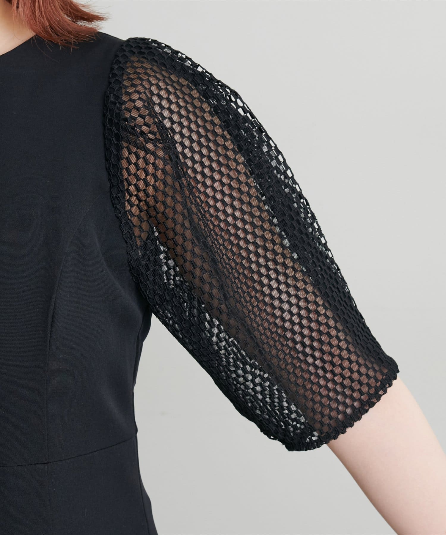オケージョン対応可能 / 異素材メッシュスリーブドレス