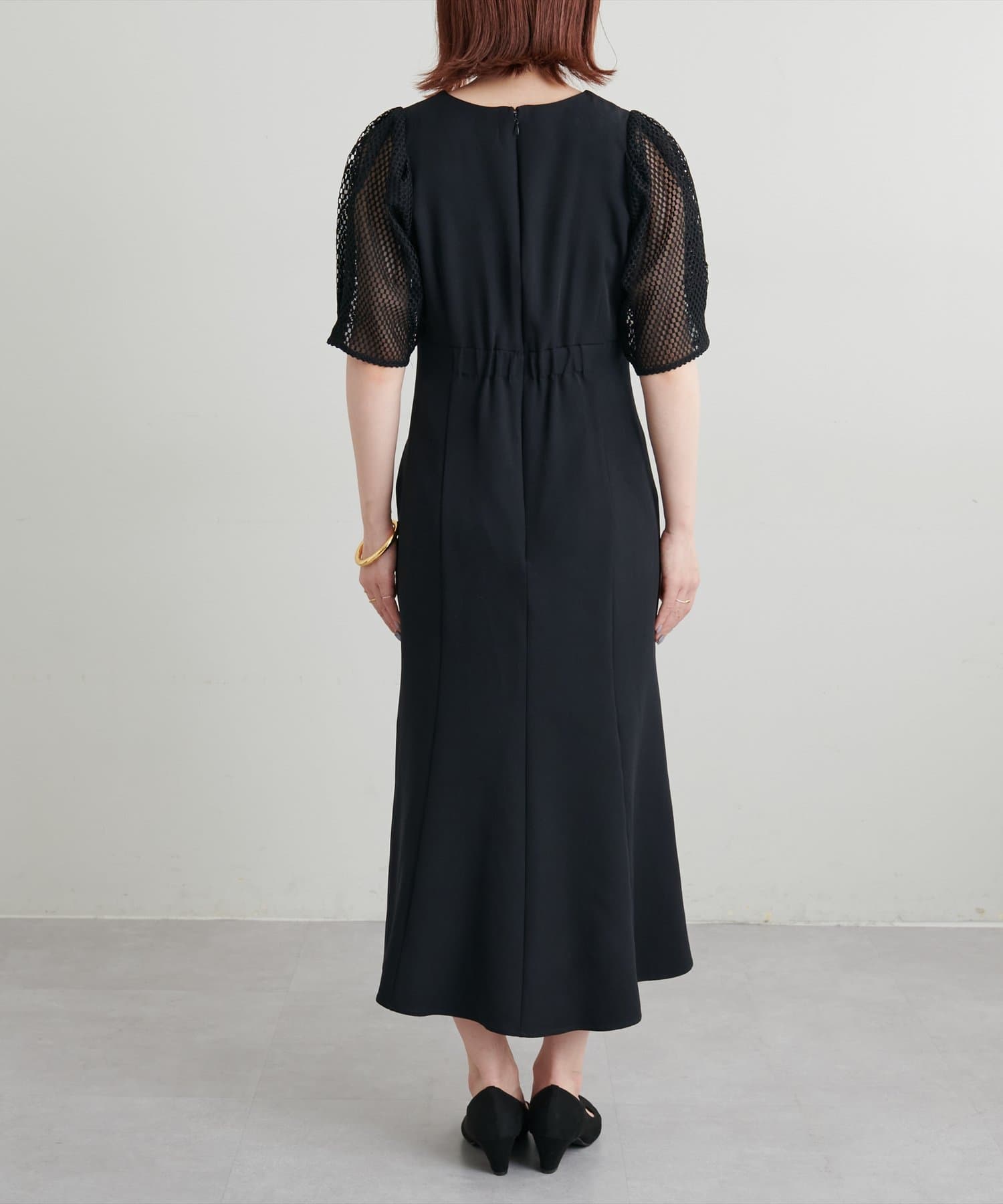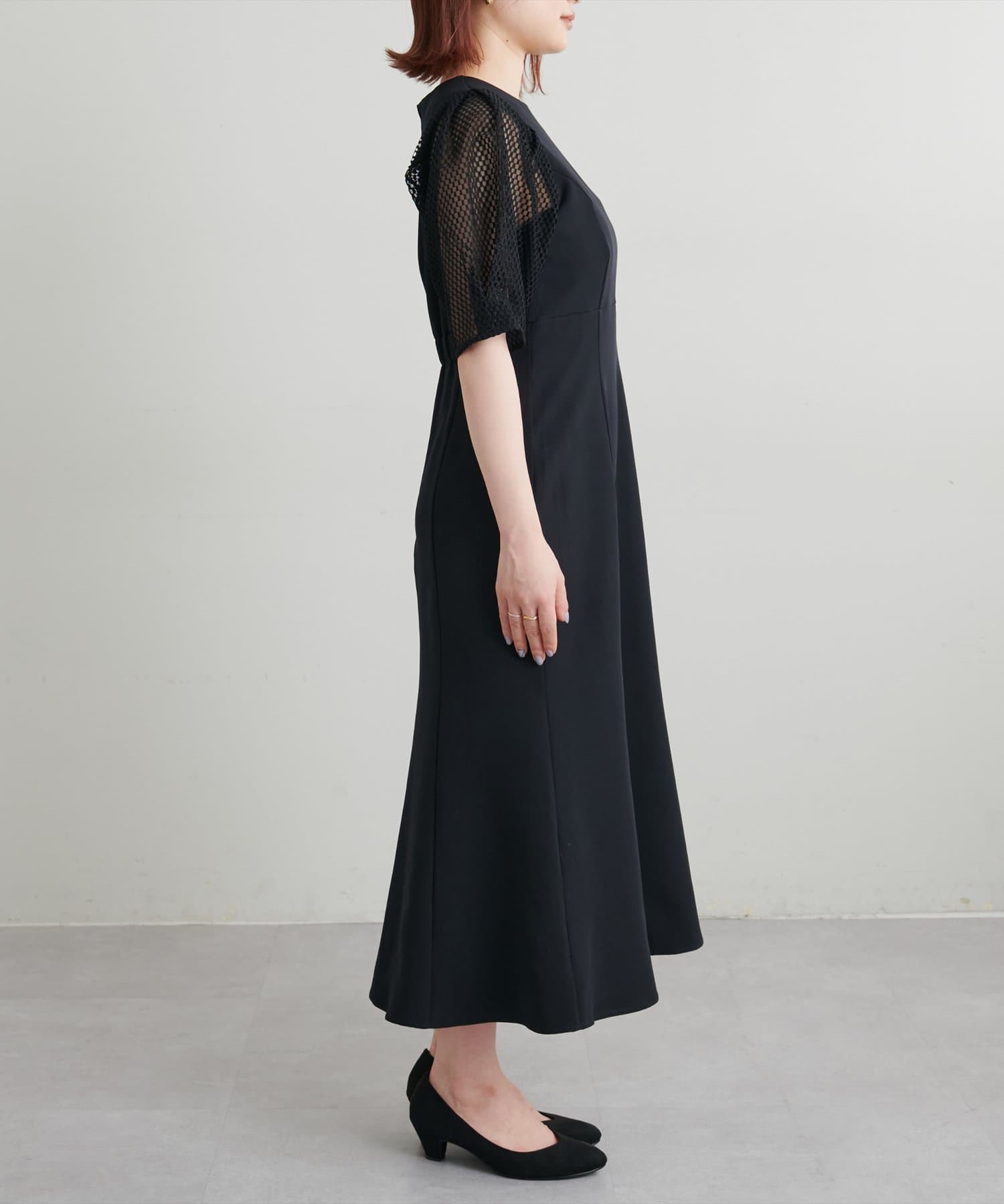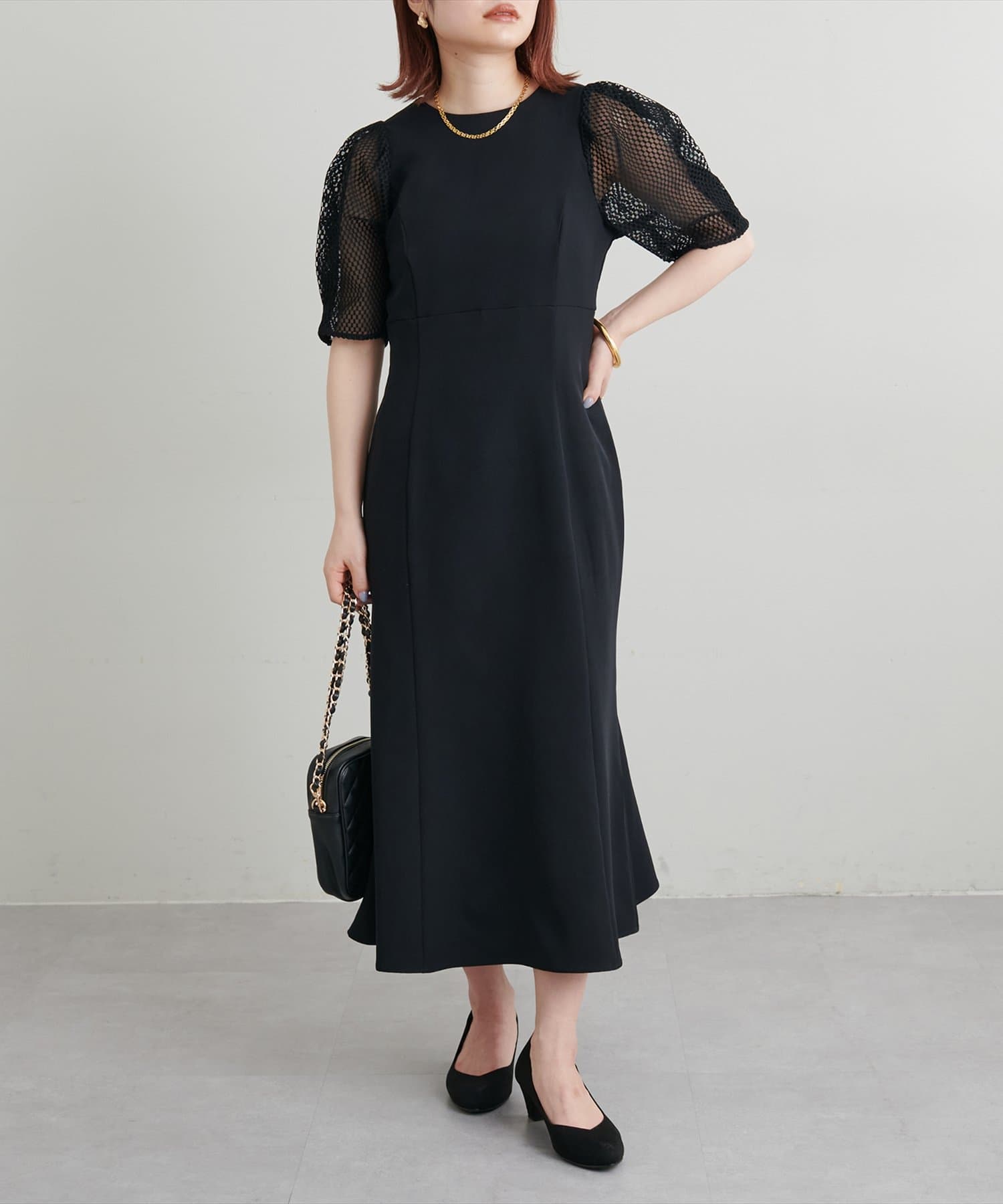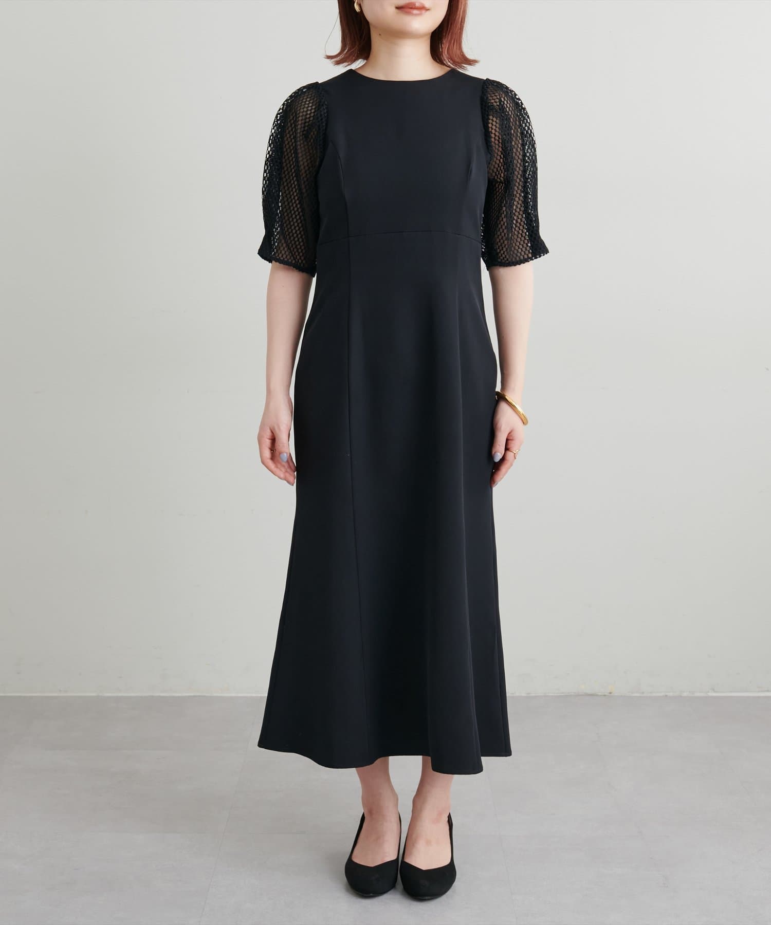 オケージョン対応可能 / 異素材メッシュスリーブドレス