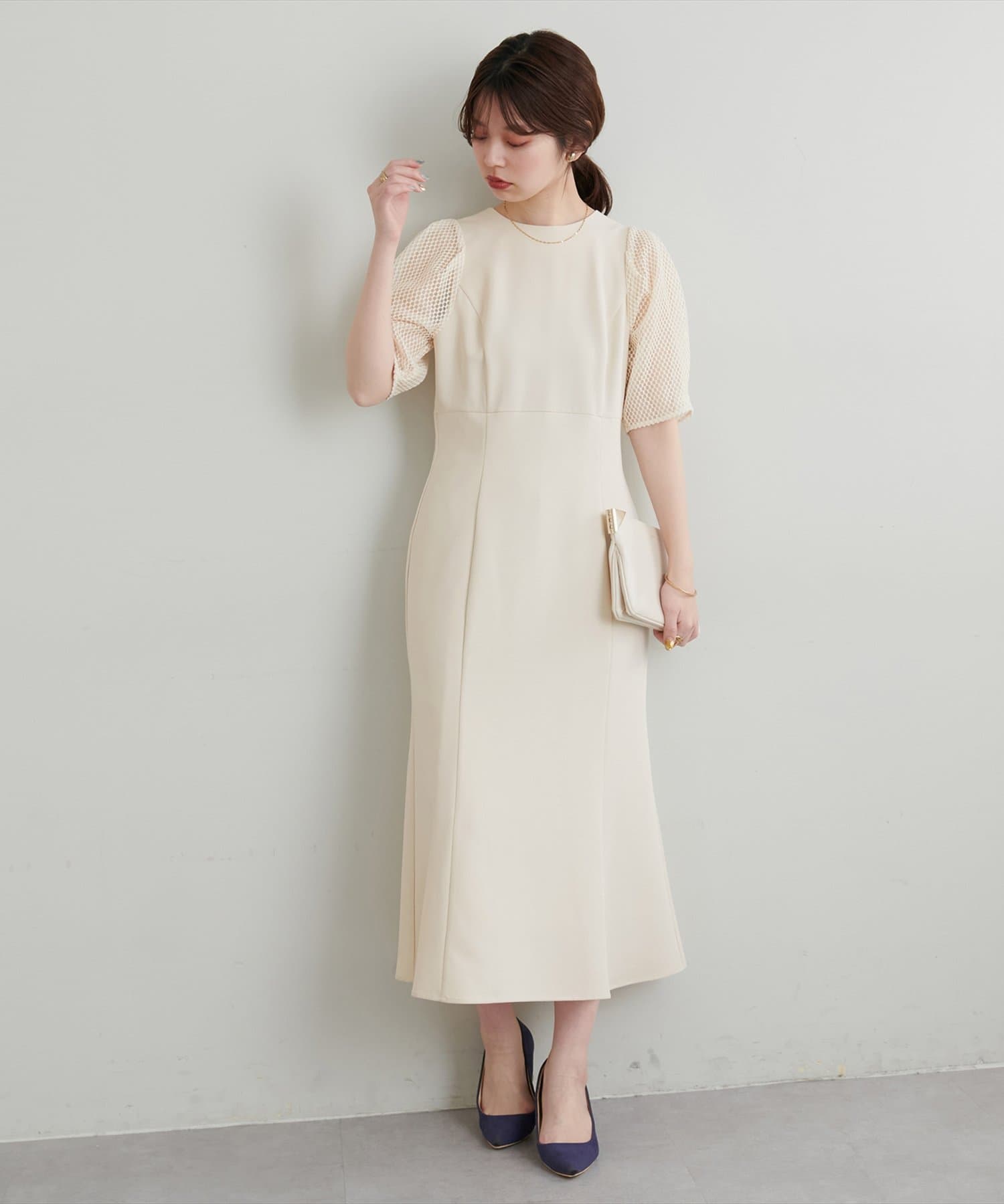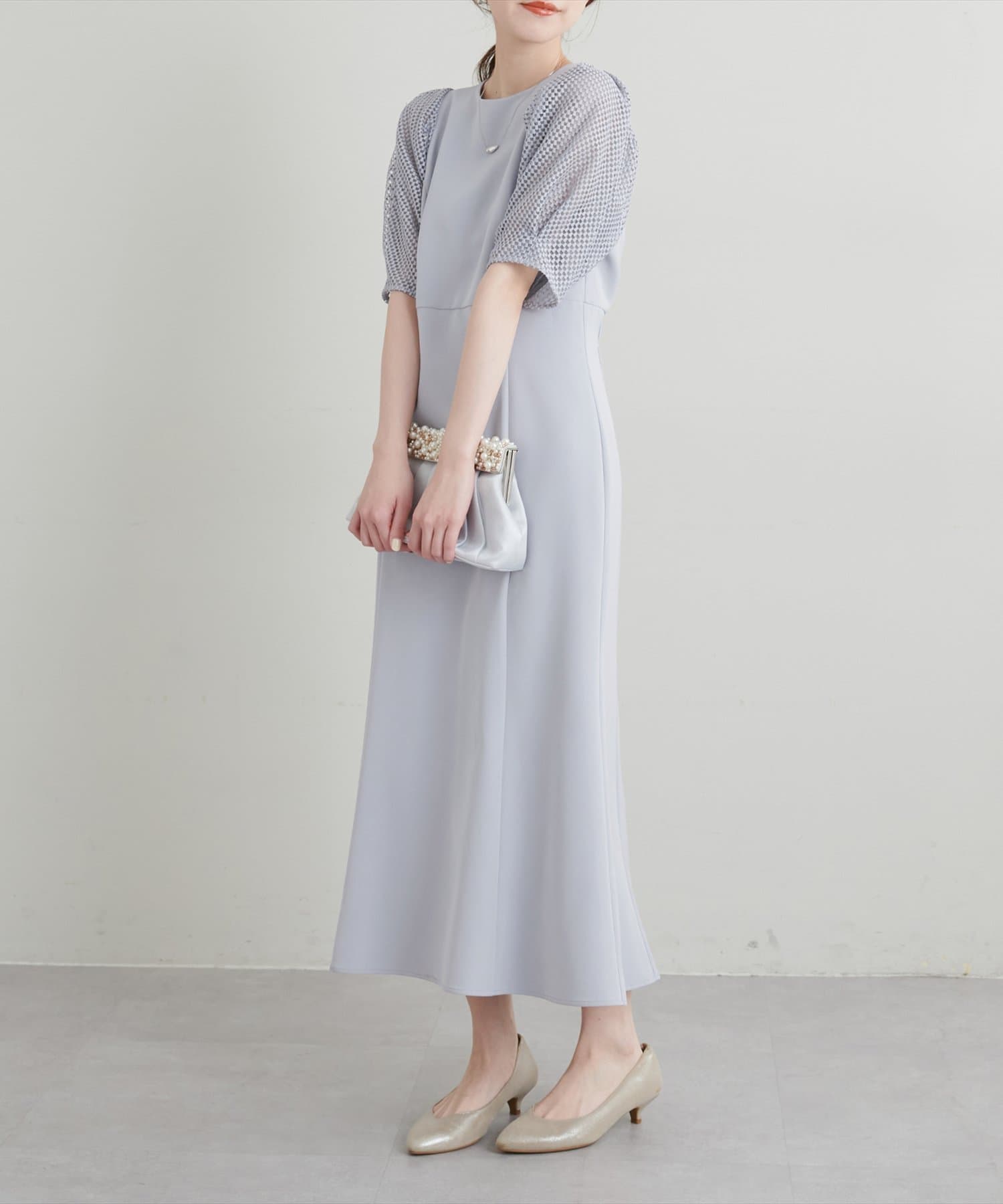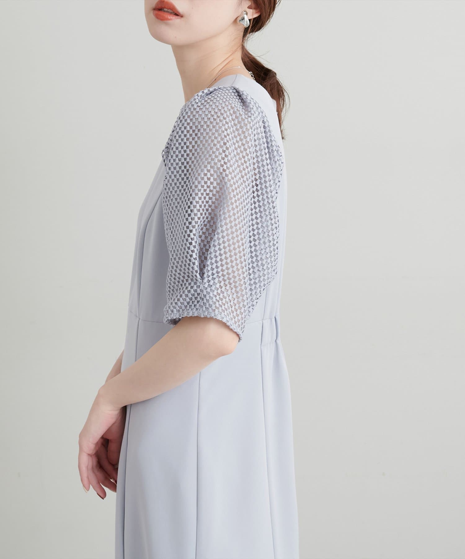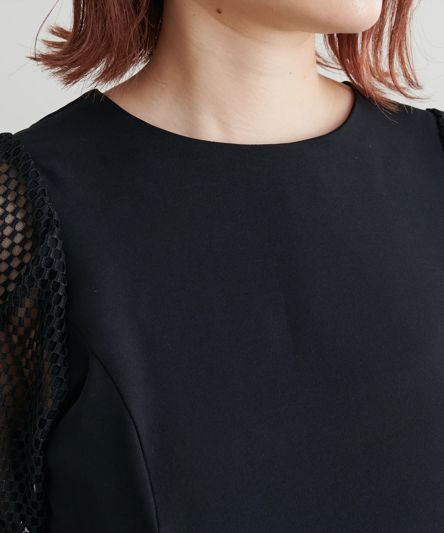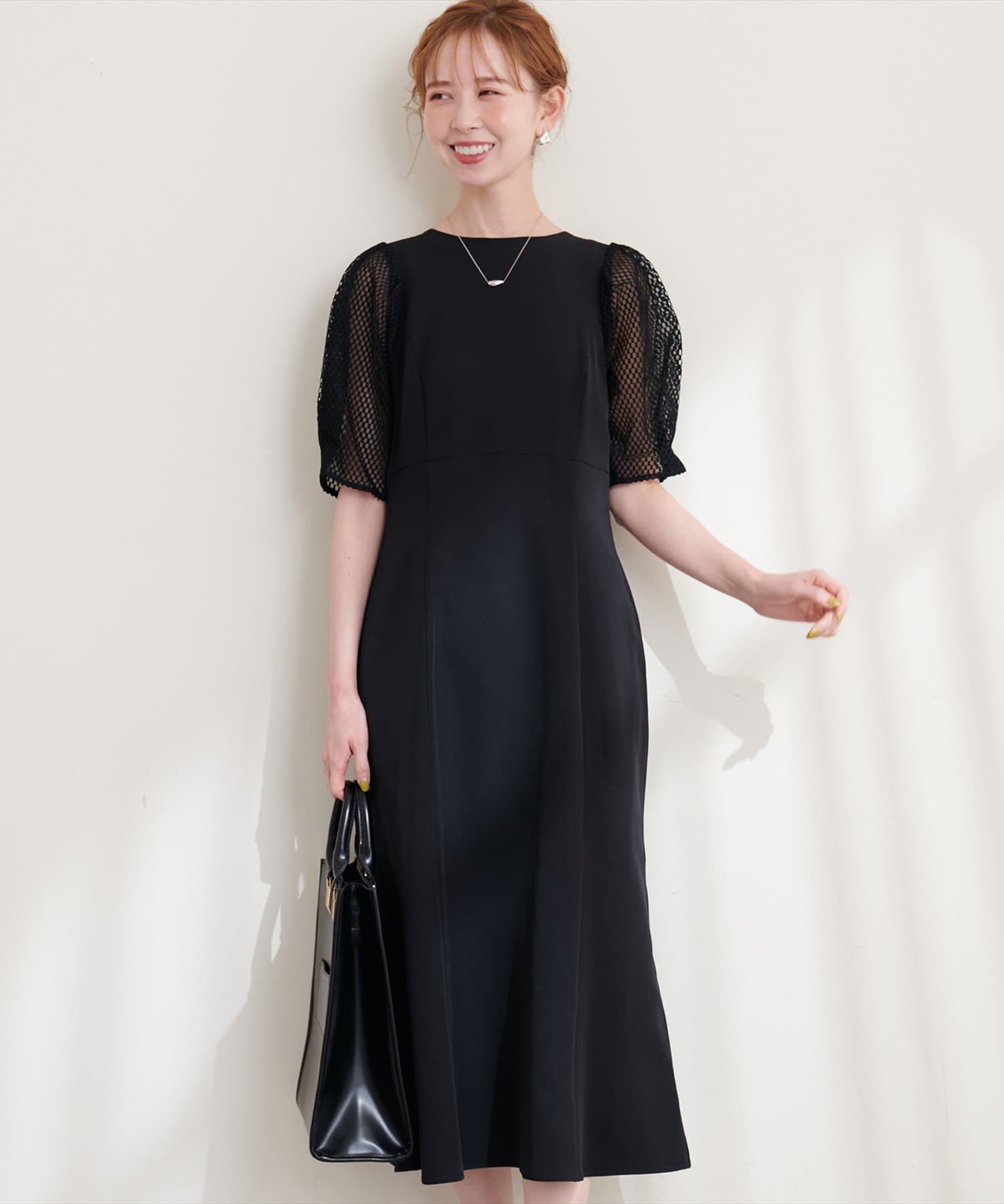 オケージョン対応可能 / 異素材メッシュスリーブドレス