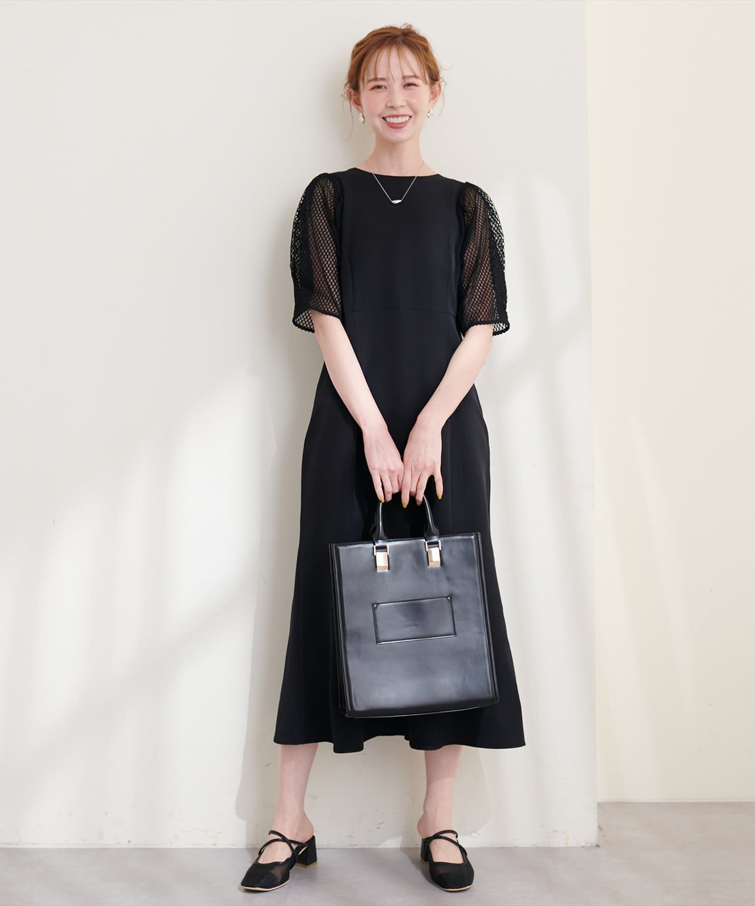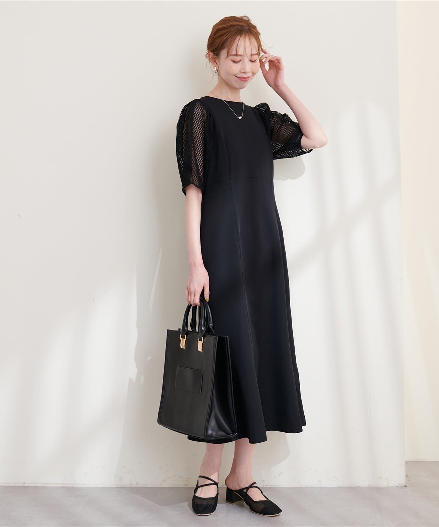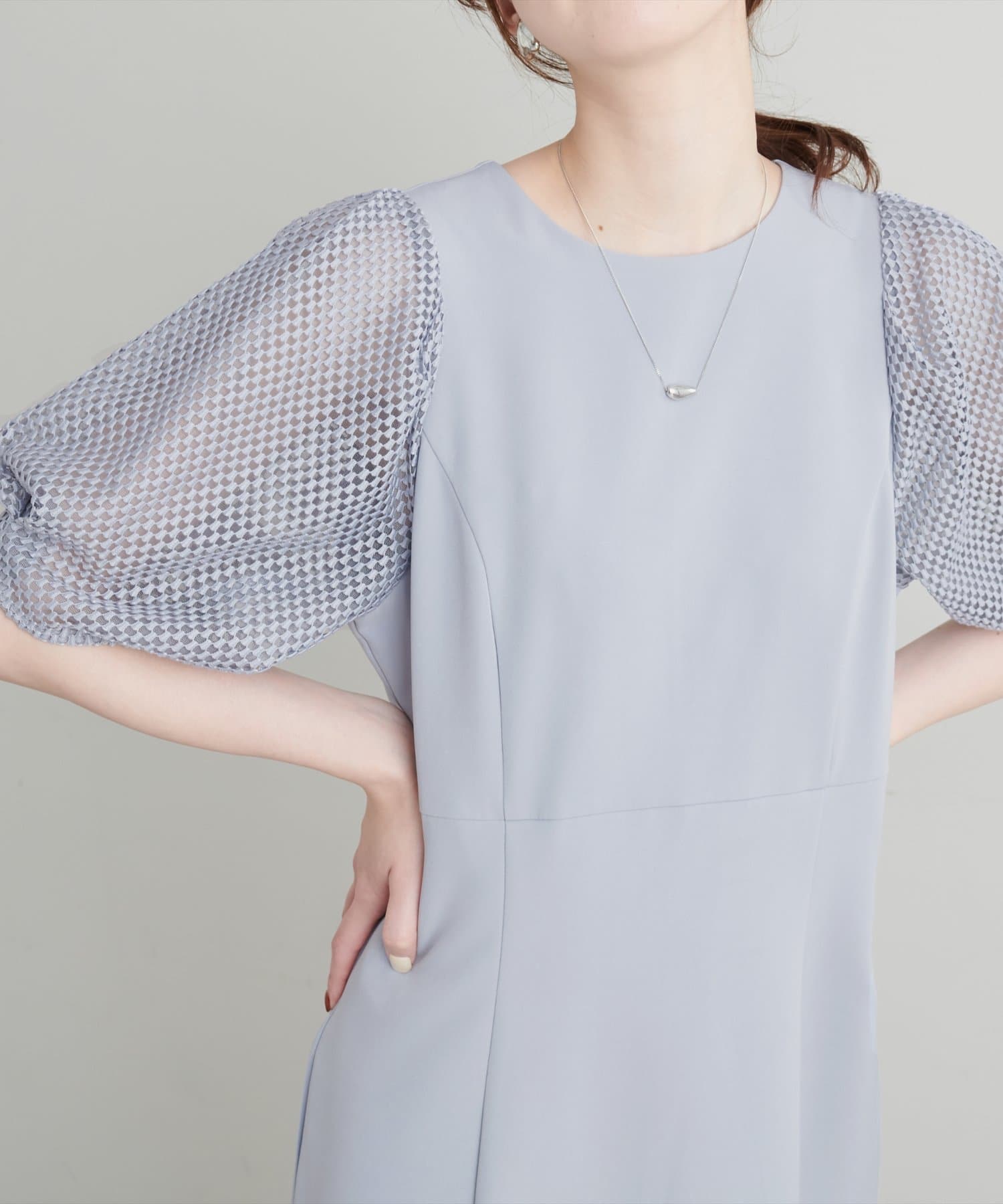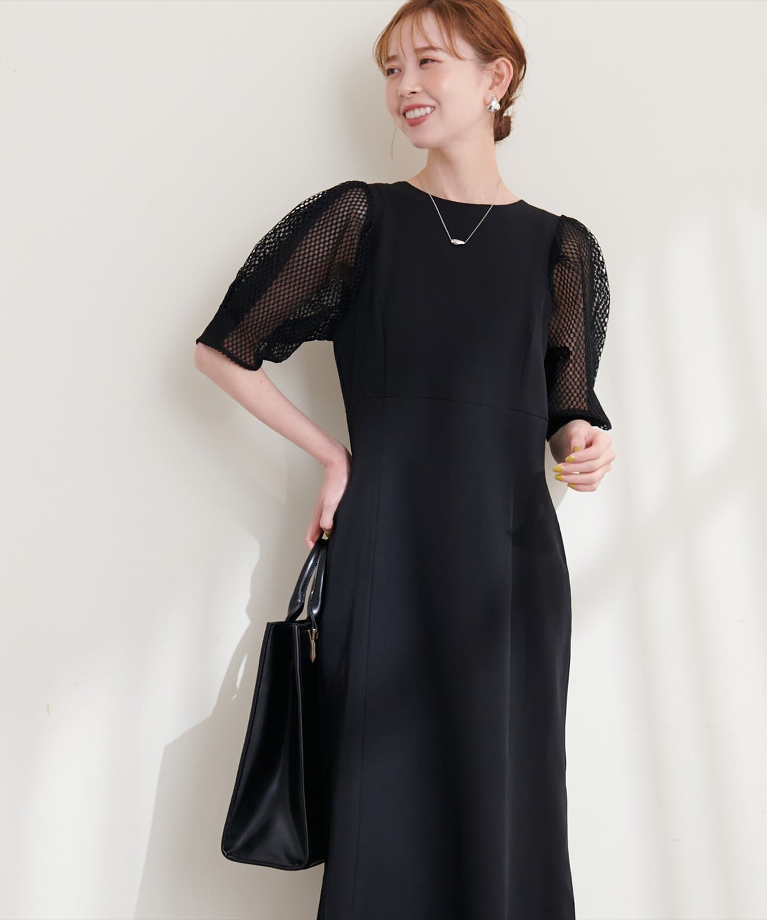 オケージョン対応可能 / 異素材メッシュスリーブドレス