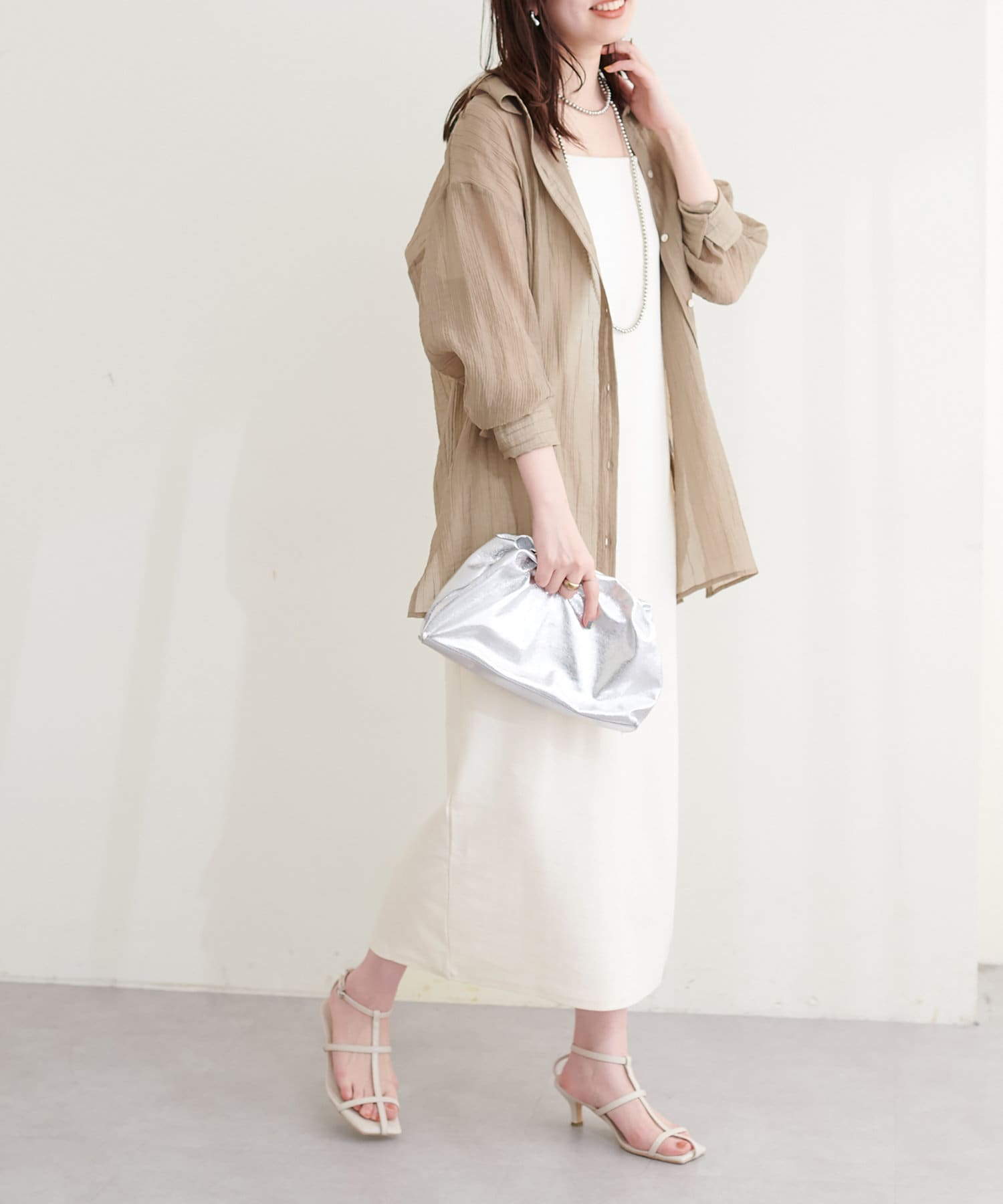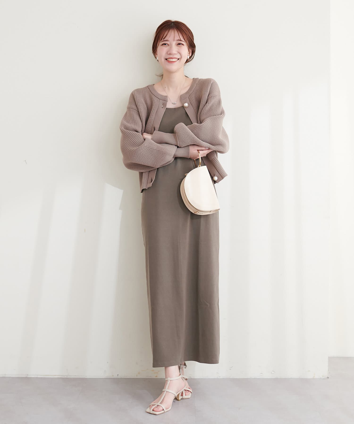 お手持ちのカーディガンやシャツワンピースとレイヤードしても◎