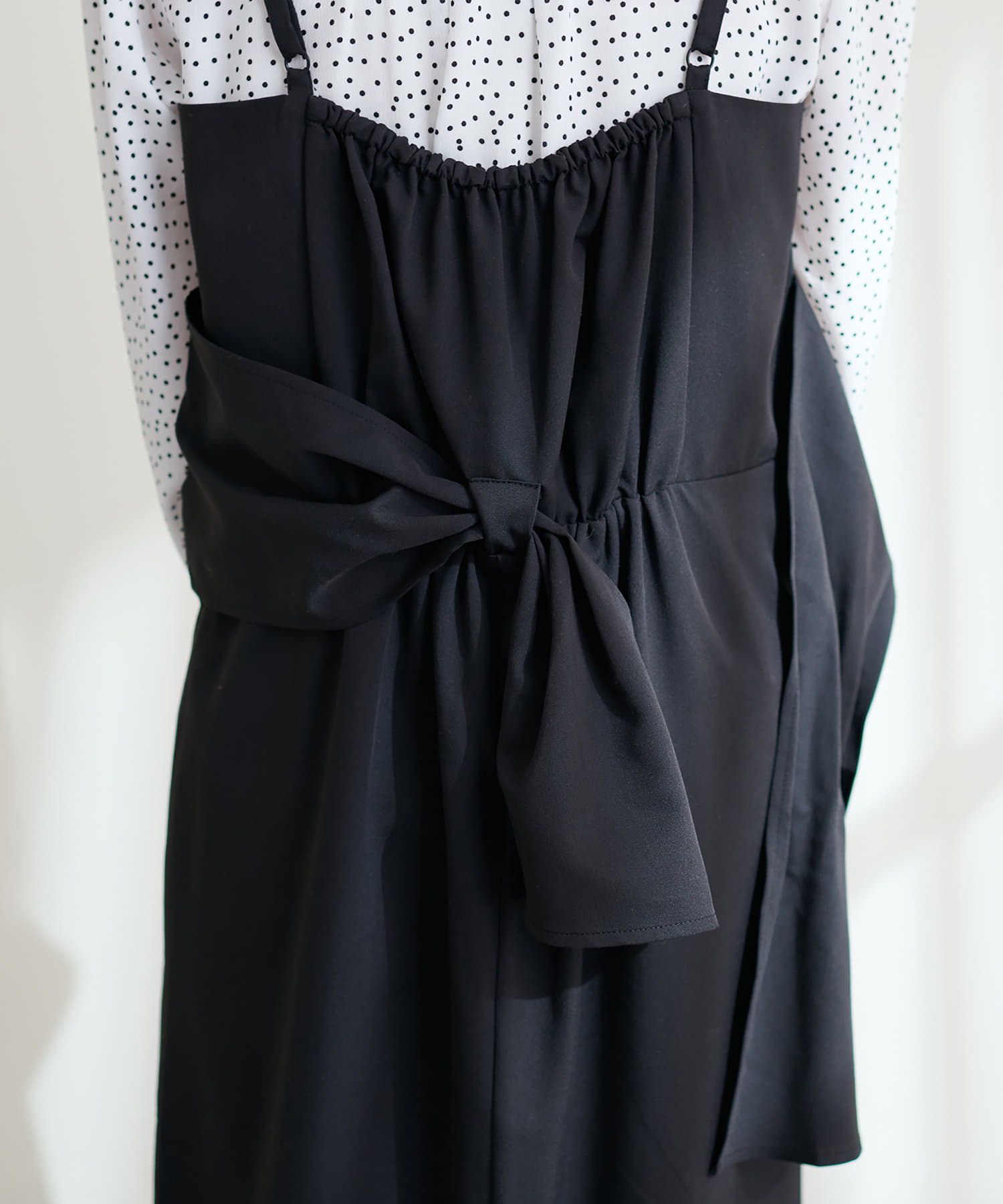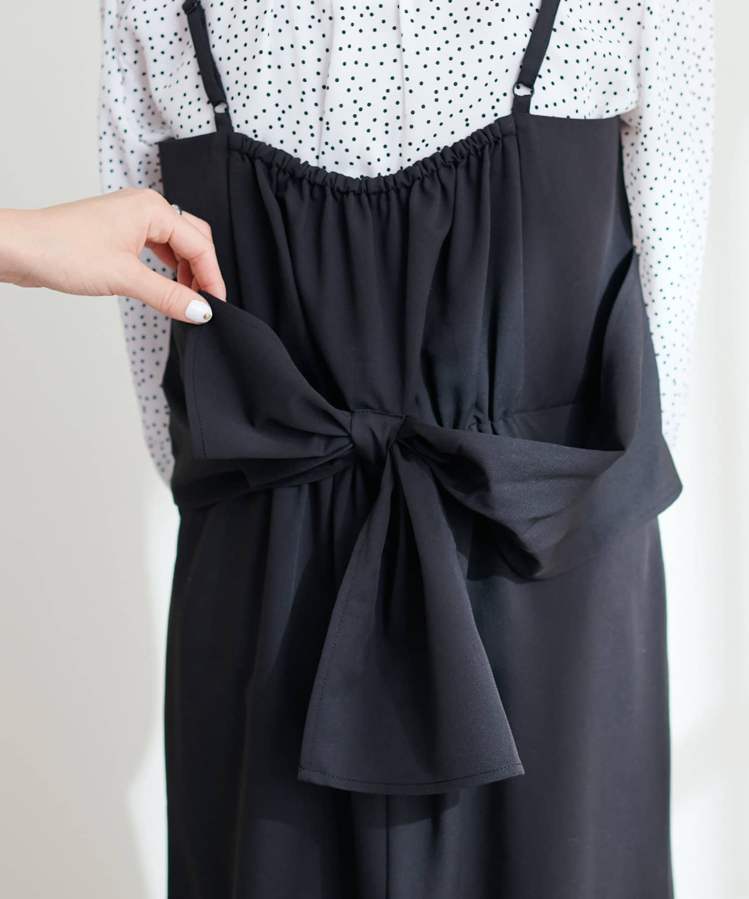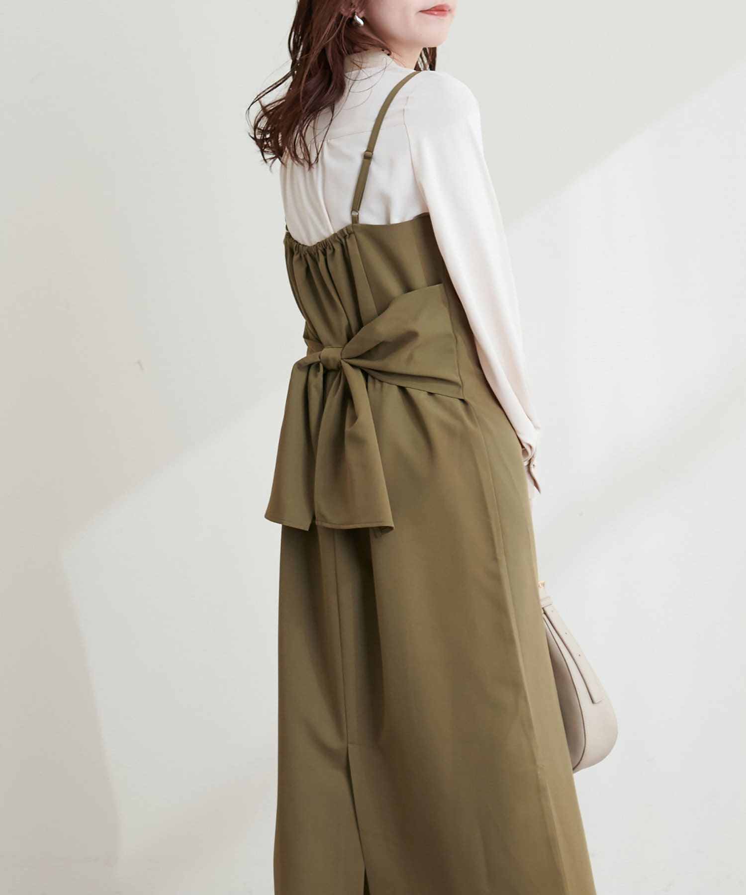 すとんとしたシルエットにバックリボンが目を惹くキャミワンピース。