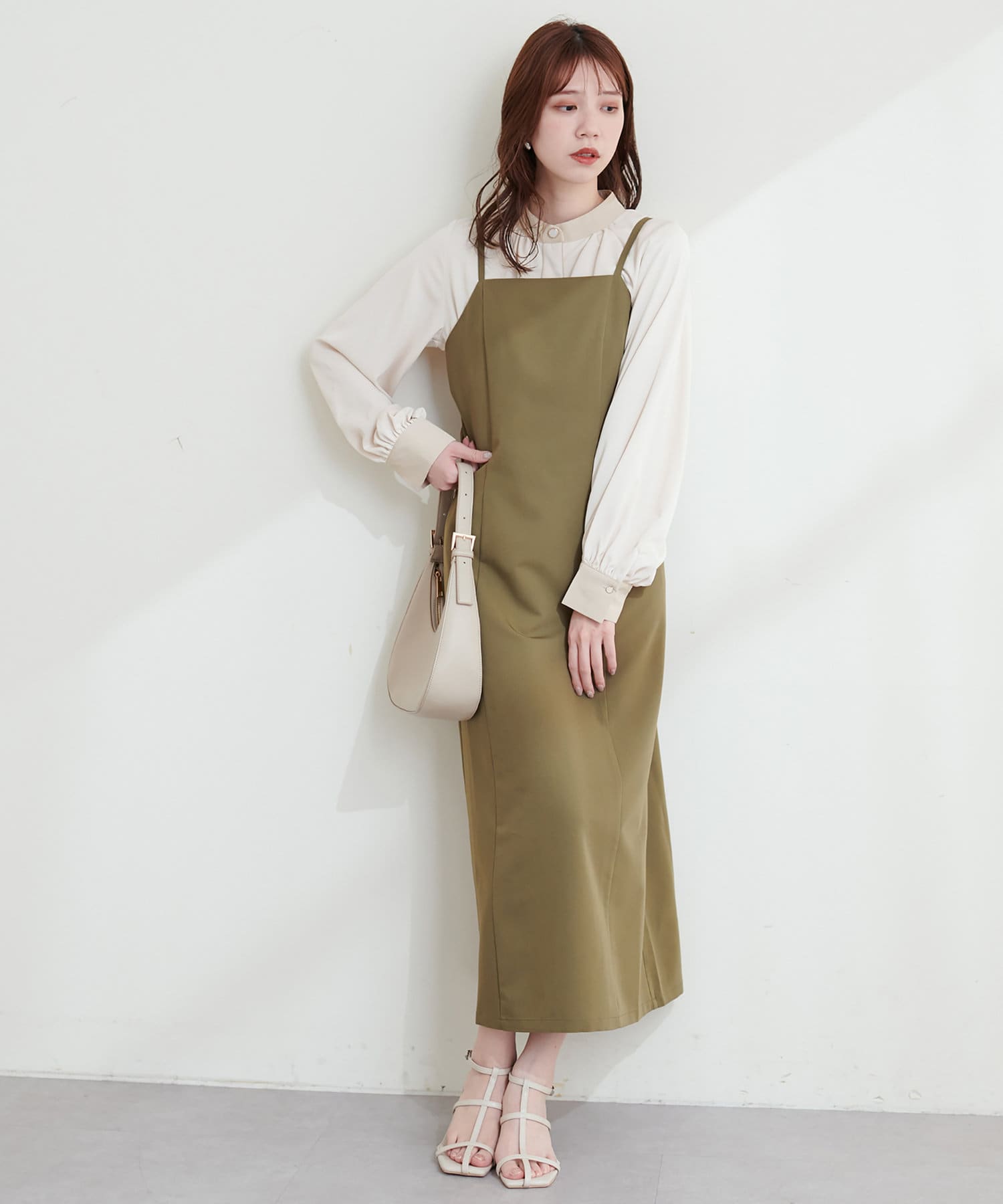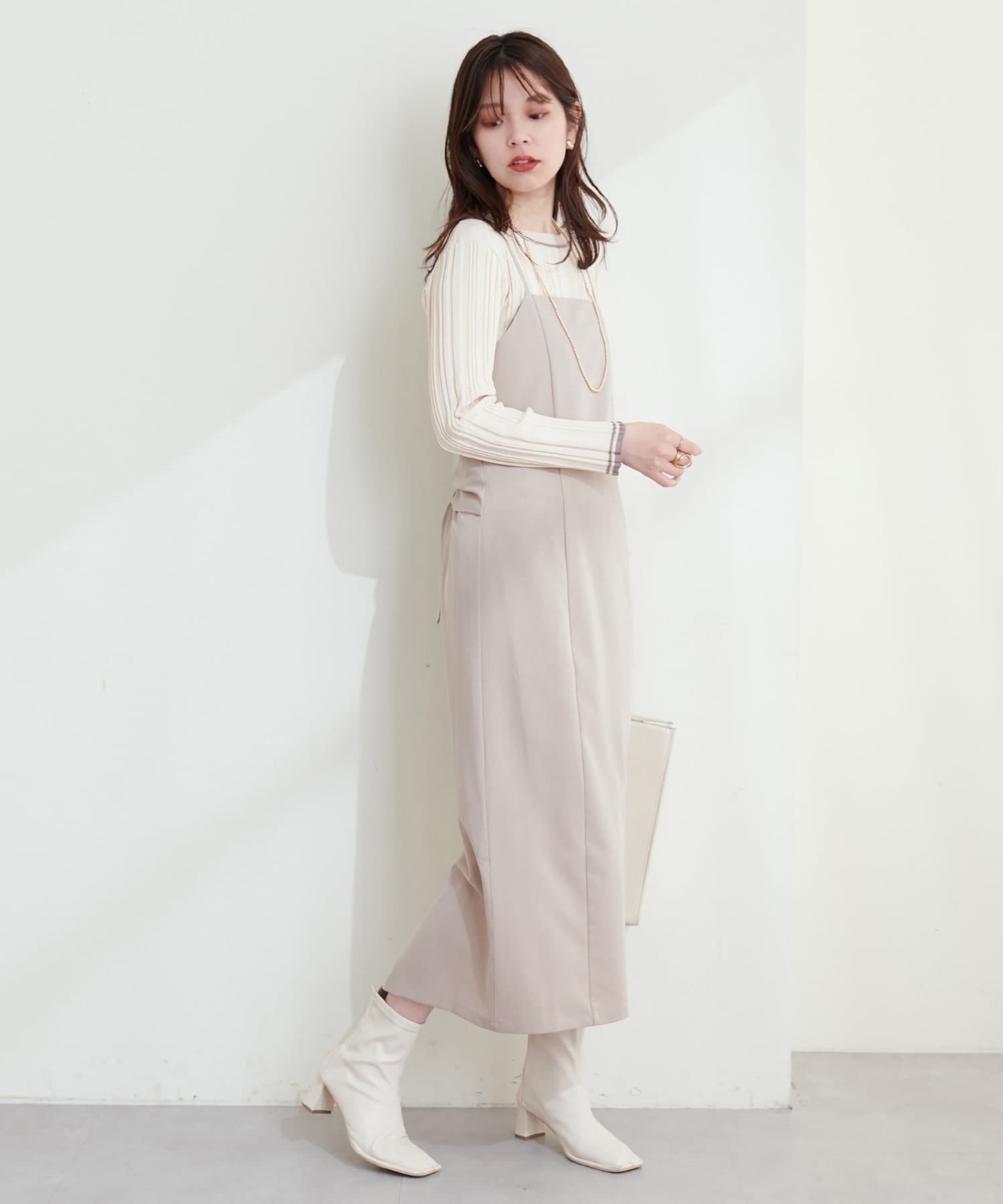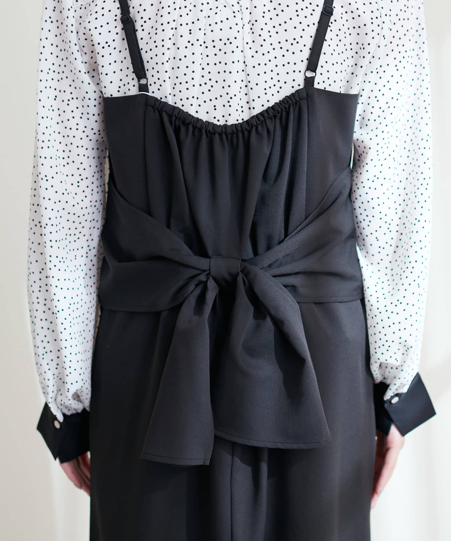 すとんとしたシルエットにバックリボンが目を惹くキャミワンピース。