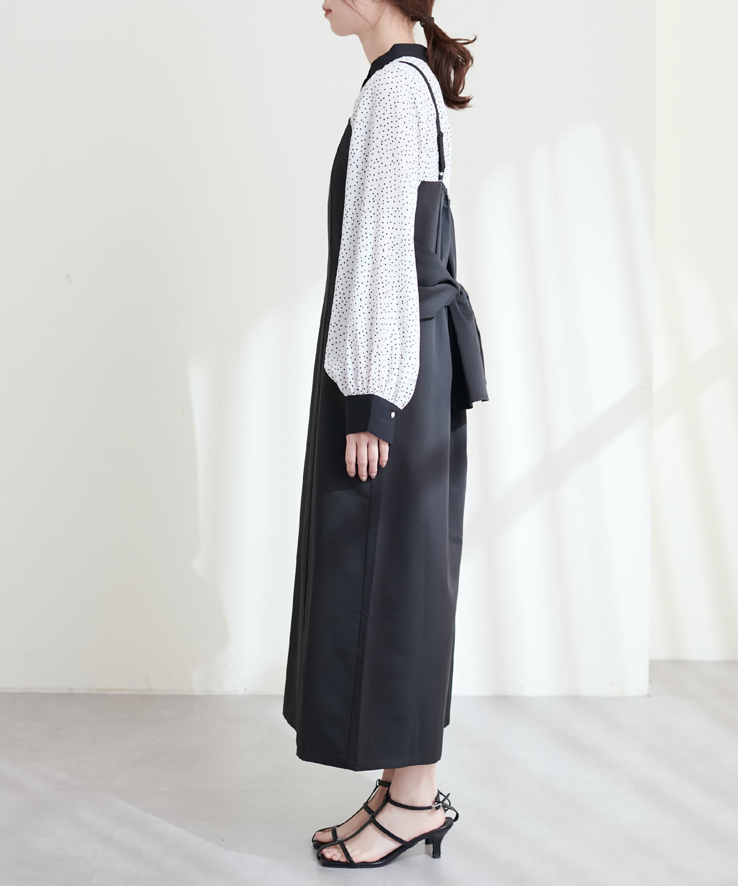 ウエスト幅はリボンで調節できますので、スタイリングに合わせて調節して雰囲気を変えられるのも嬉しいポイントです。