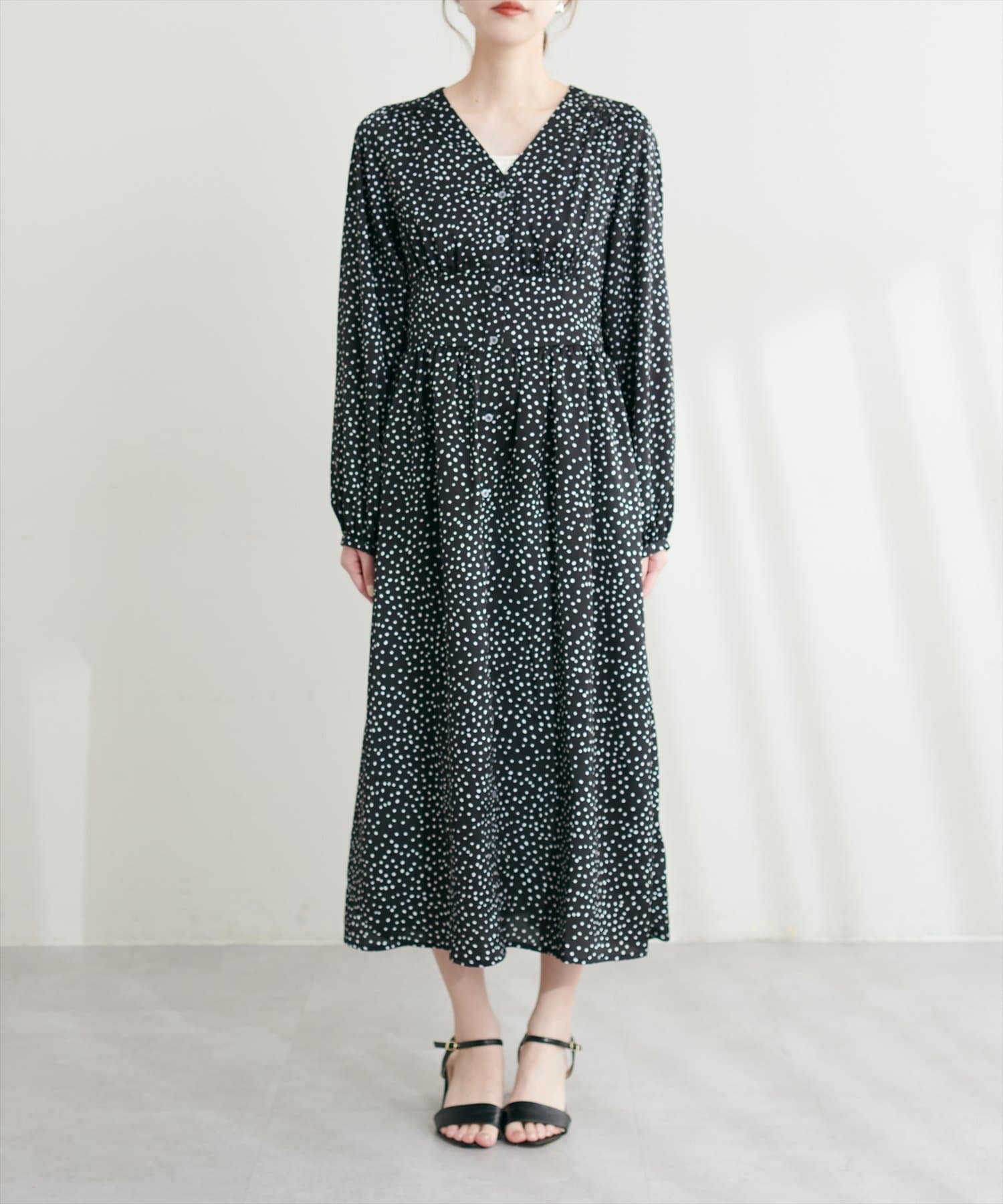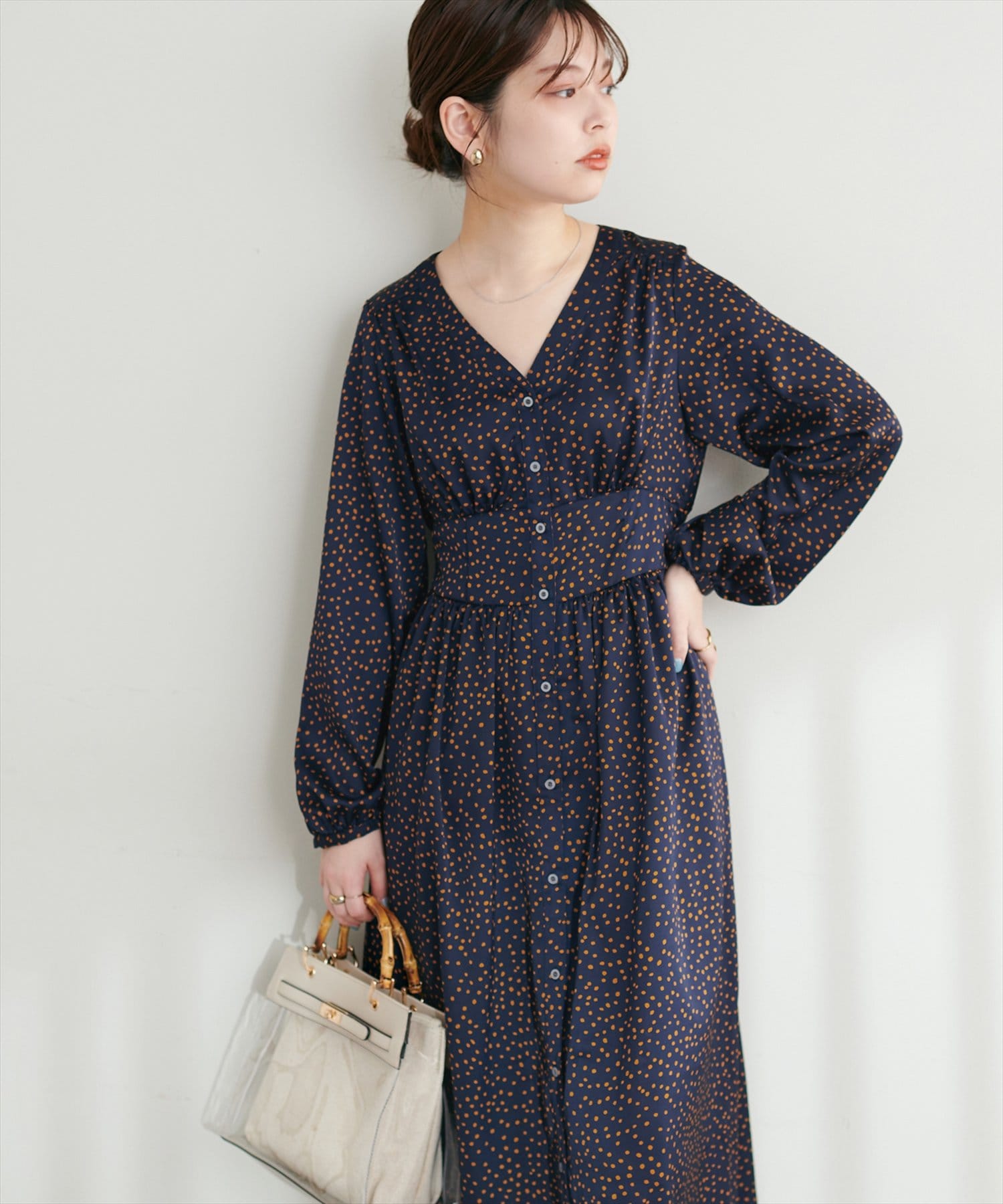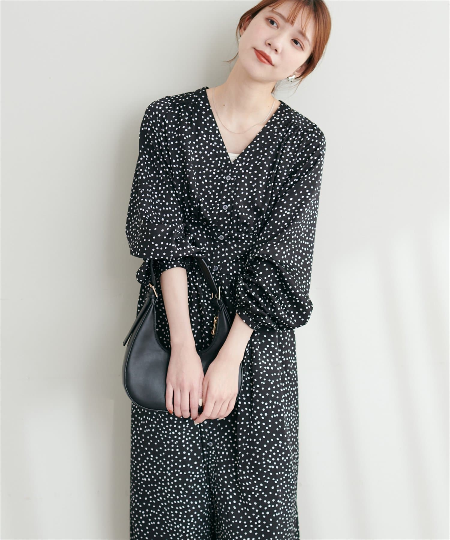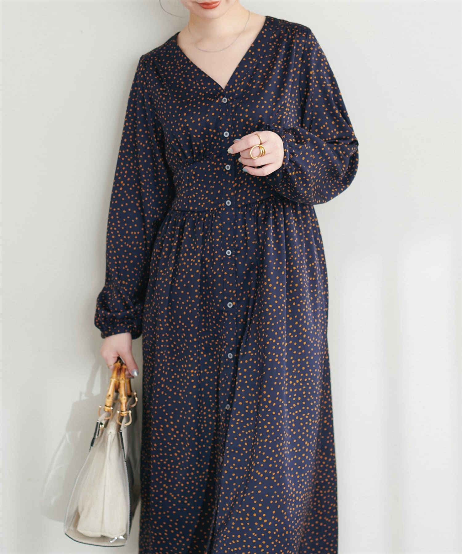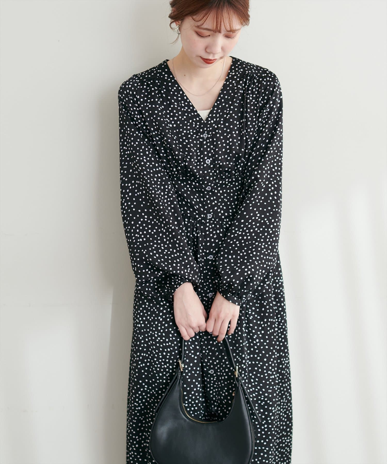 WEB限定カラーあり / 手描き風ドットレディワンピース