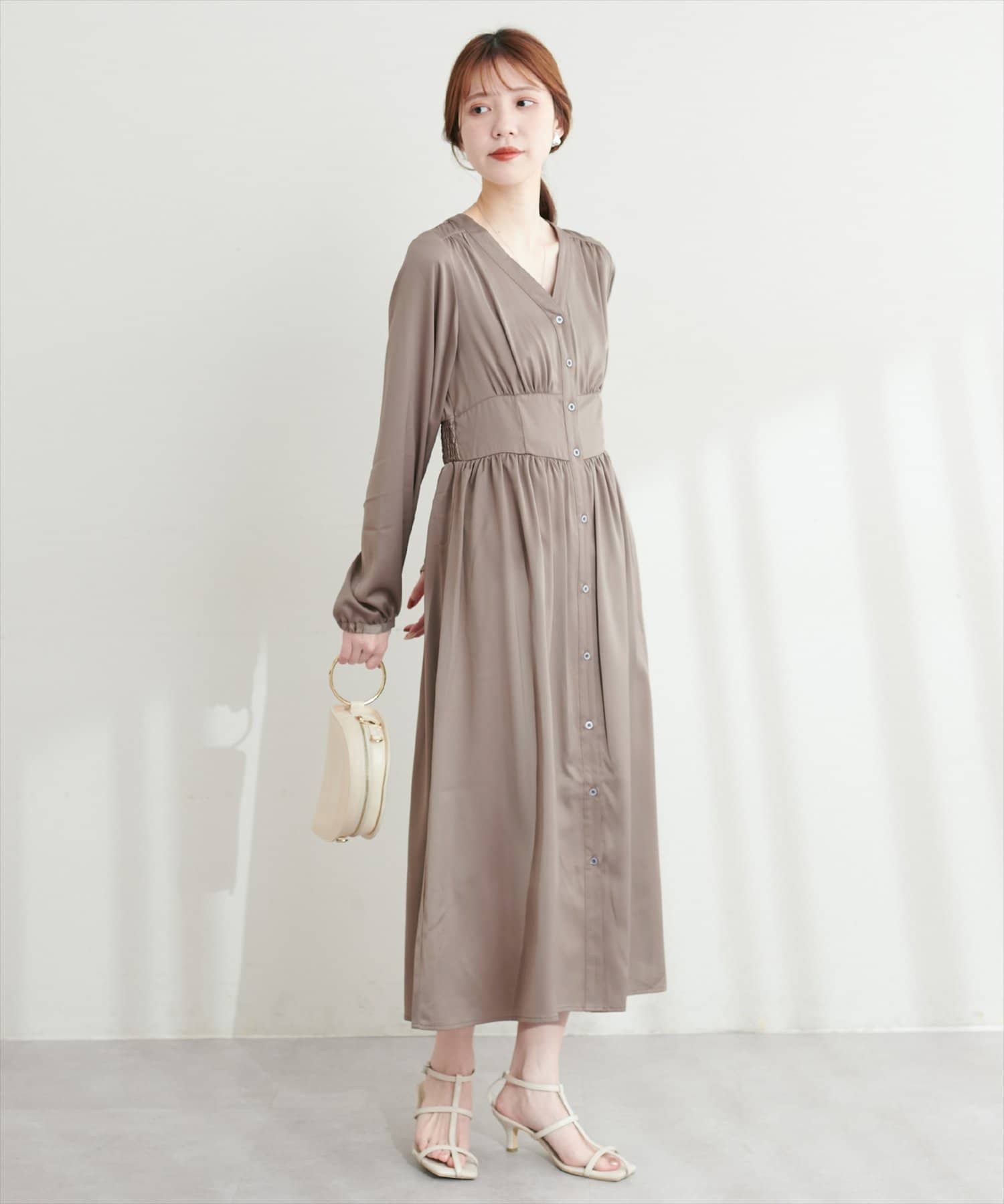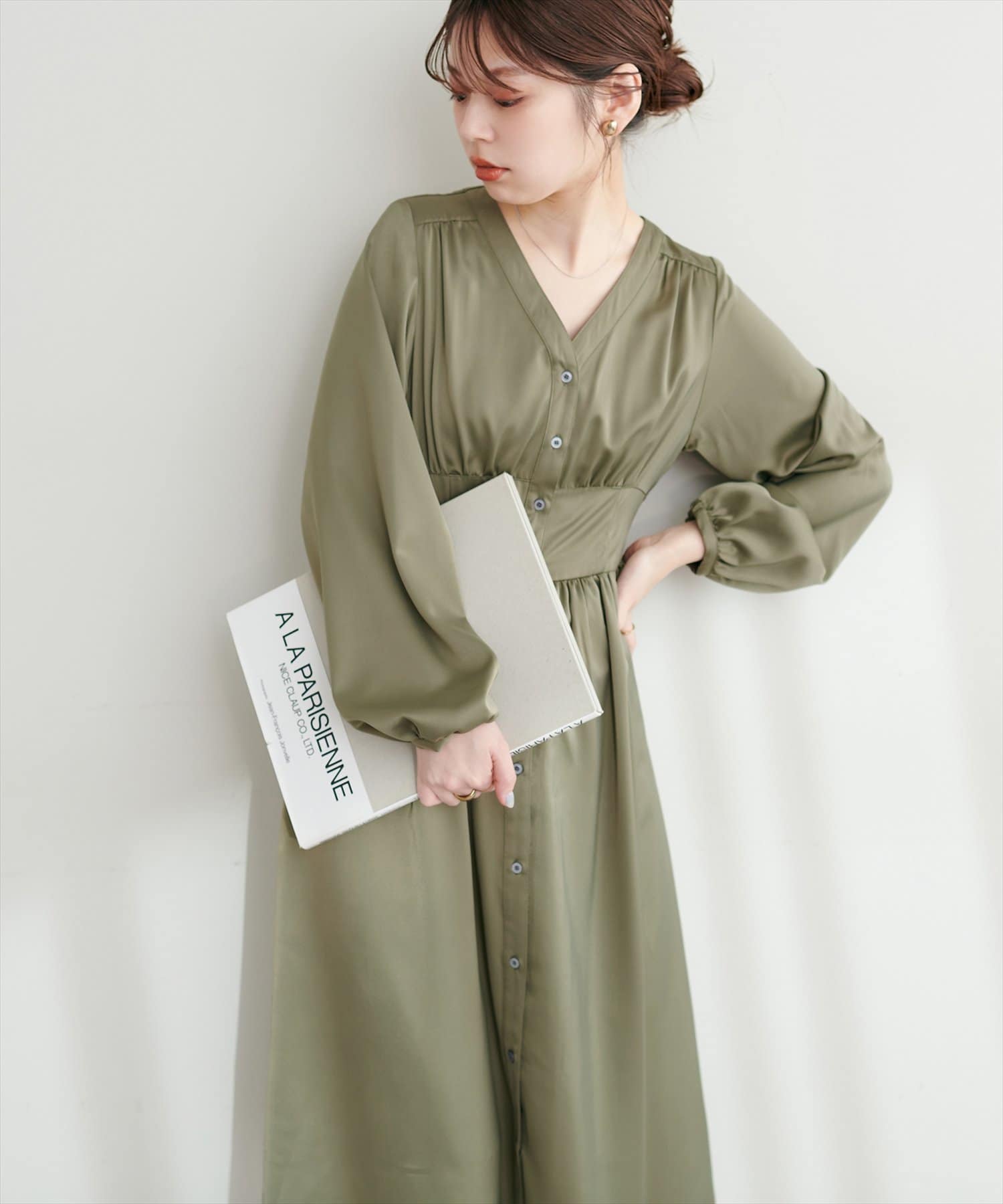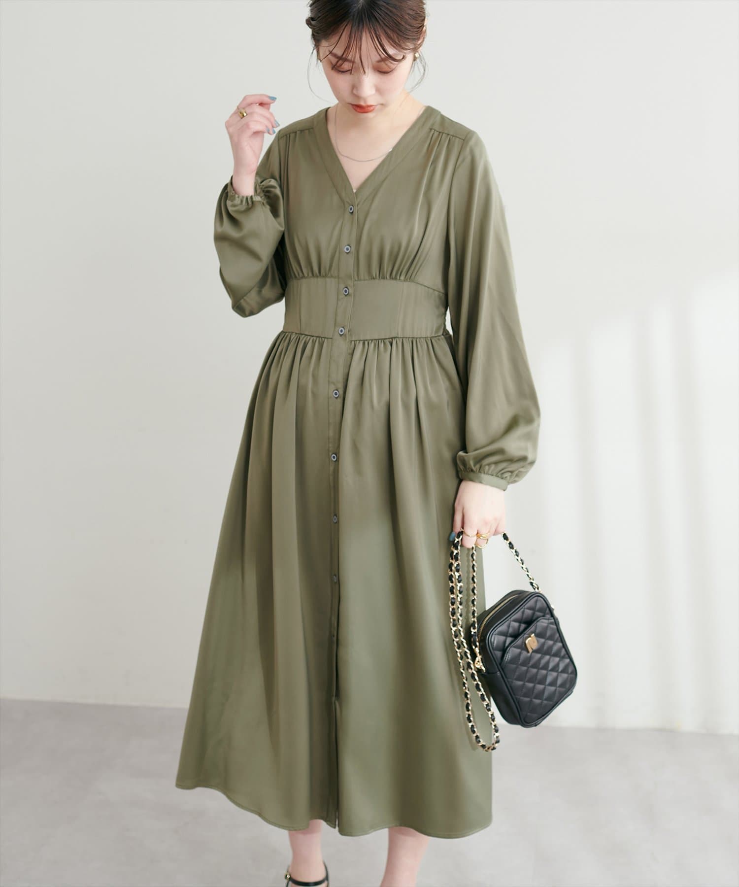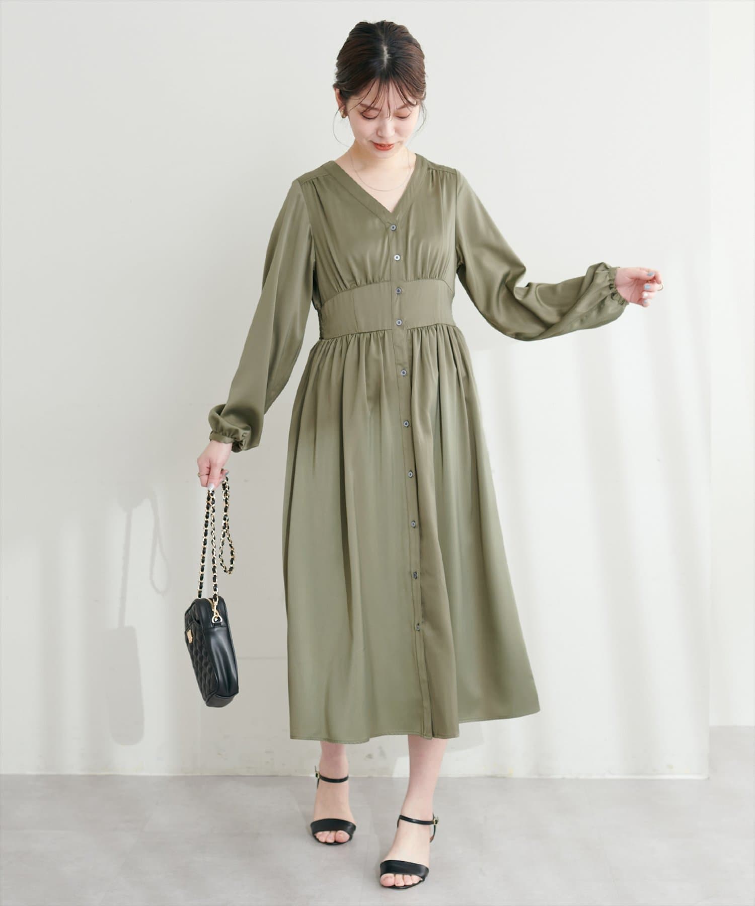 1枚でキレイめに決まりながらも、レトロさを感じるワンピース。