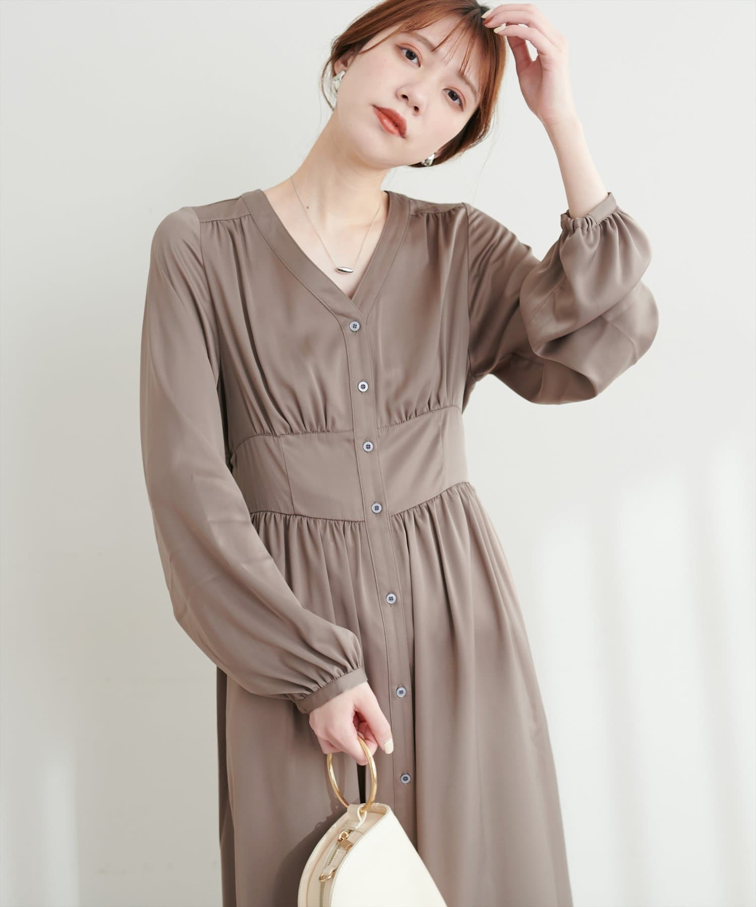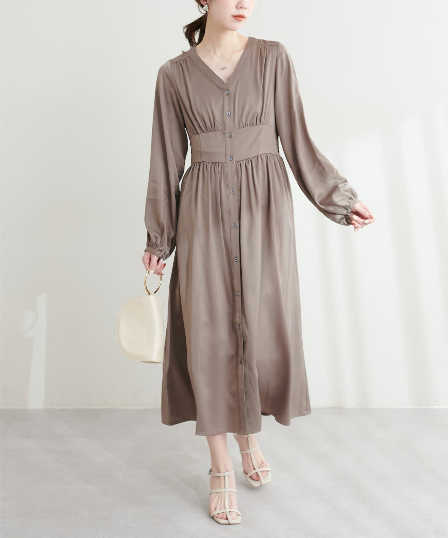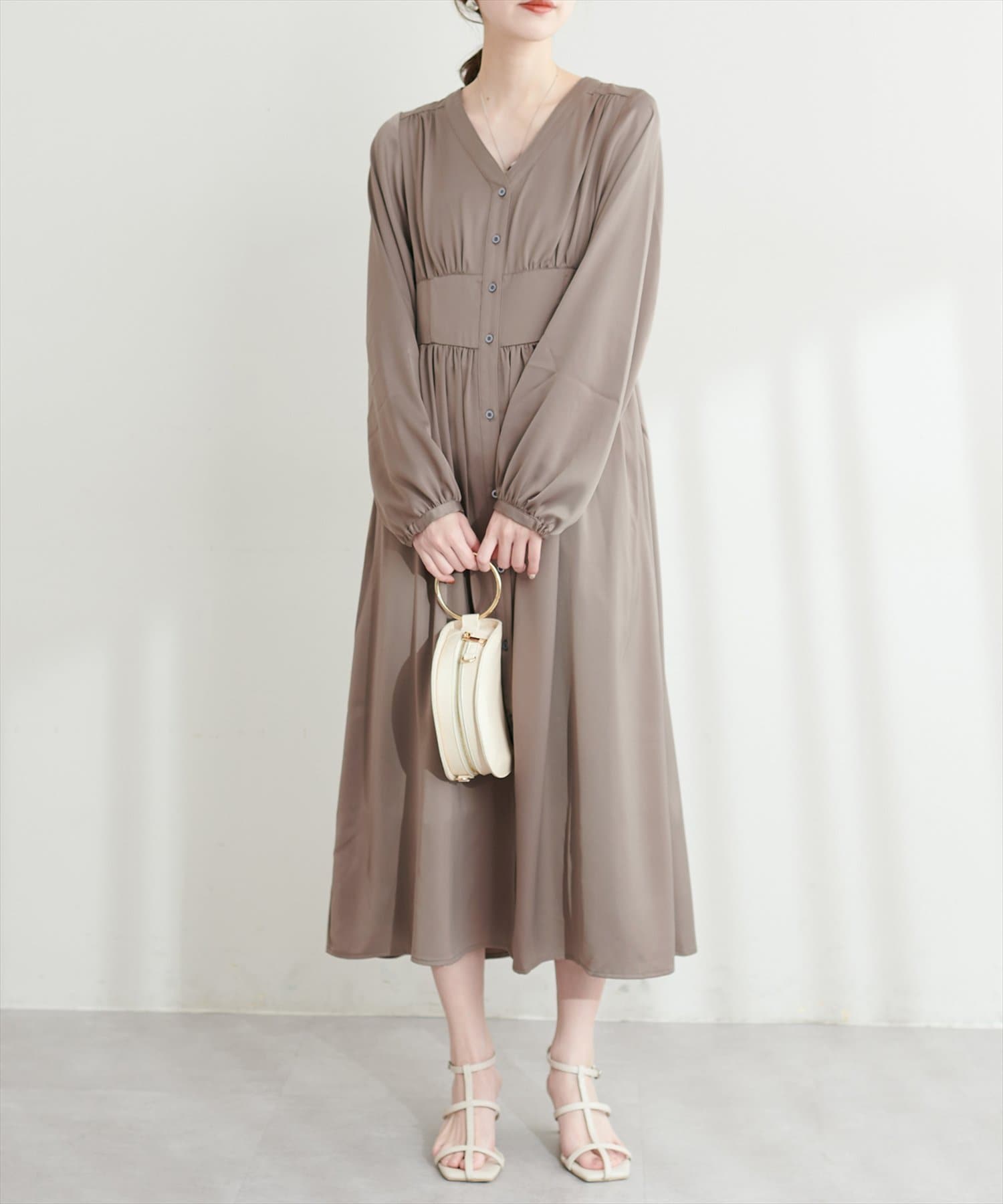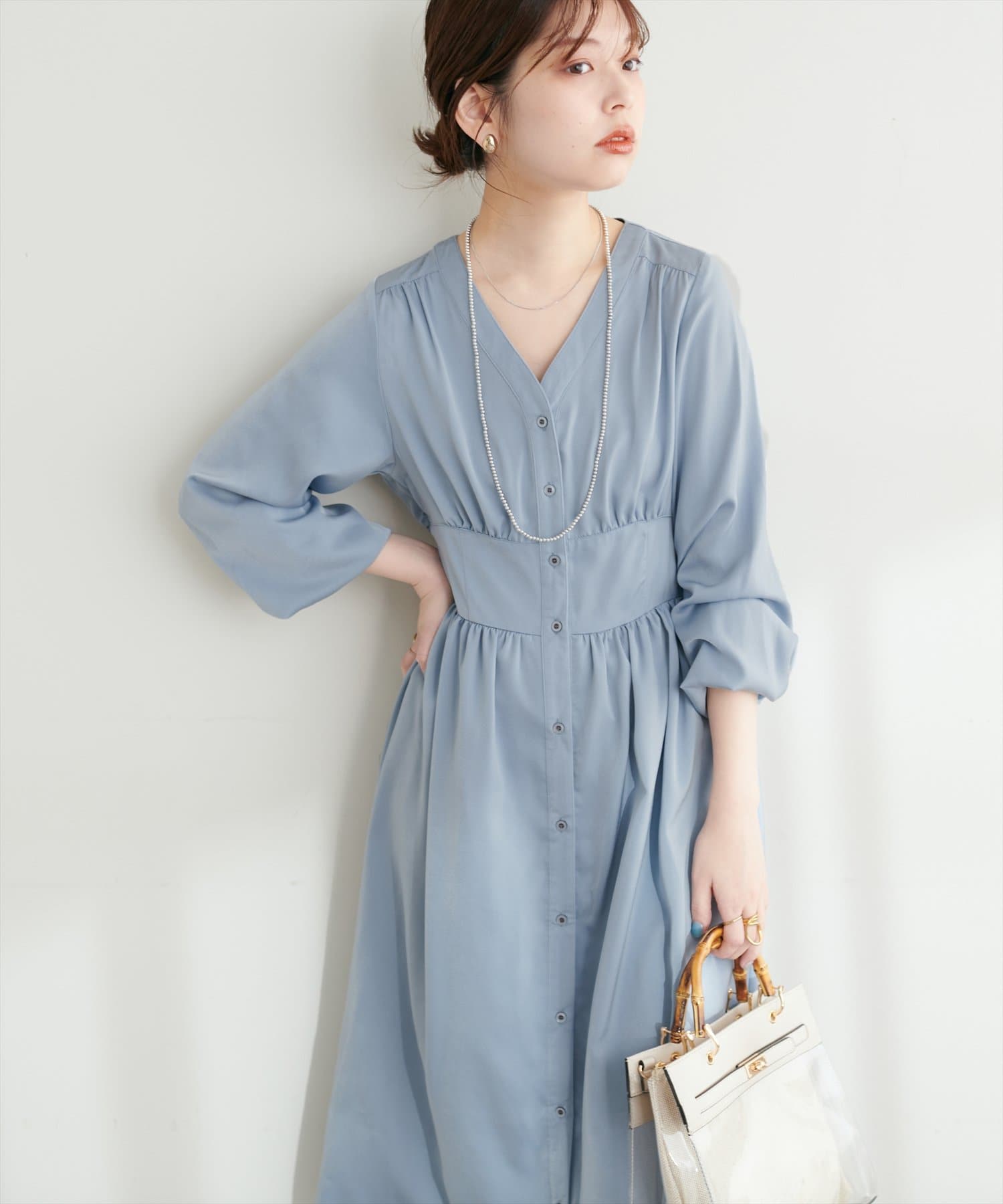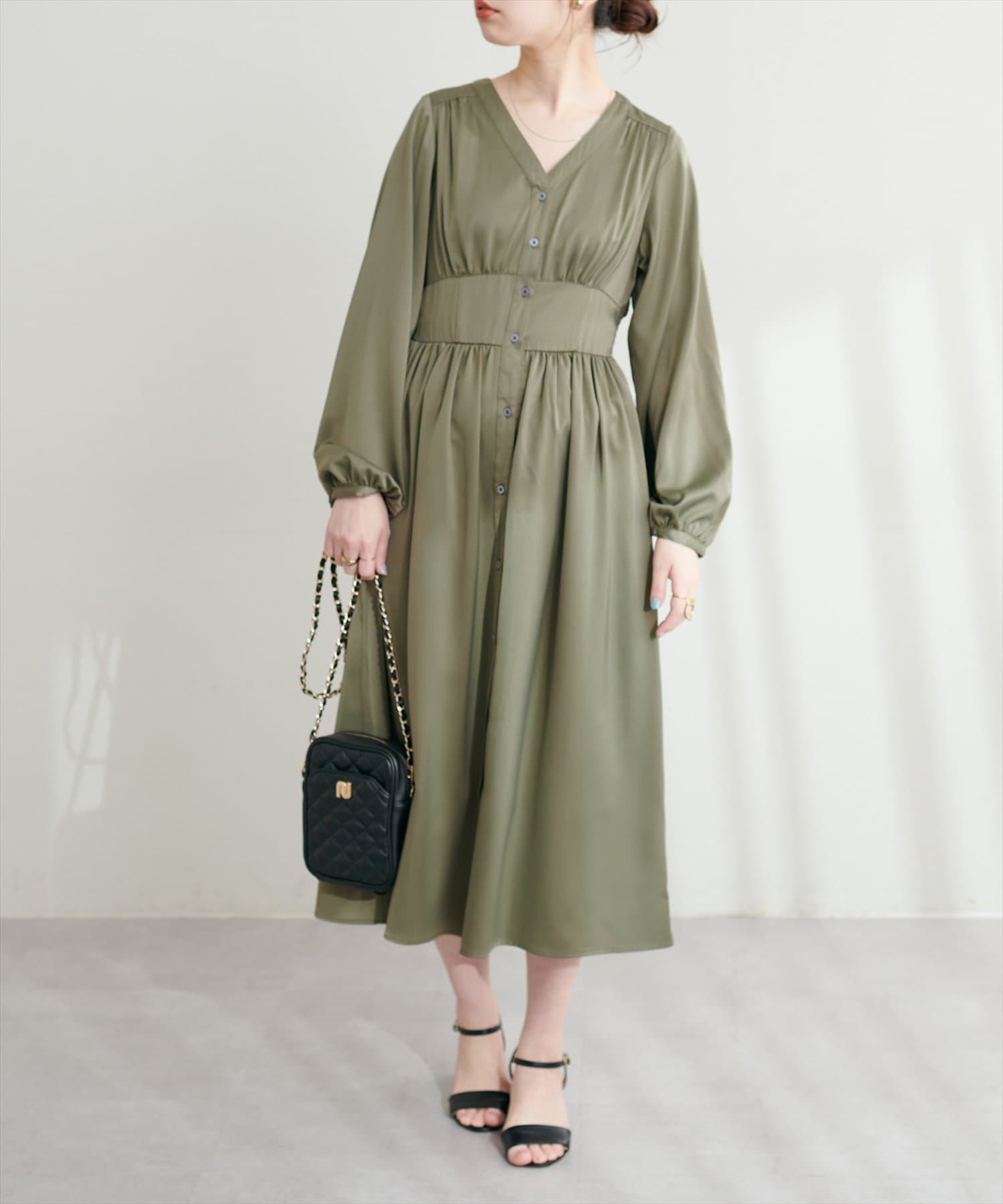 1枚でキレイめに決まりながらも、レトロさを感じるワンピース。