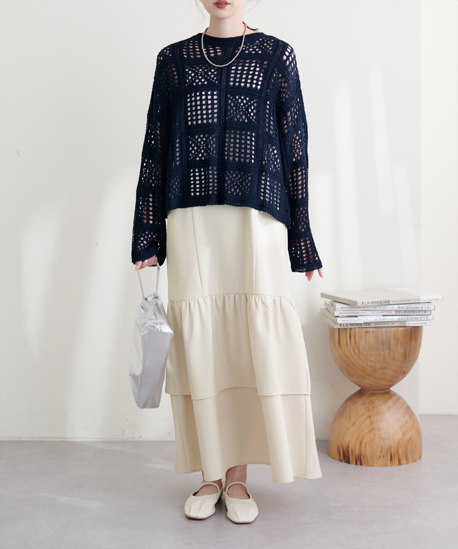 2段フリルで裾にボリュームがあり、身体のラインも気になりにくい。