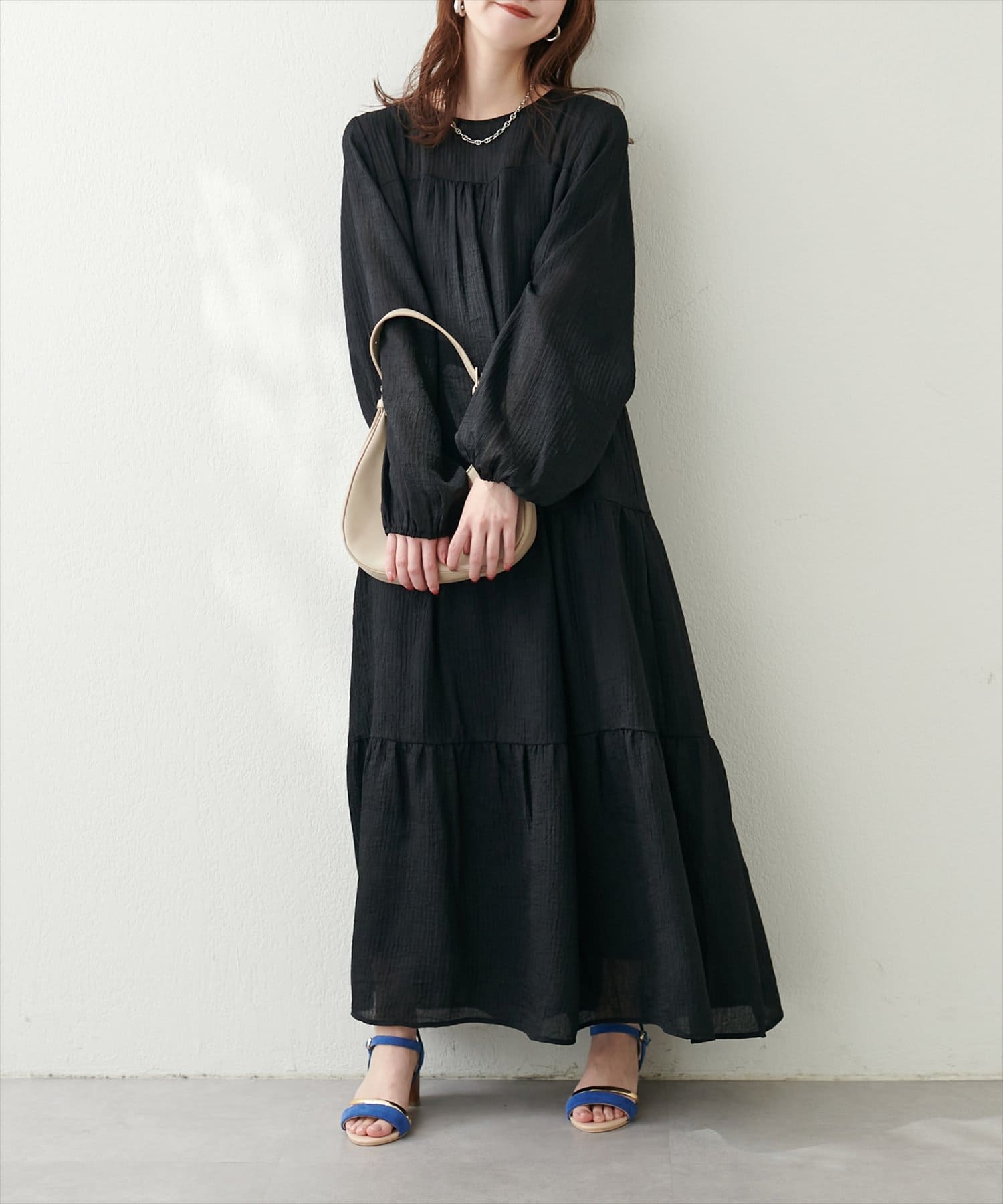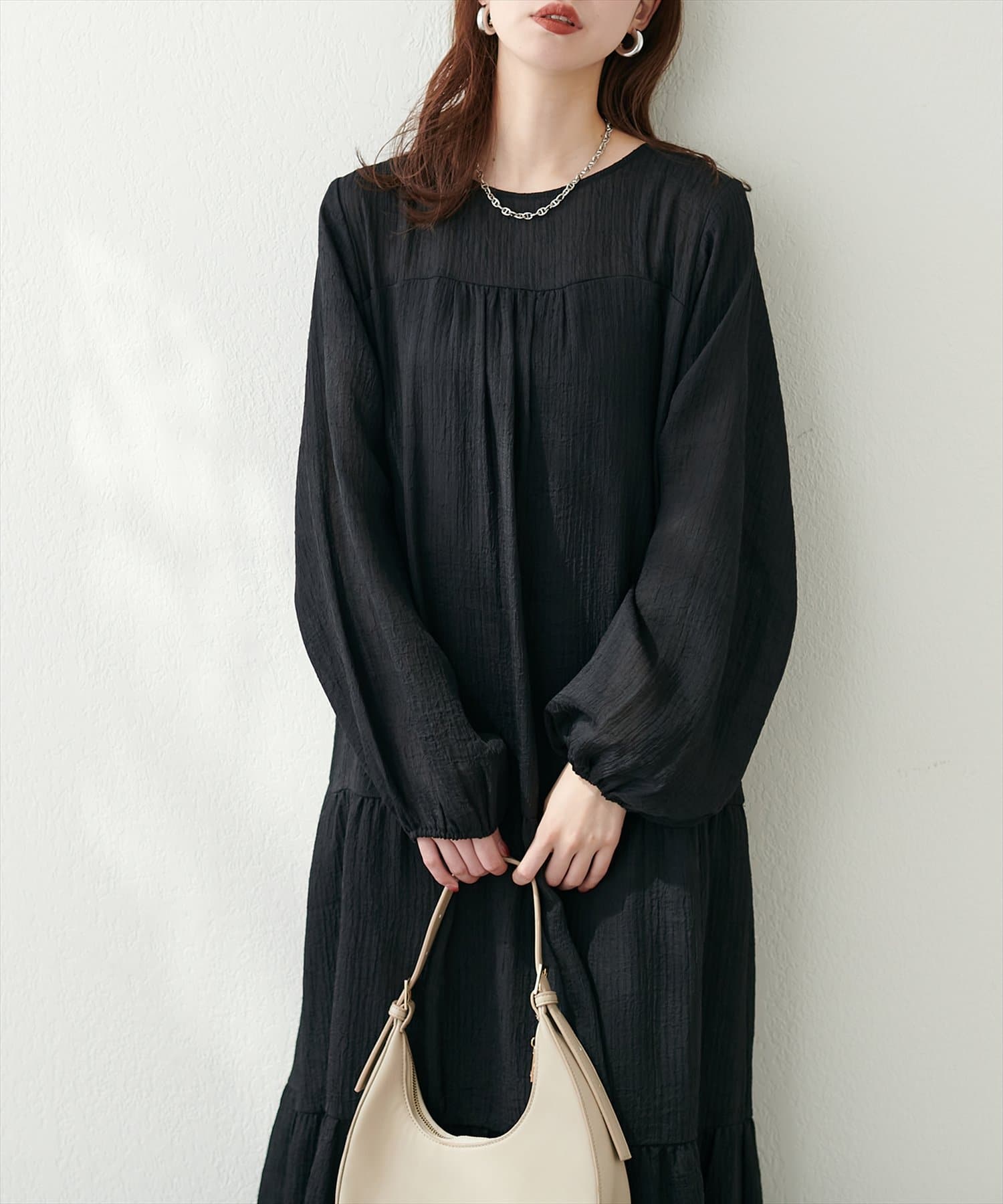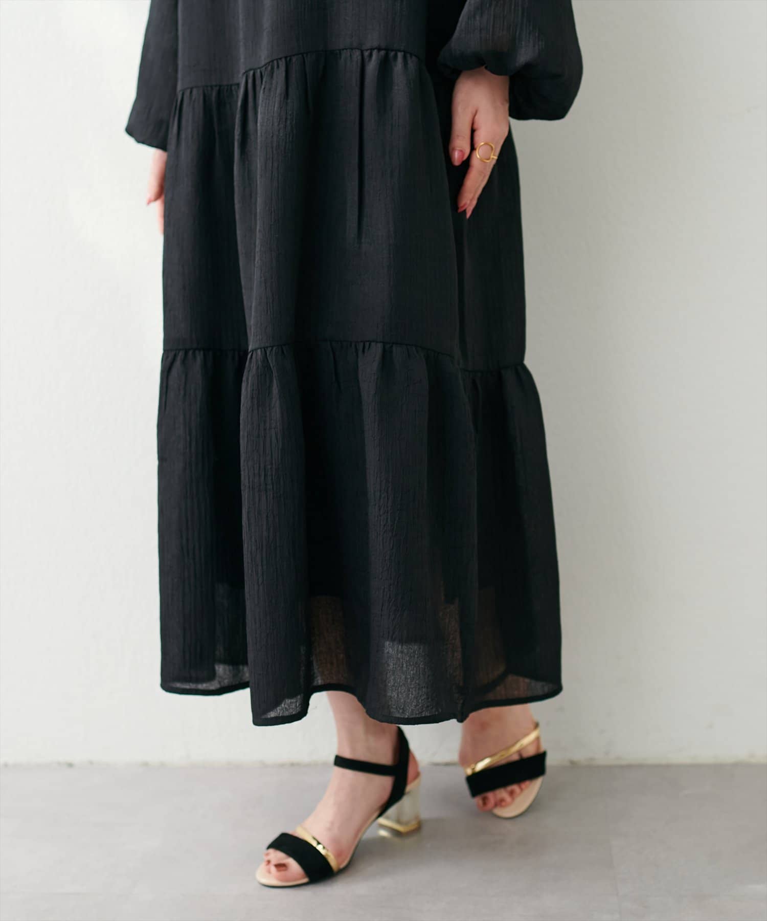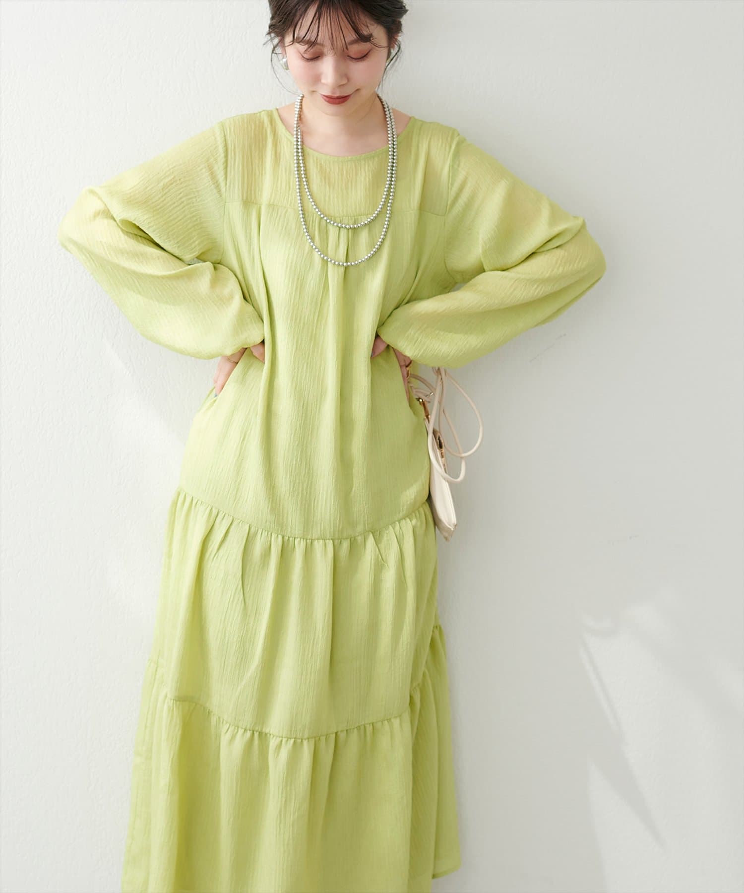WEB限定サイズあり / シワ加工ティアードワンピース