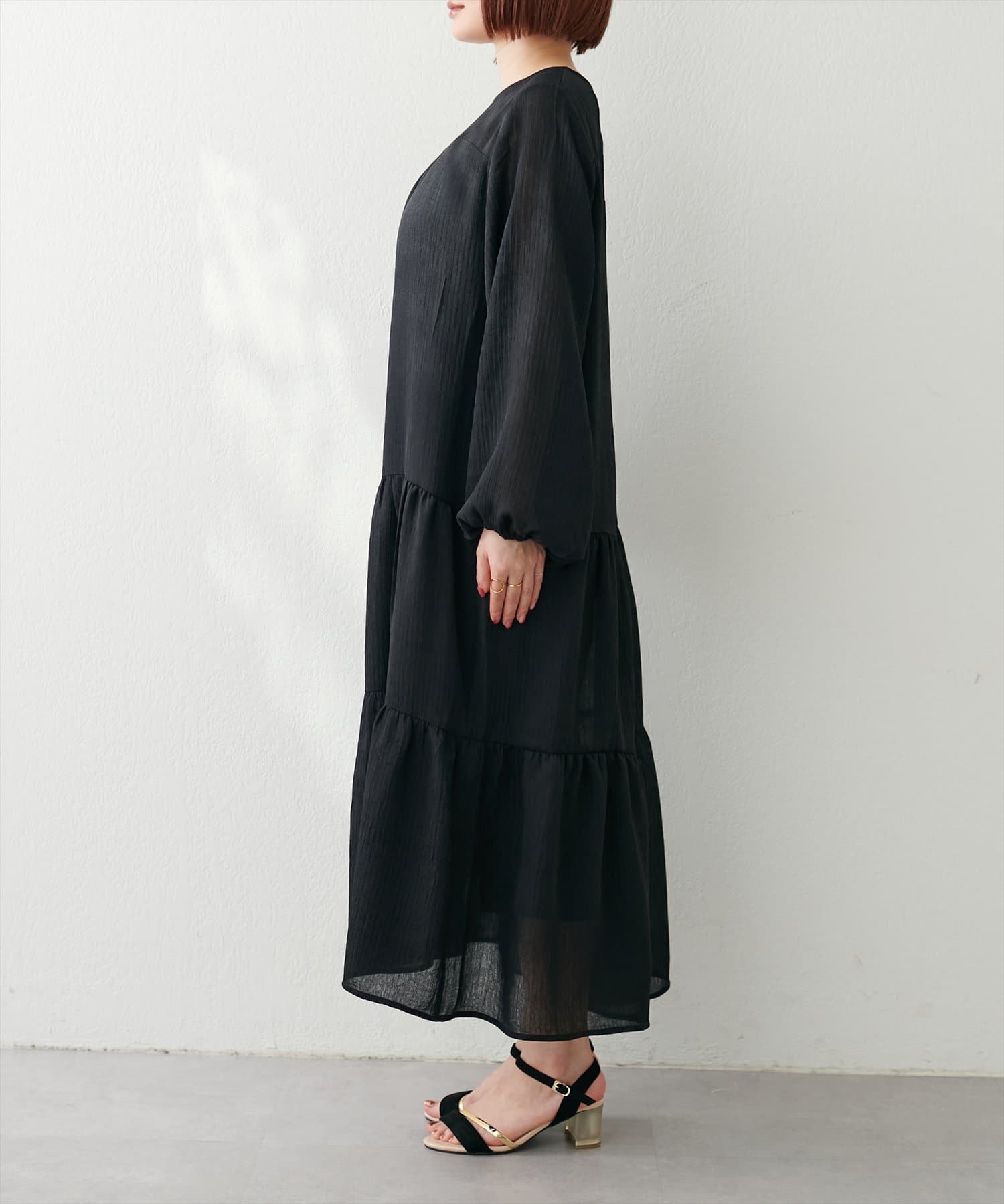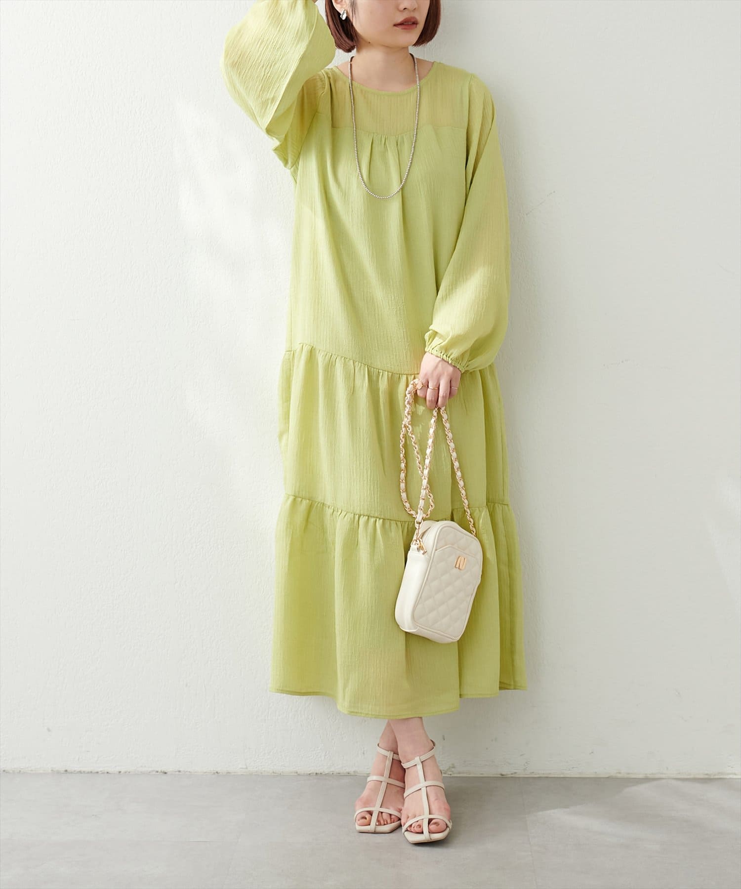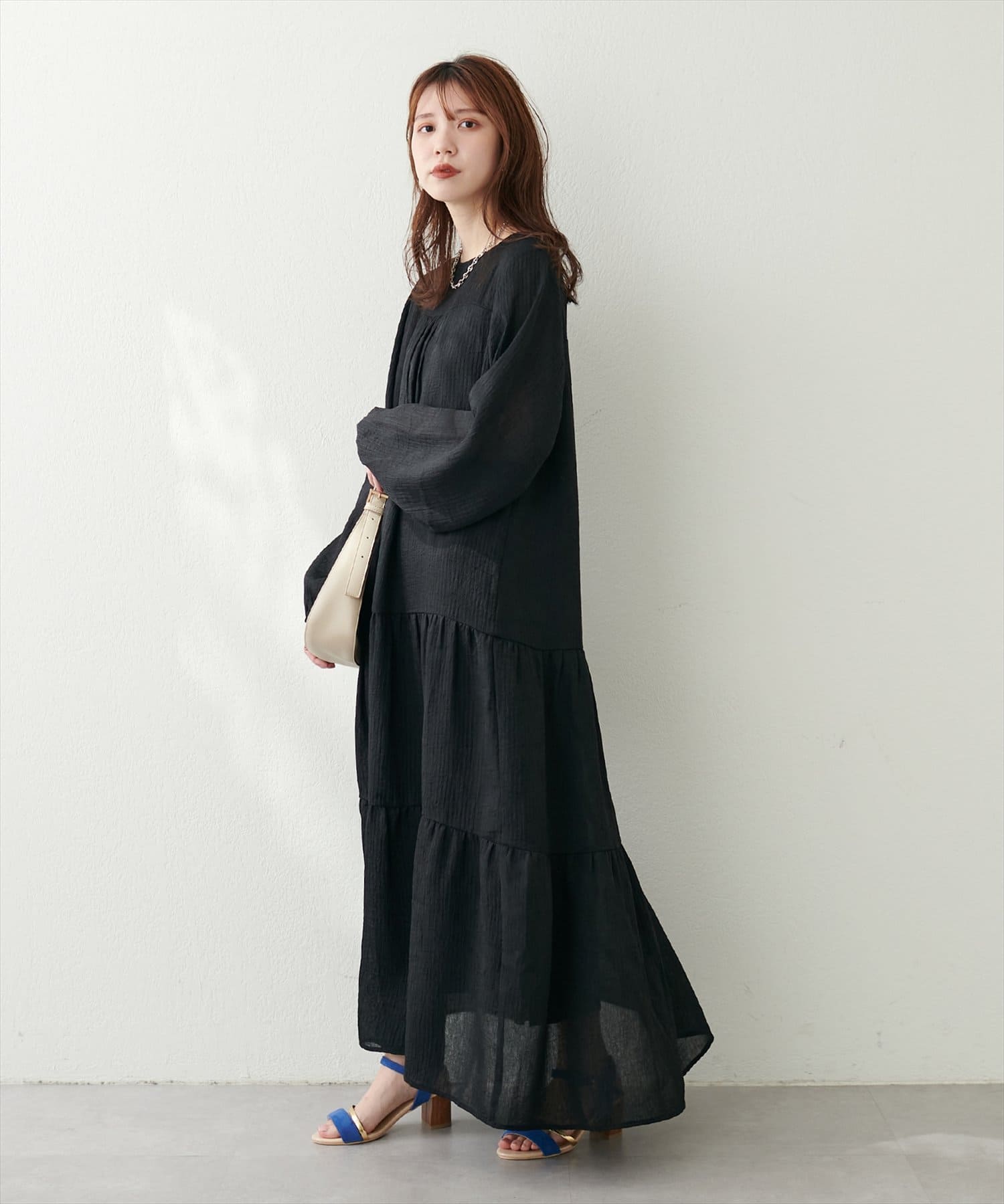 WEB限定サイズあり / シワ加工ティアードワンピース