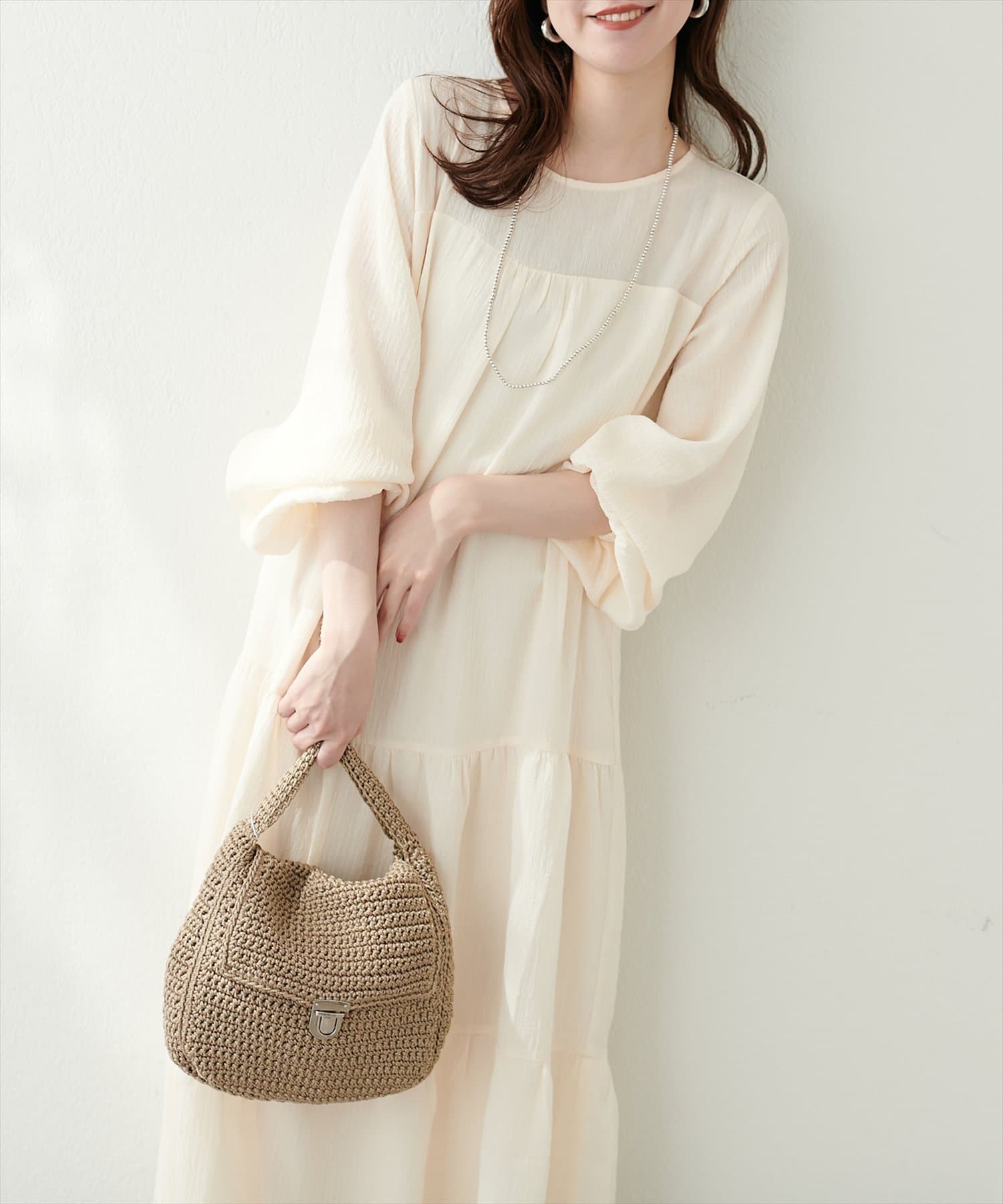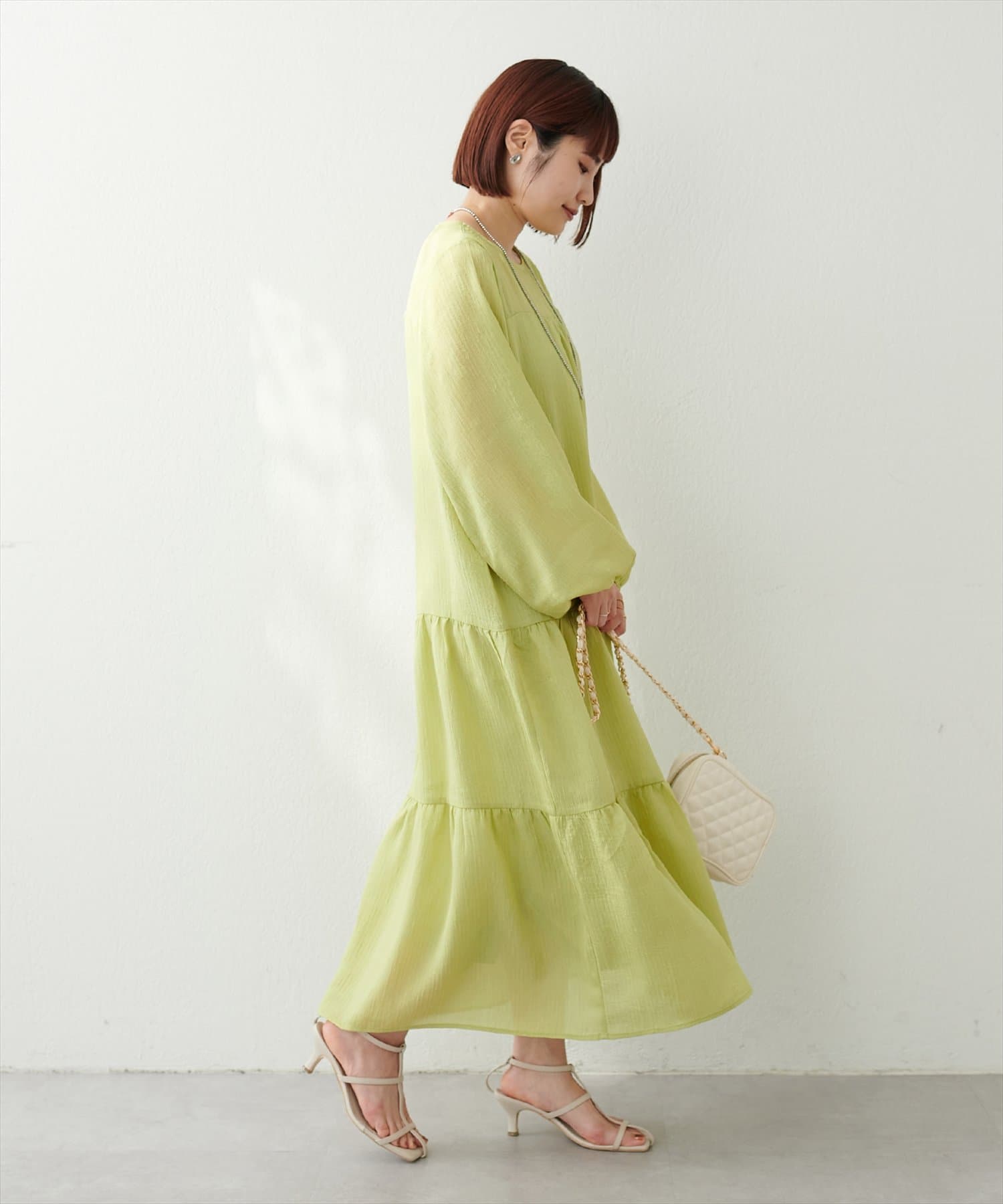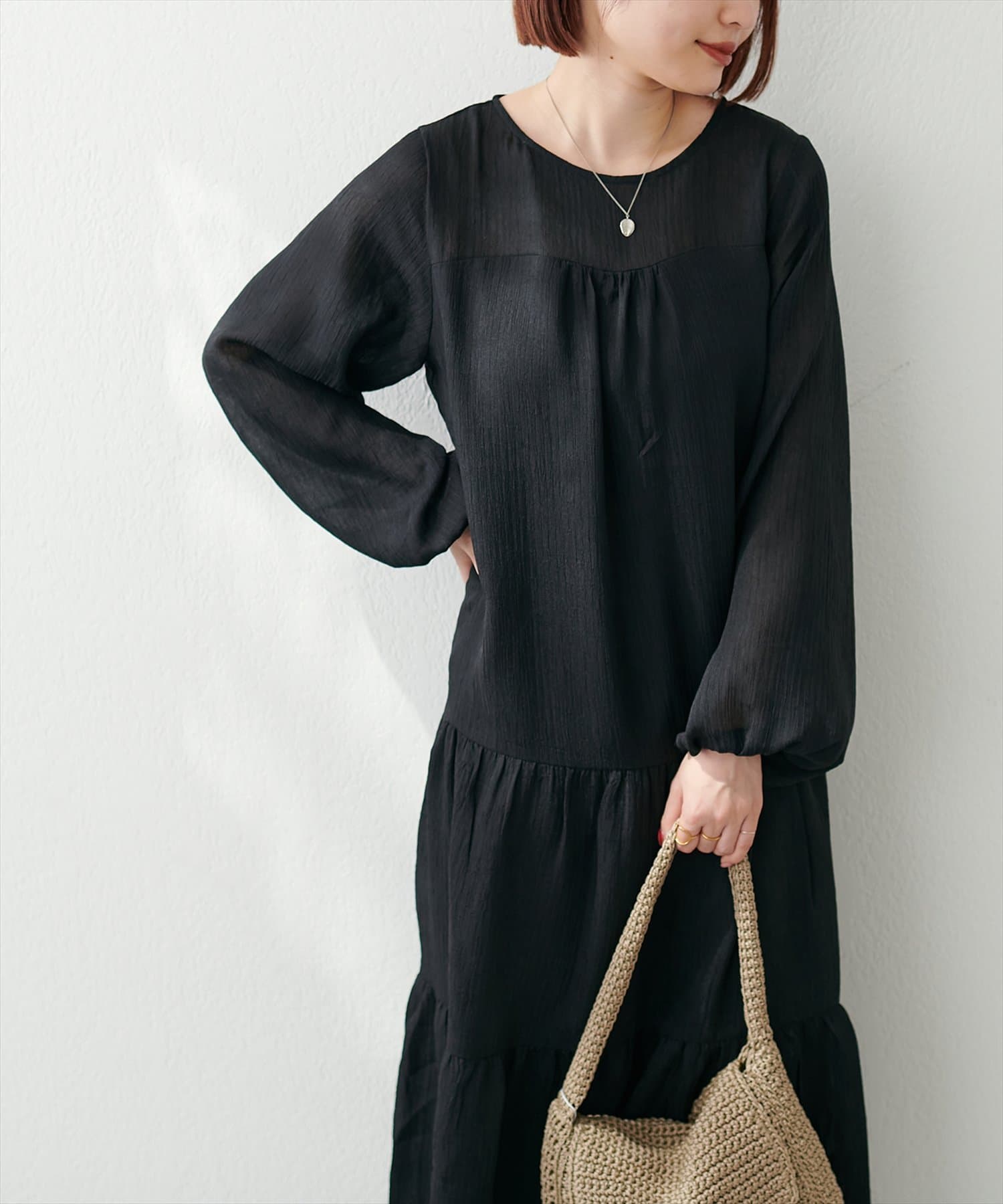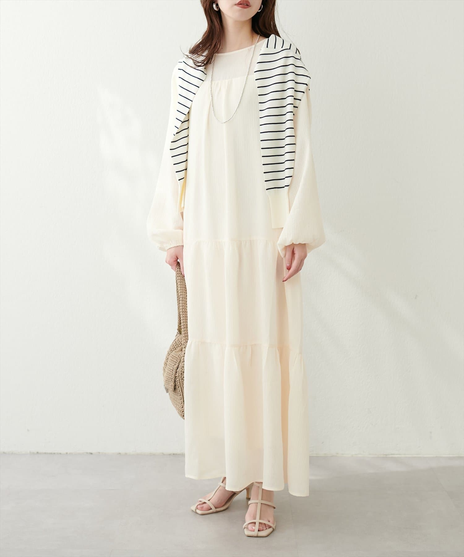 WEB限定サイズあり / シワ加工ティアードワンピース