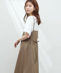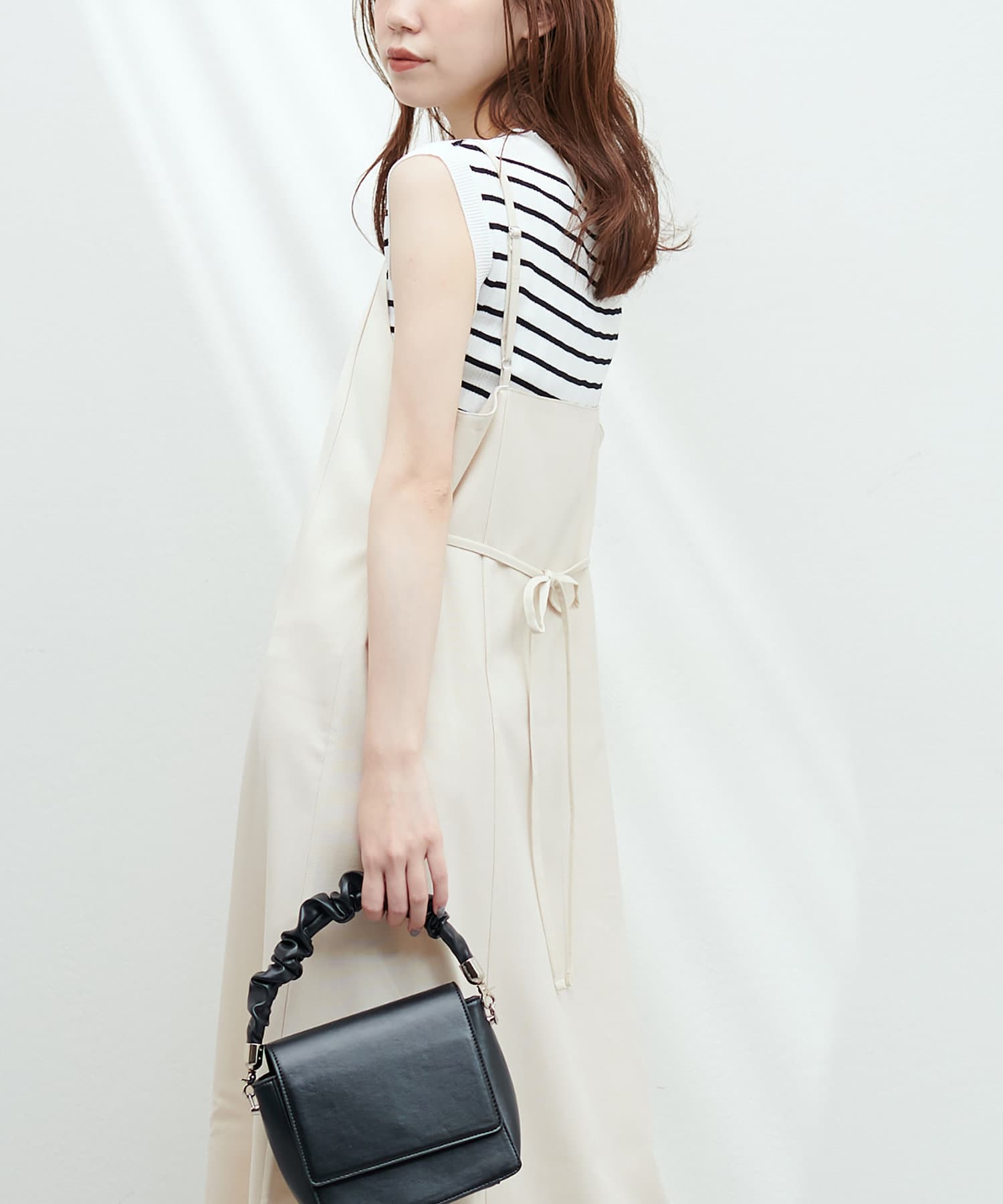 身体のラインを拾いにくくすっきりとしたデザインで、サイドに付いているリボンでウエストマークすればスタイルアップ効果も期待できます。