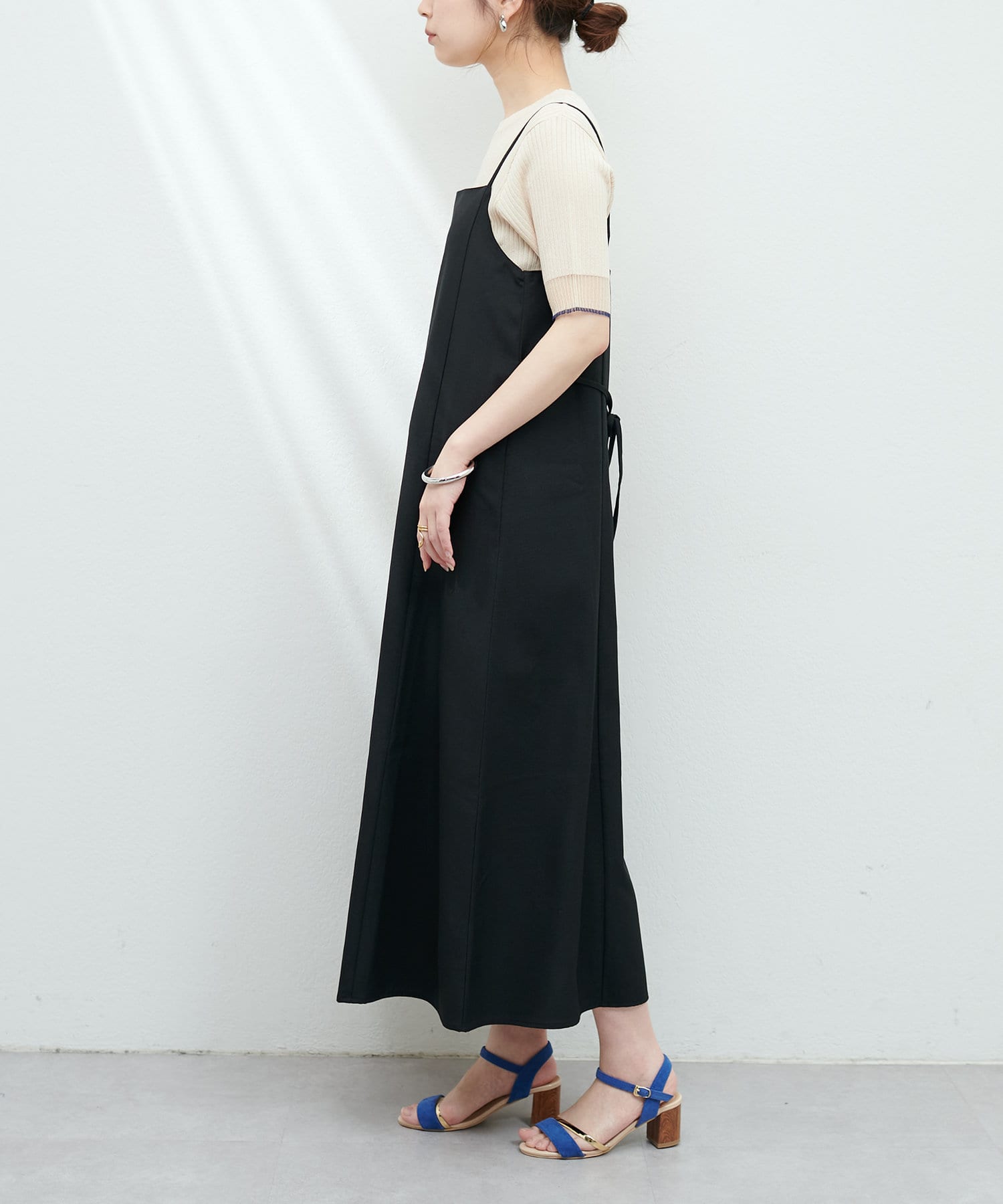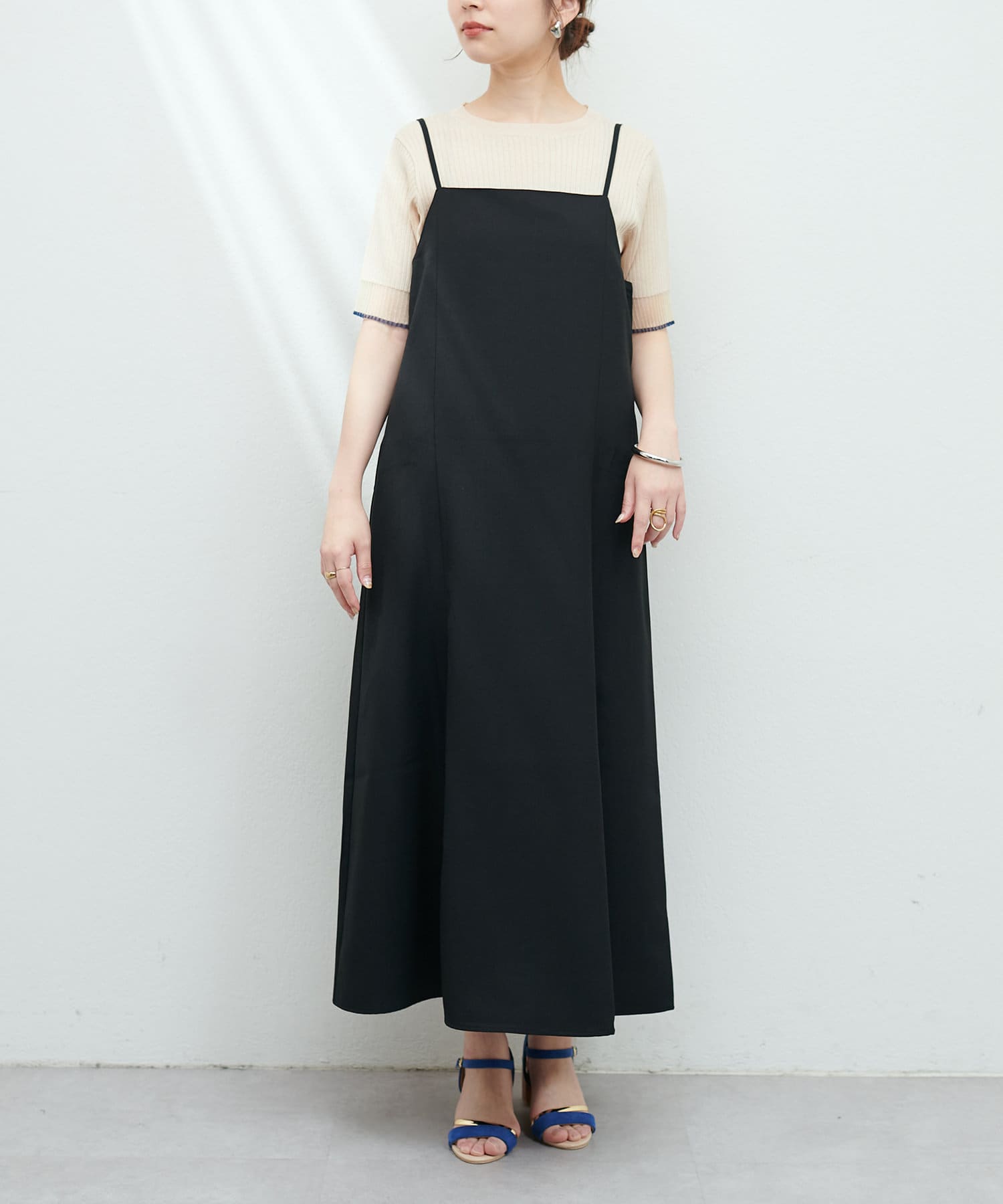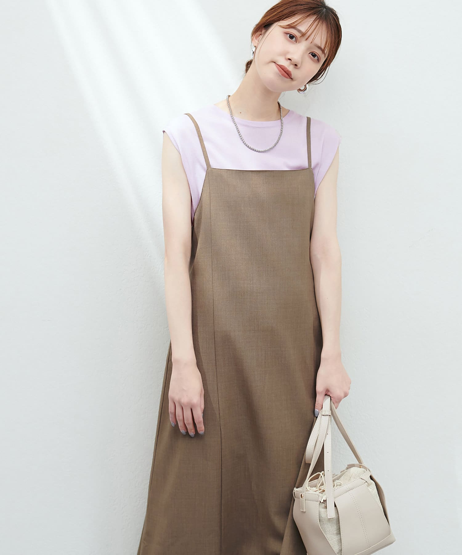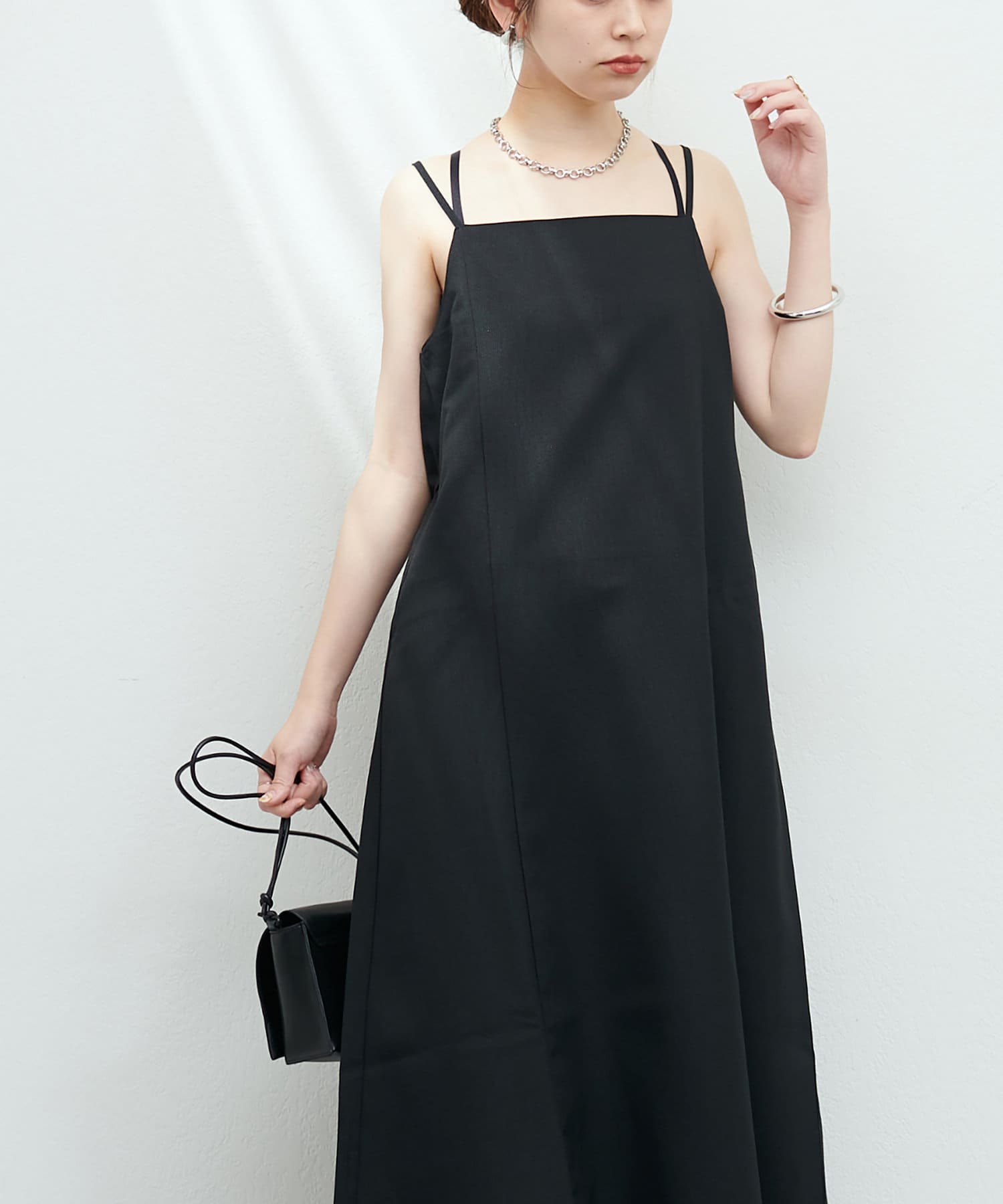 華奢なストラップがフェミニンな印象のシンプルなキャミワンピース。