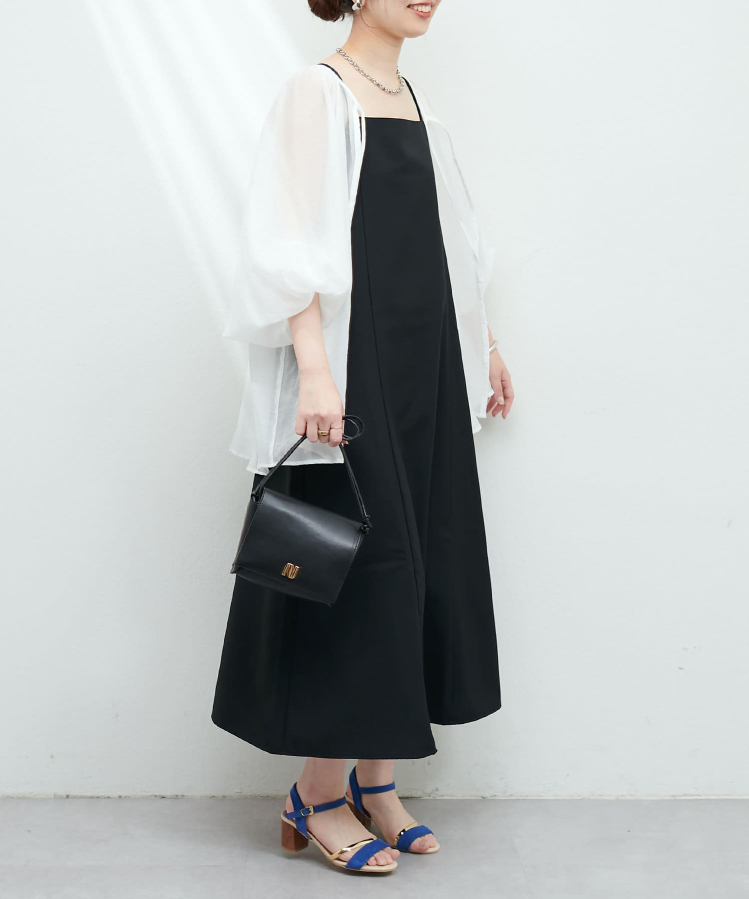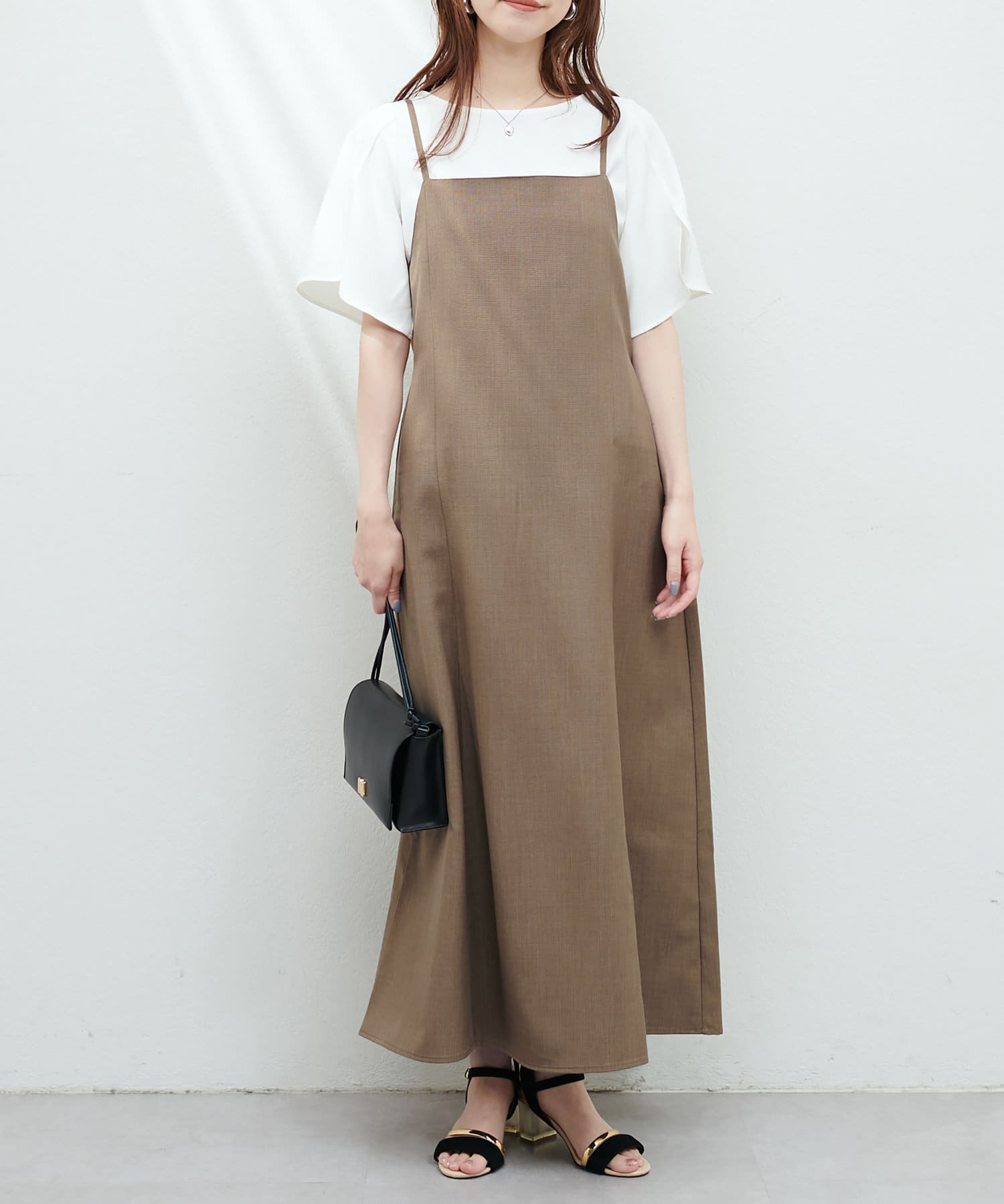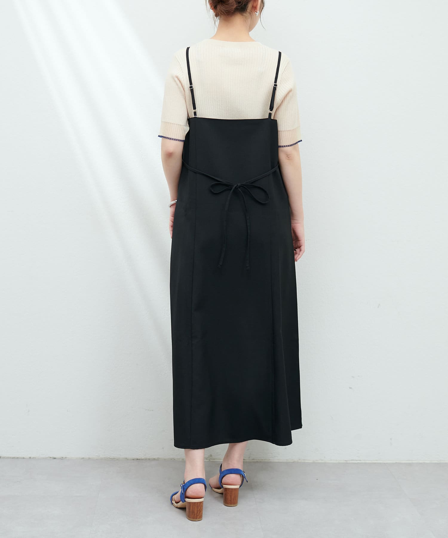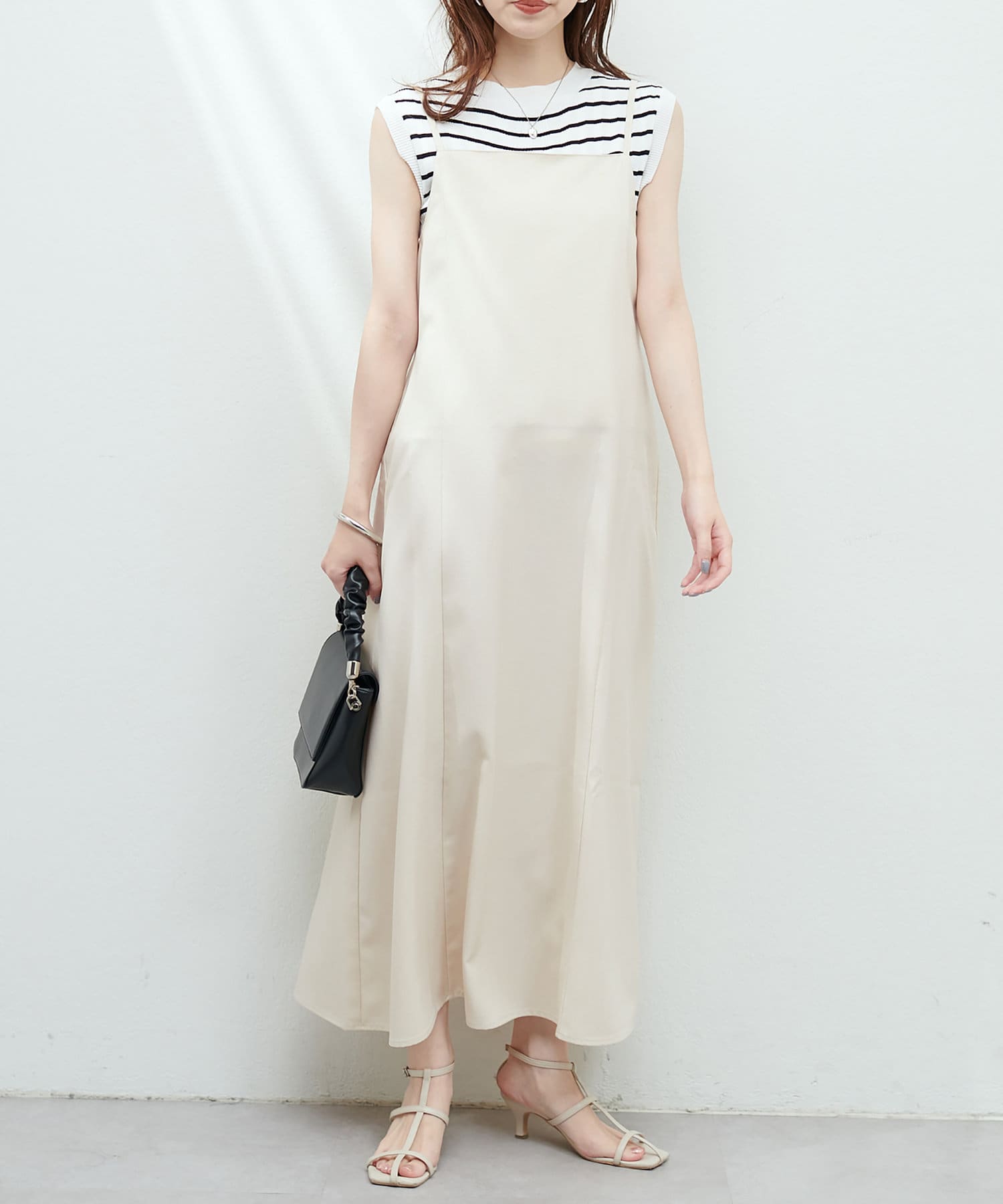 華奢なストラップがフェミニンな印象のシンプルなキャミワンピース。