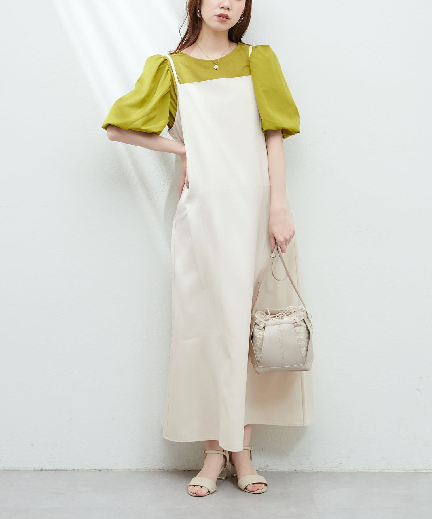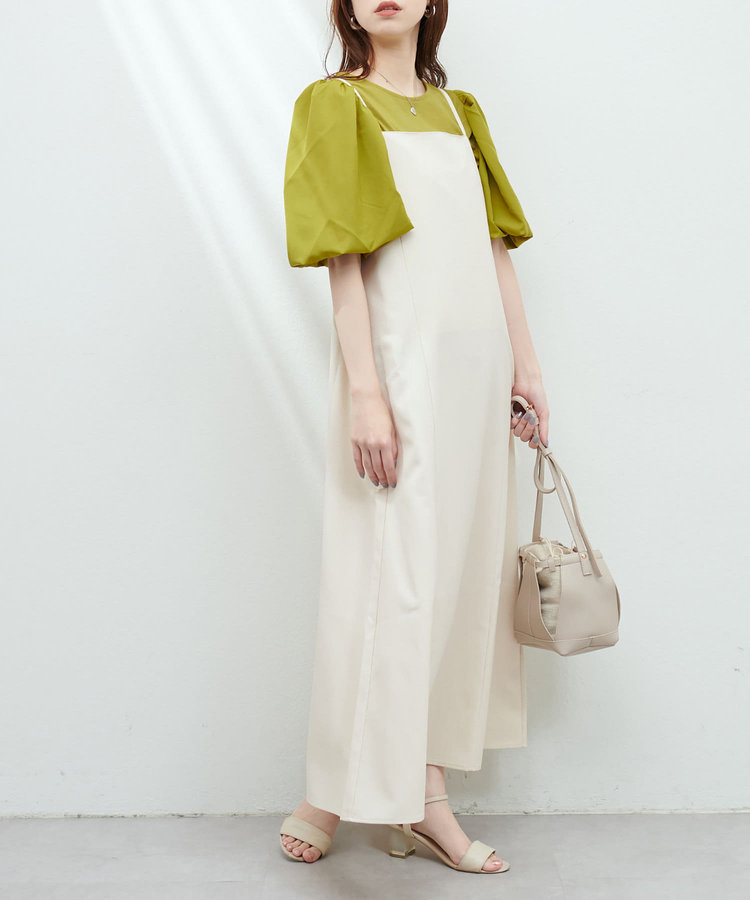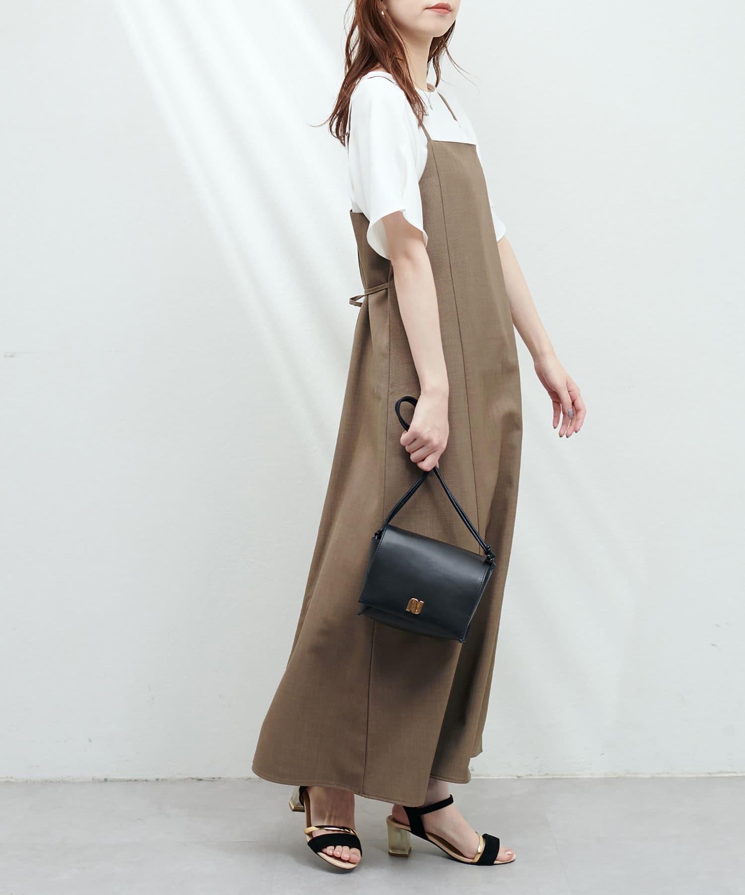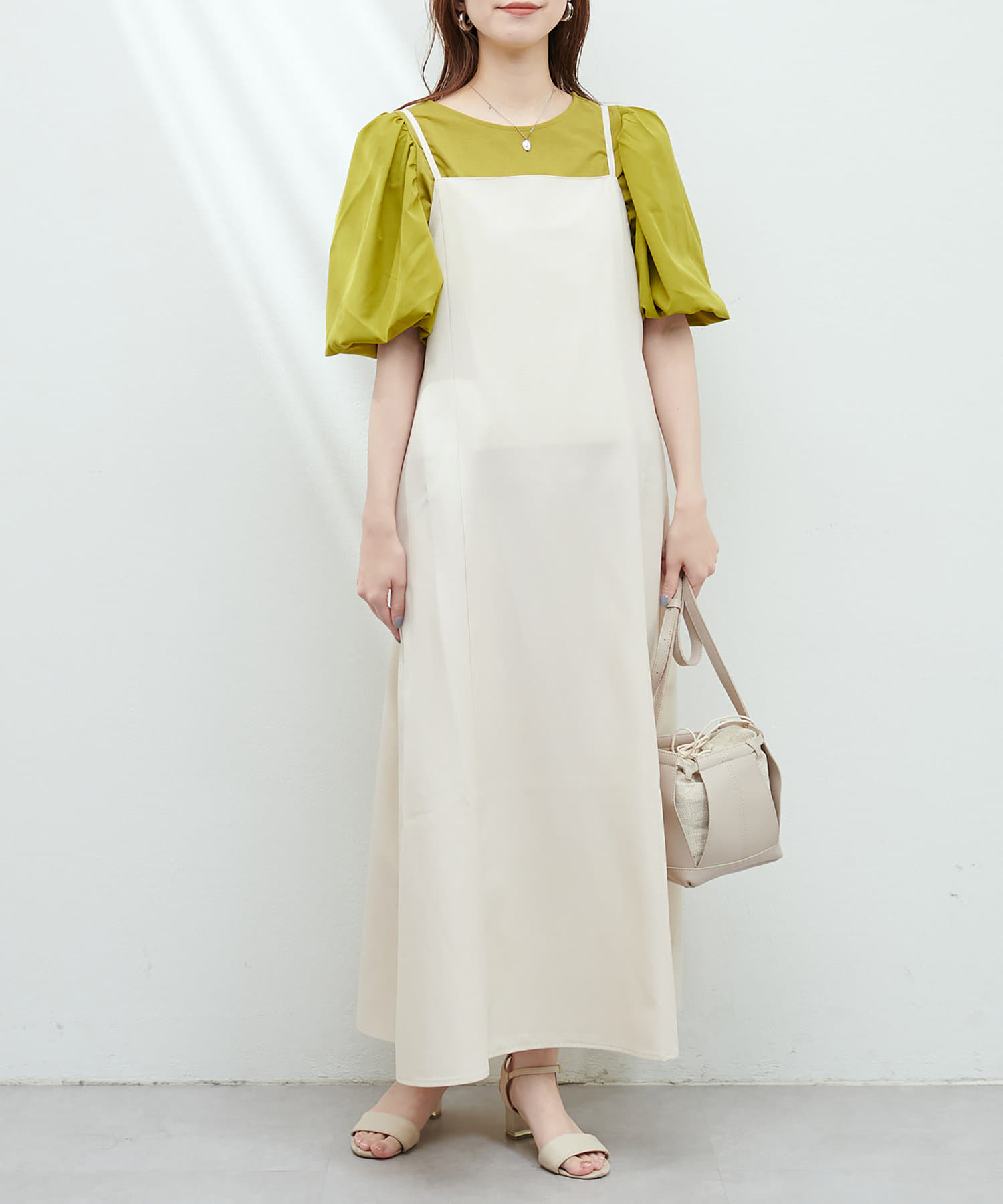 華奢なストラップがフェミニンな印象のシンプルなキャミワンピース。