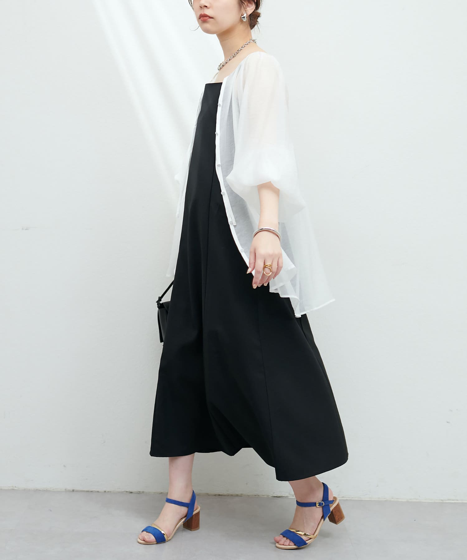 インナーにはトレンドのシアーカットソーやブラウス、Tシャツなどどんなトップスを合わせても好相性です。