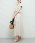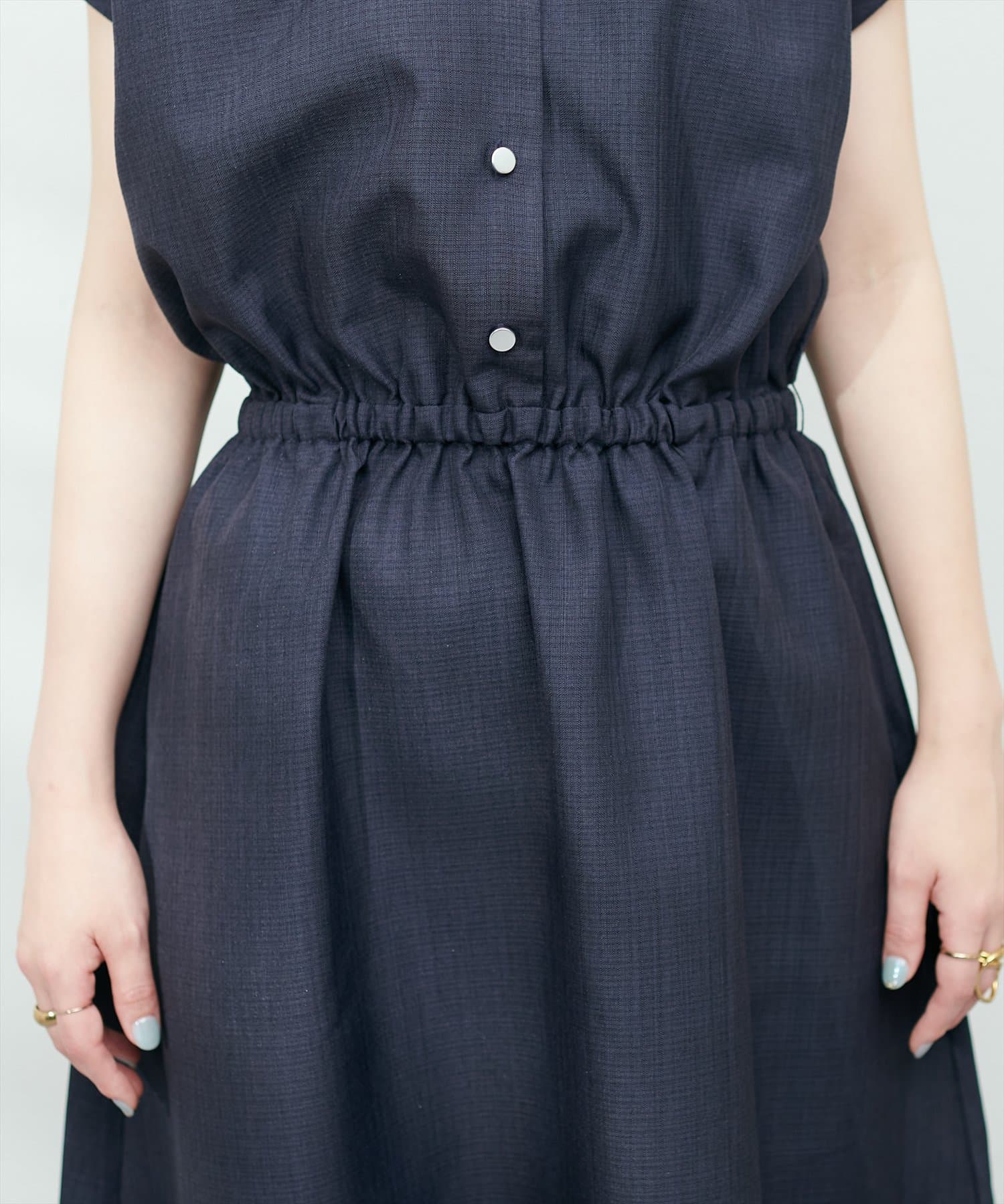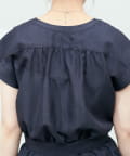 高めの位置のウエストは総ゴムのシャーリングになっており、たっぷりのギャザーで後ろ姿まで美しく洗練された印象に。