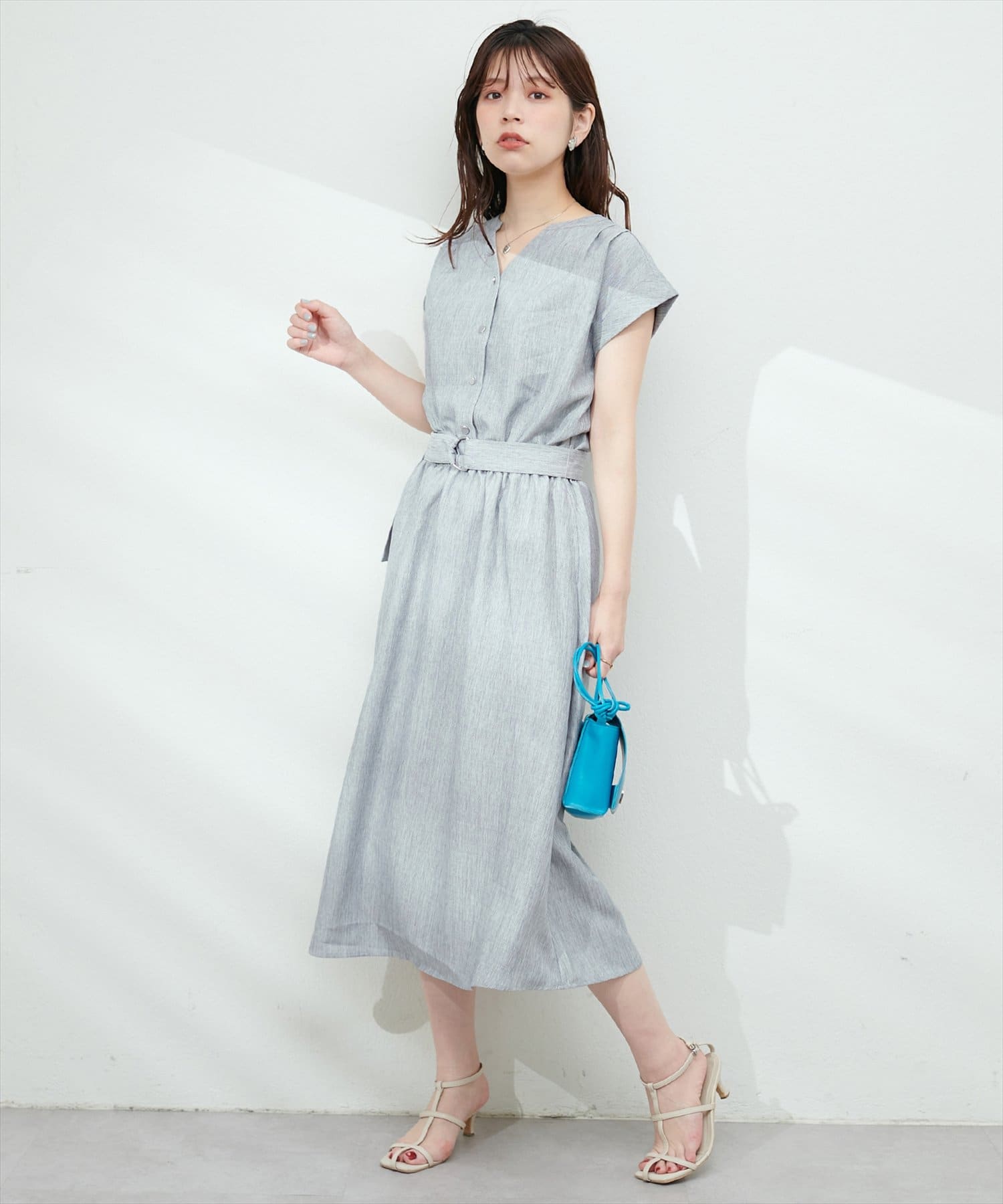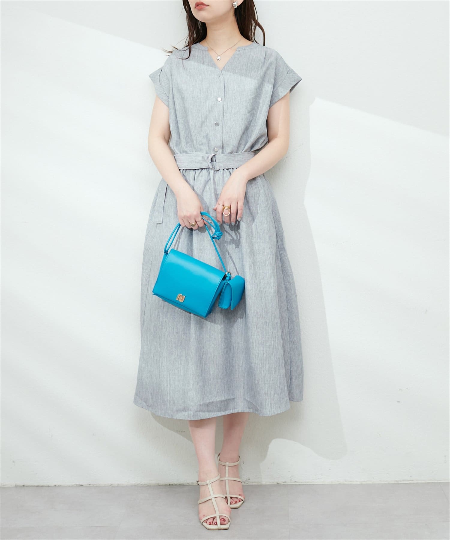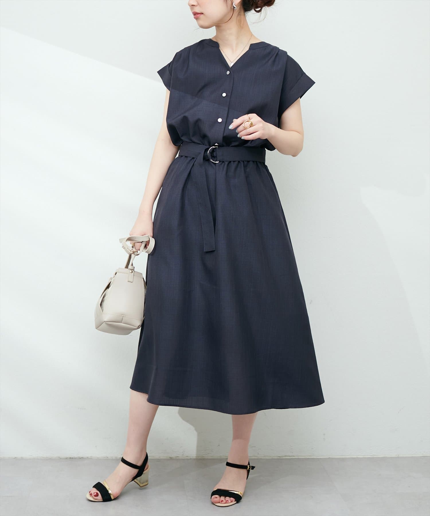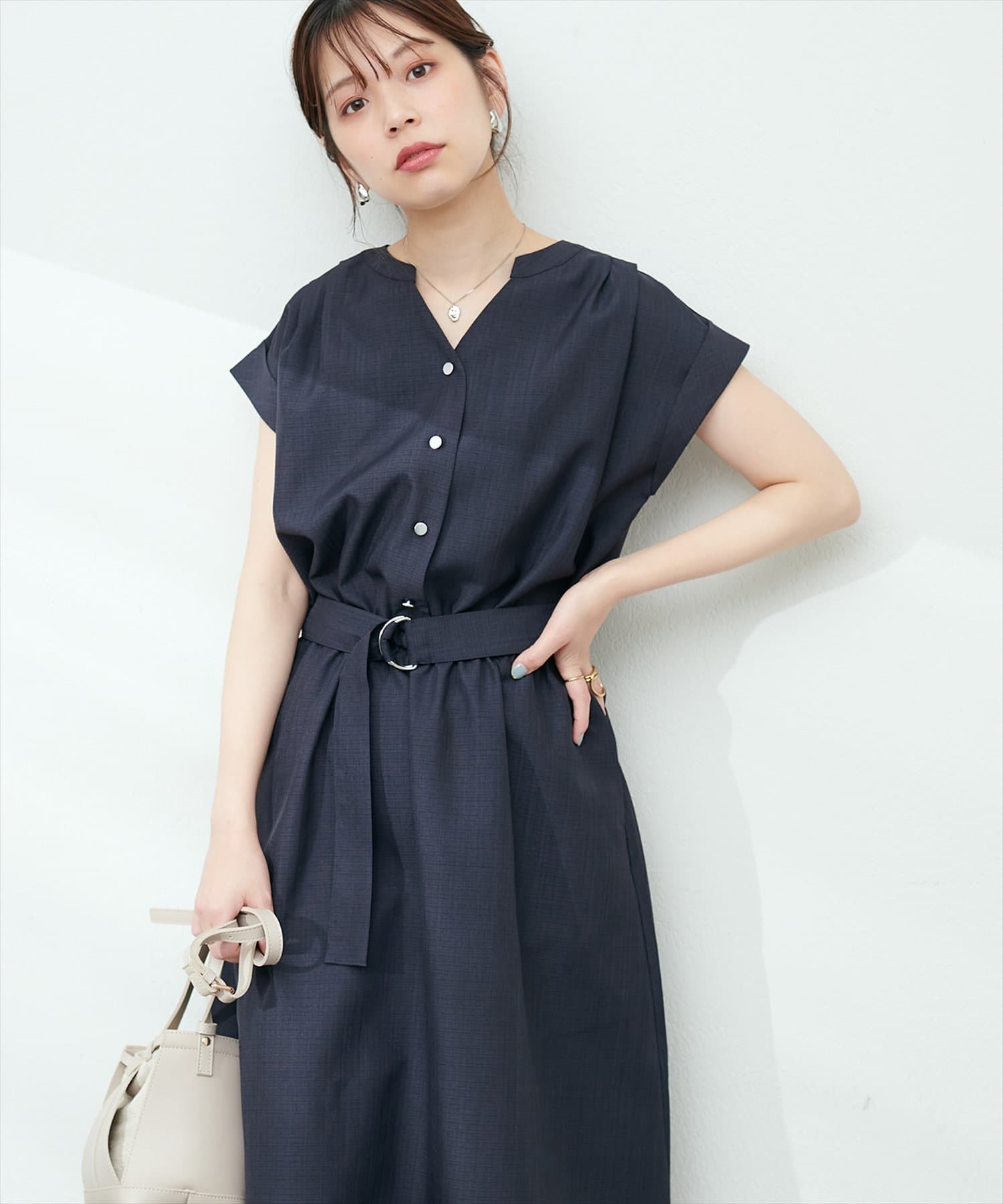 Vネックでお顔周りがすっきり見える、大人ディな雰囲気漂うワンピース。