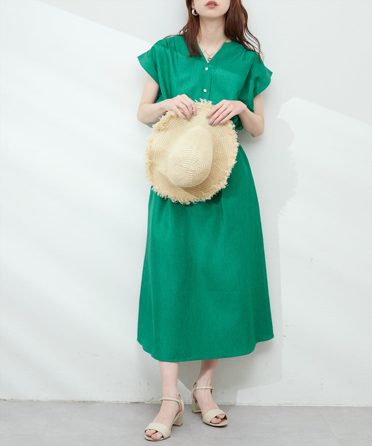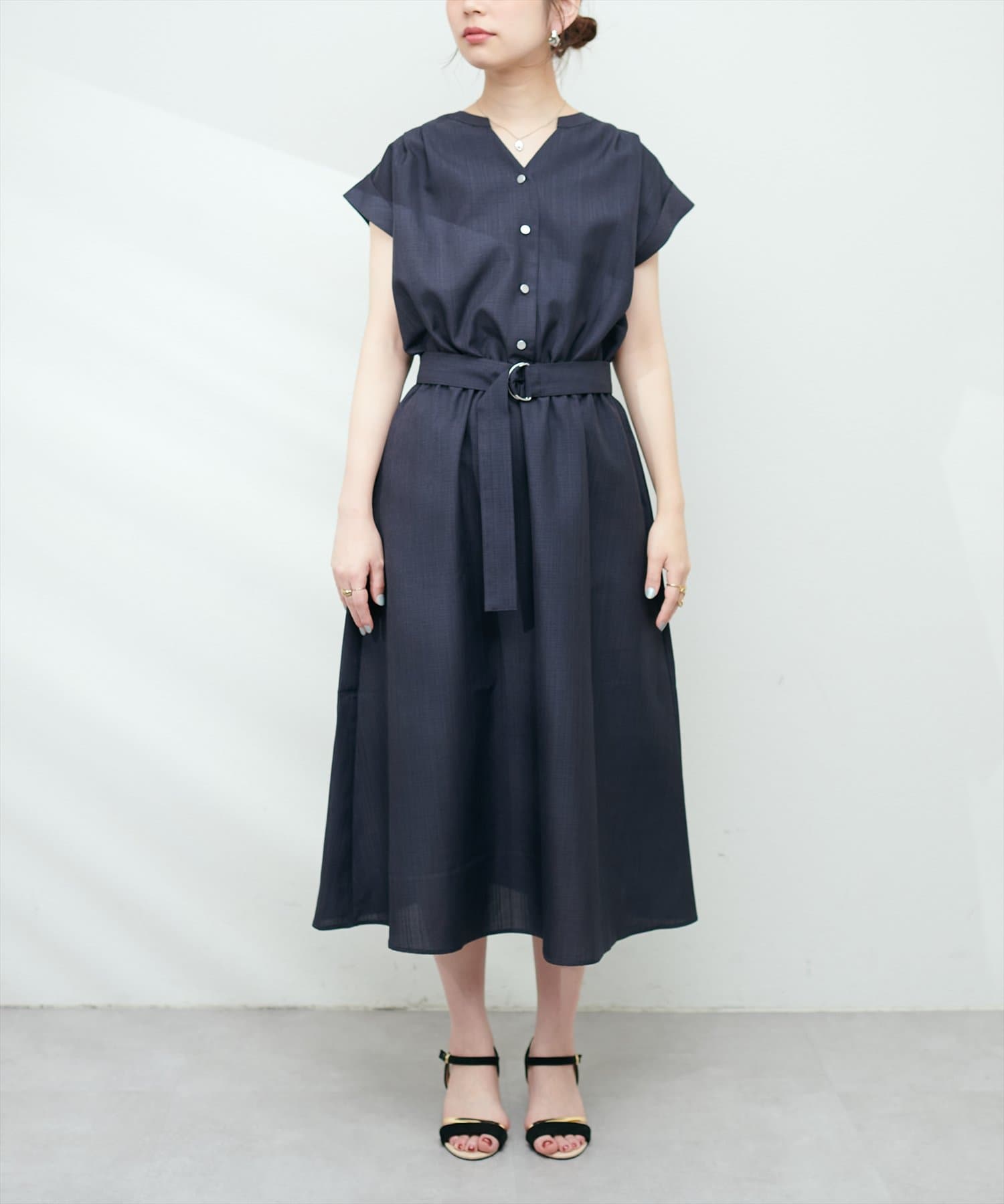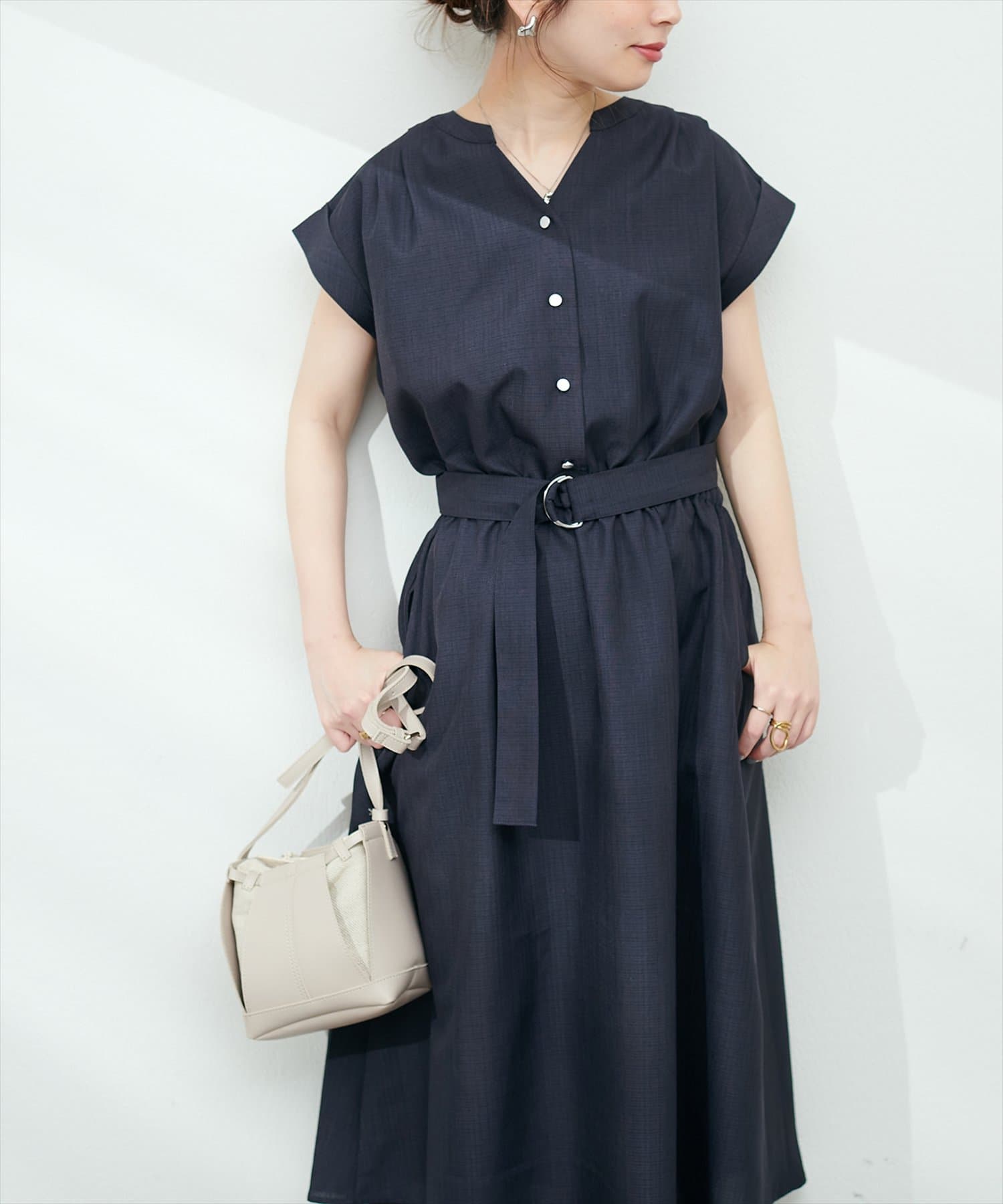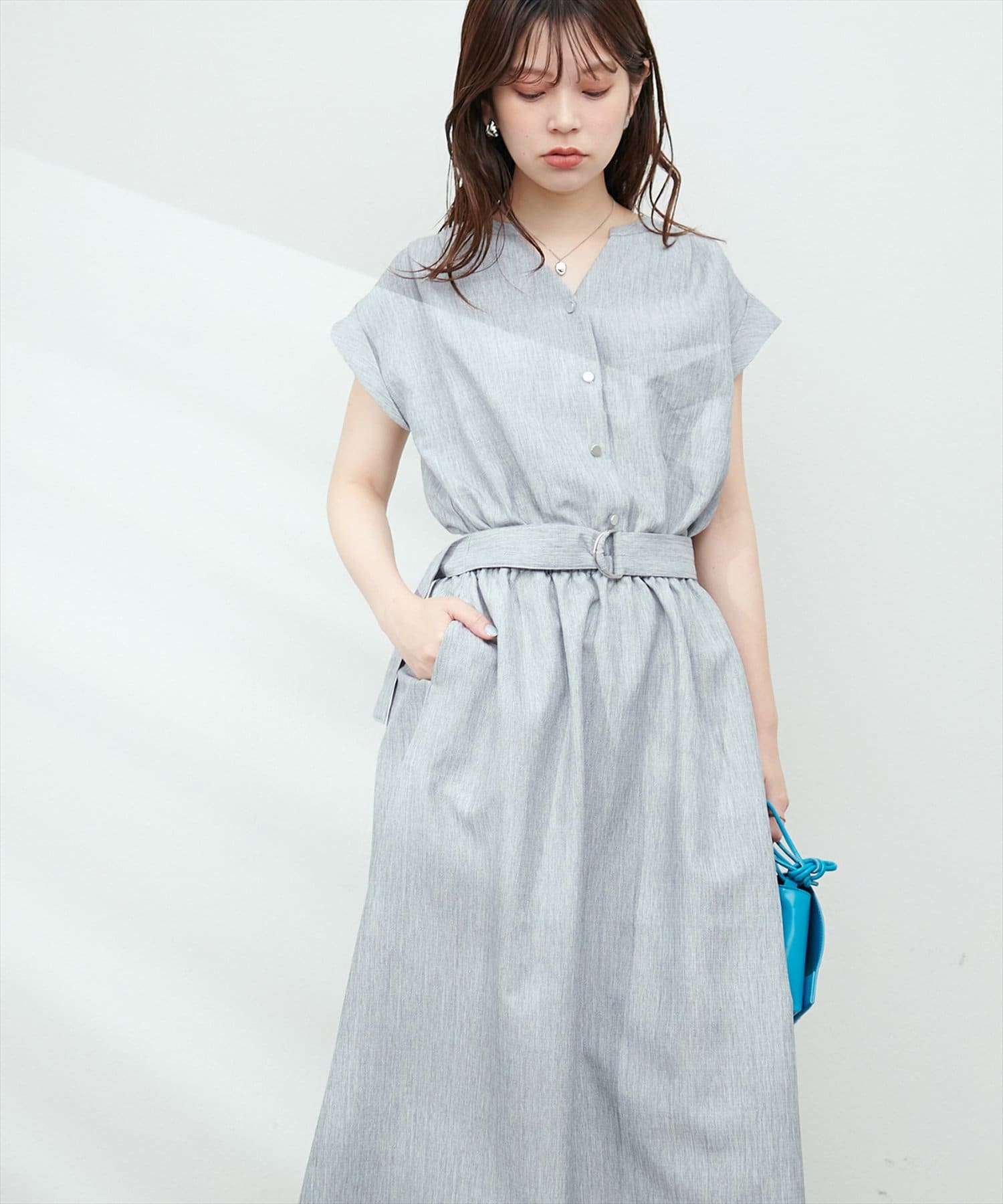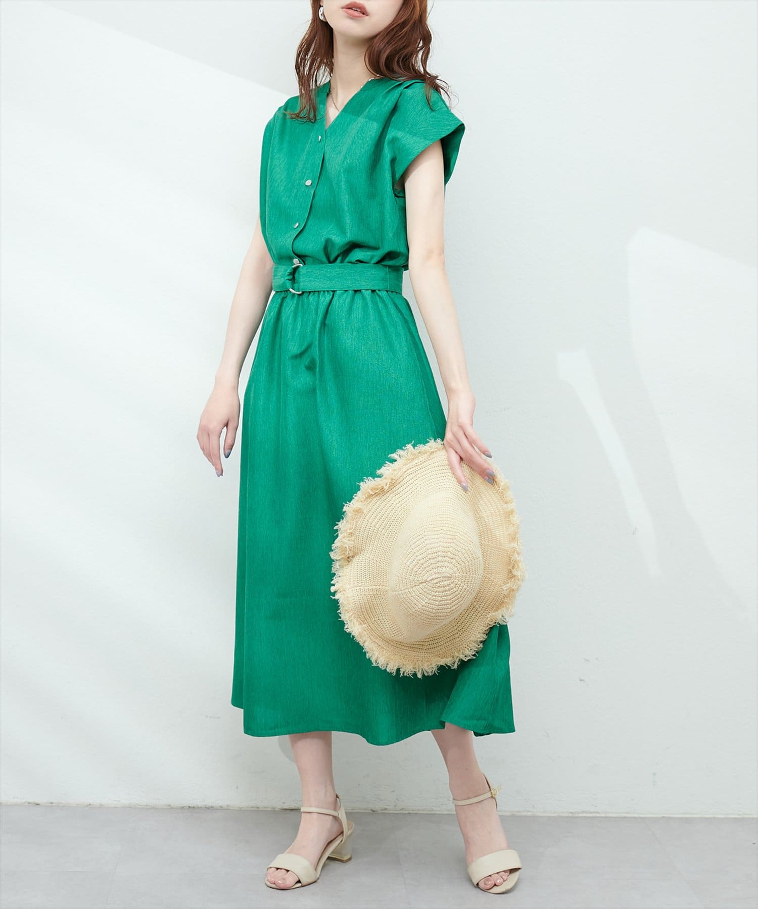Vネックでお顔周りがすっきり見える、大人ディな雰囲気漂うワンピース。