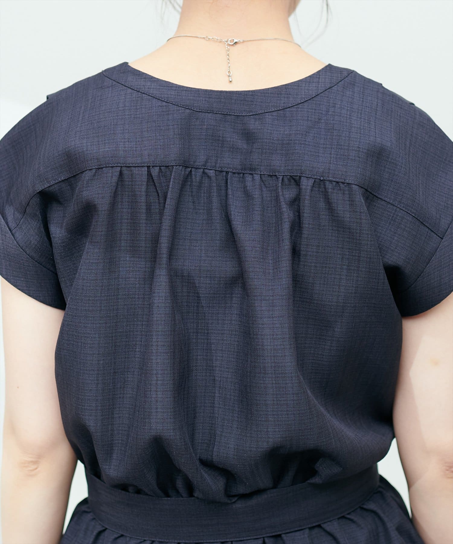 折り返したデザインのフレンチスリーブは、二の腕をさり気なく華奢に見せてくれます。