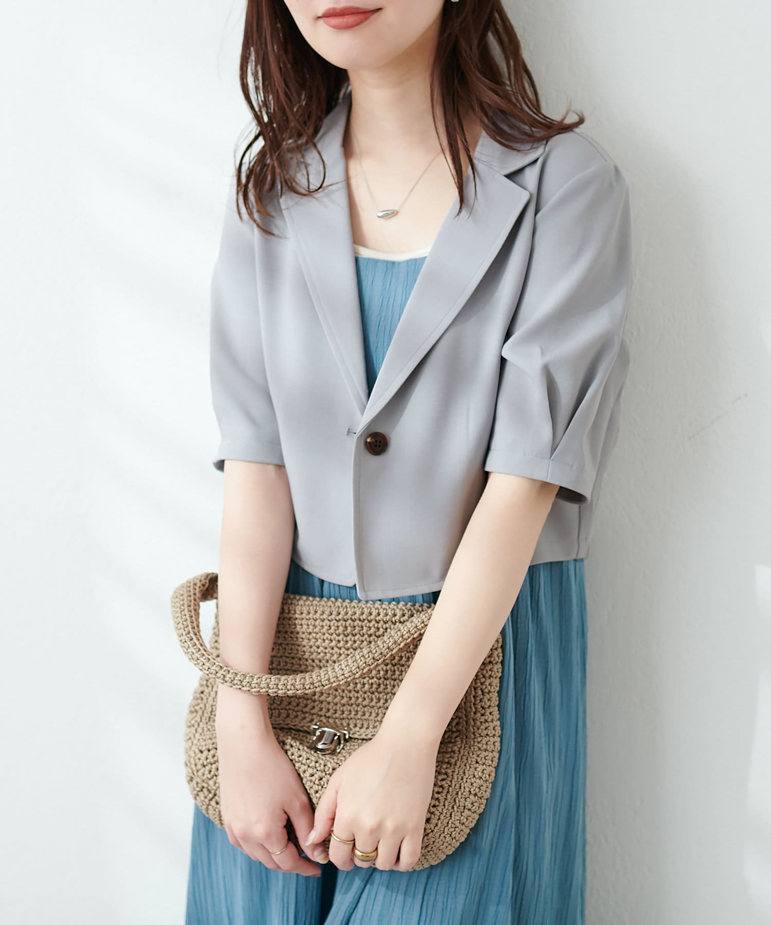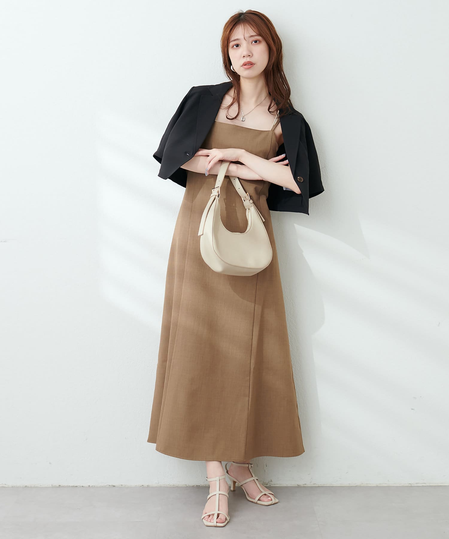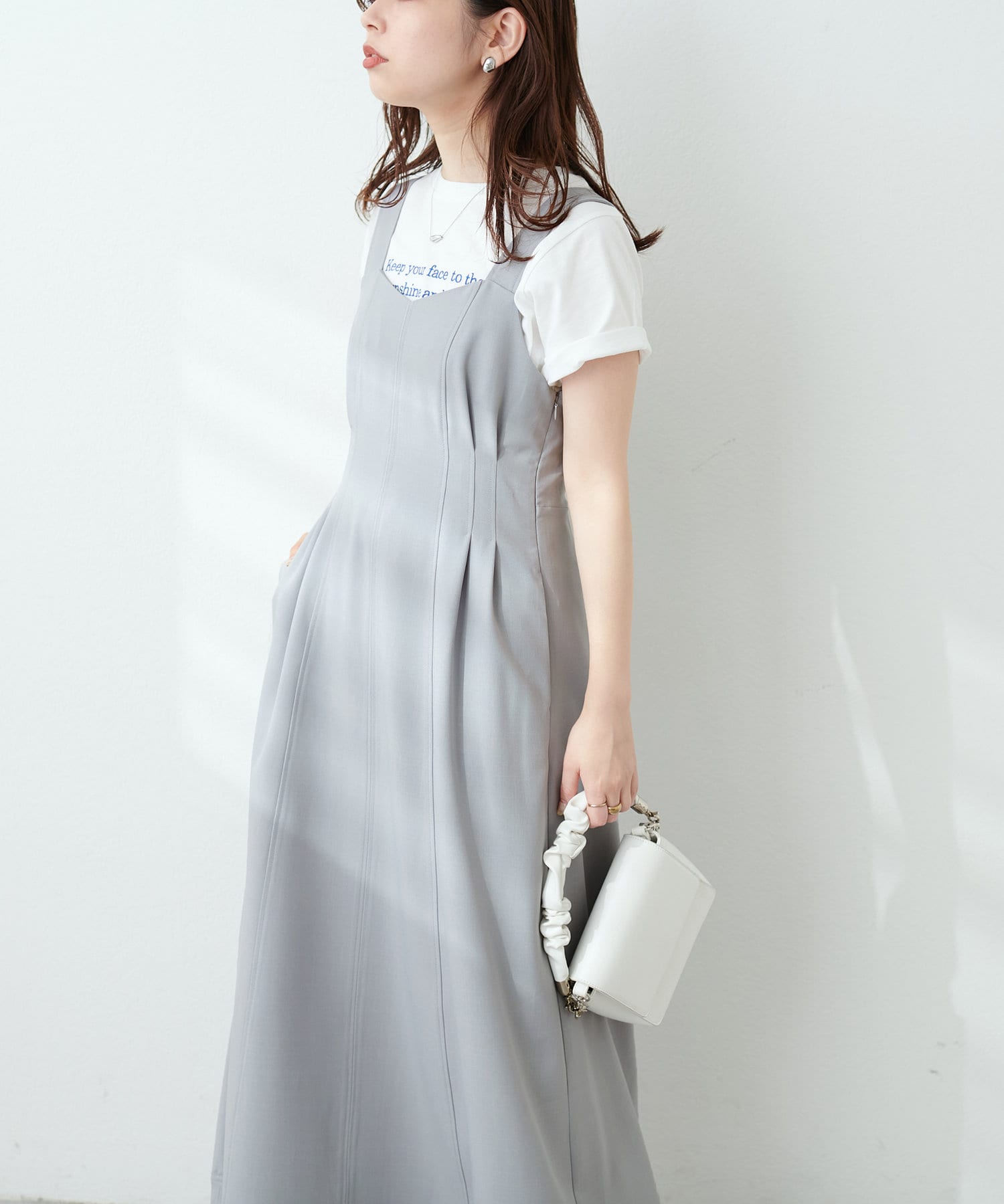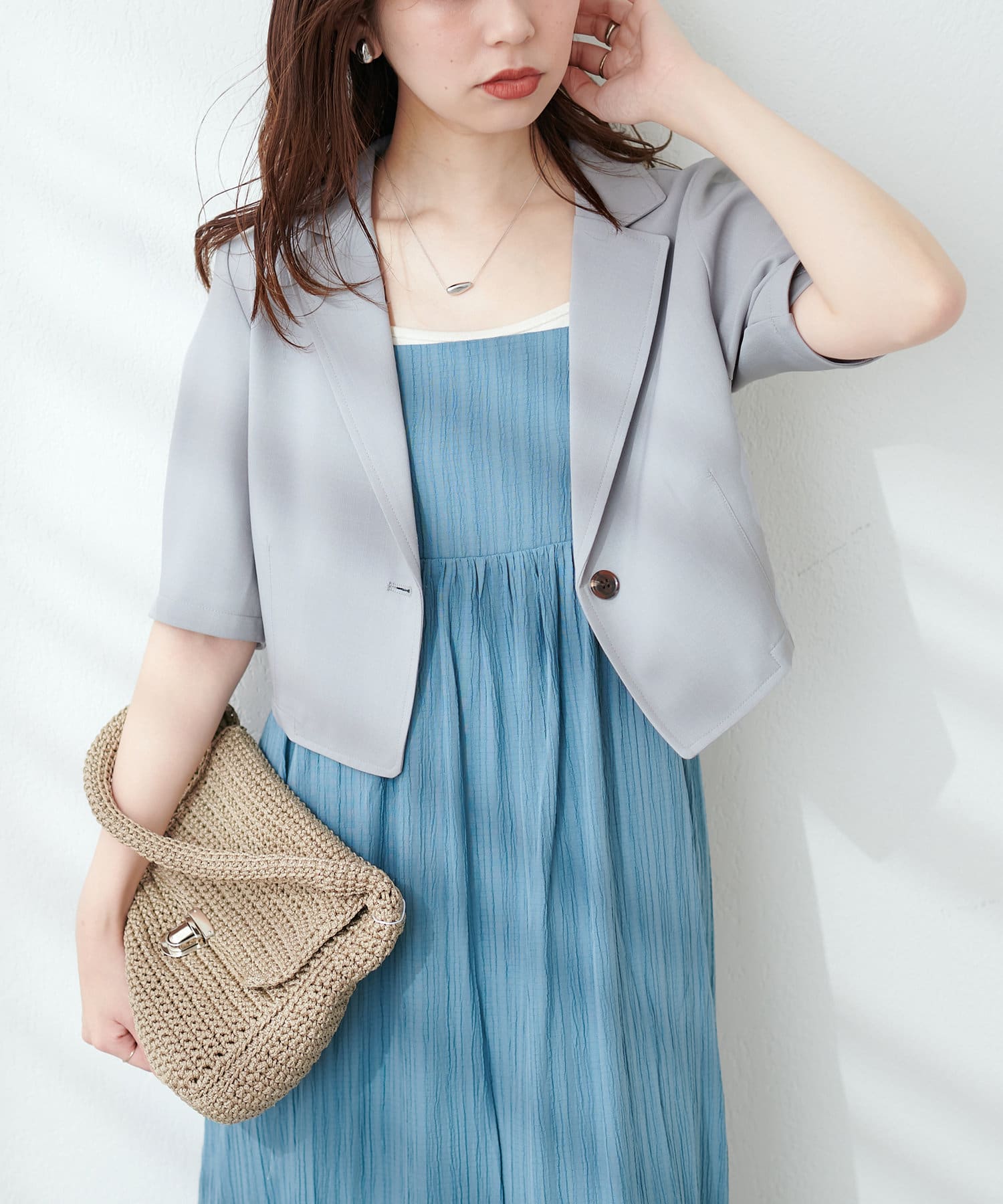 ワンピースはSETのジャケット以外に、旬のシアーカーデやシャツを羽織ったり、中にロゴTやシアーインナーを入れても◎