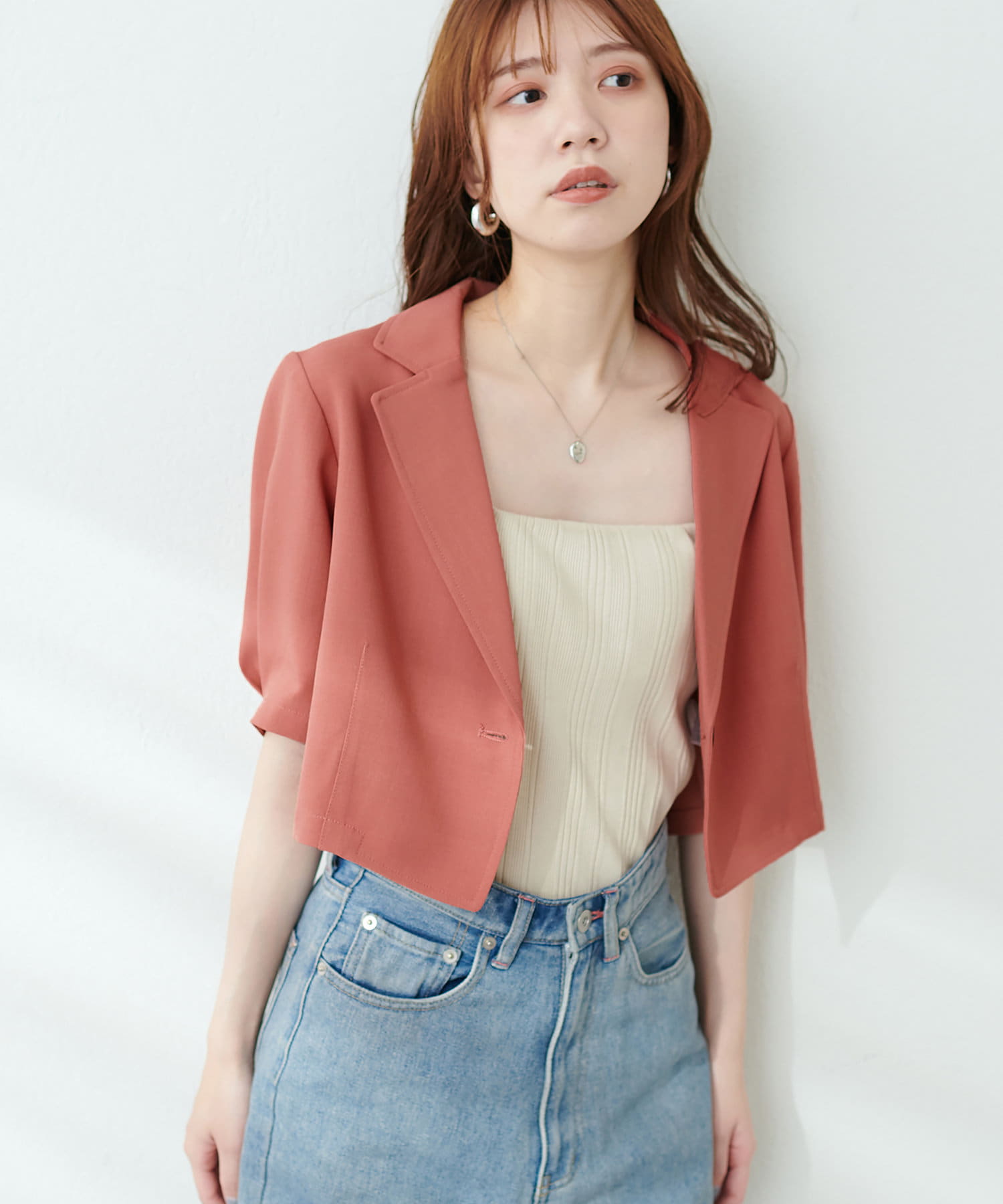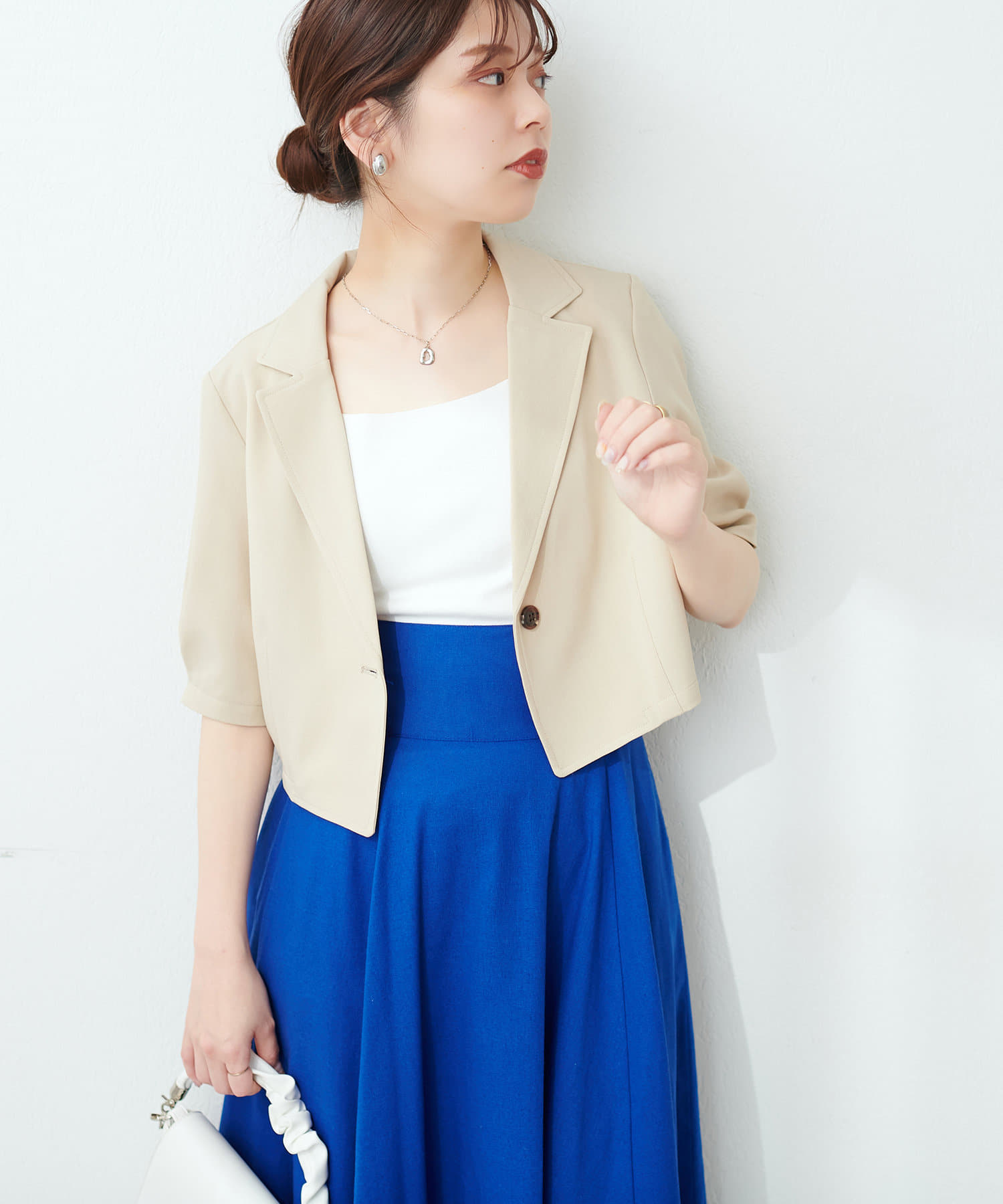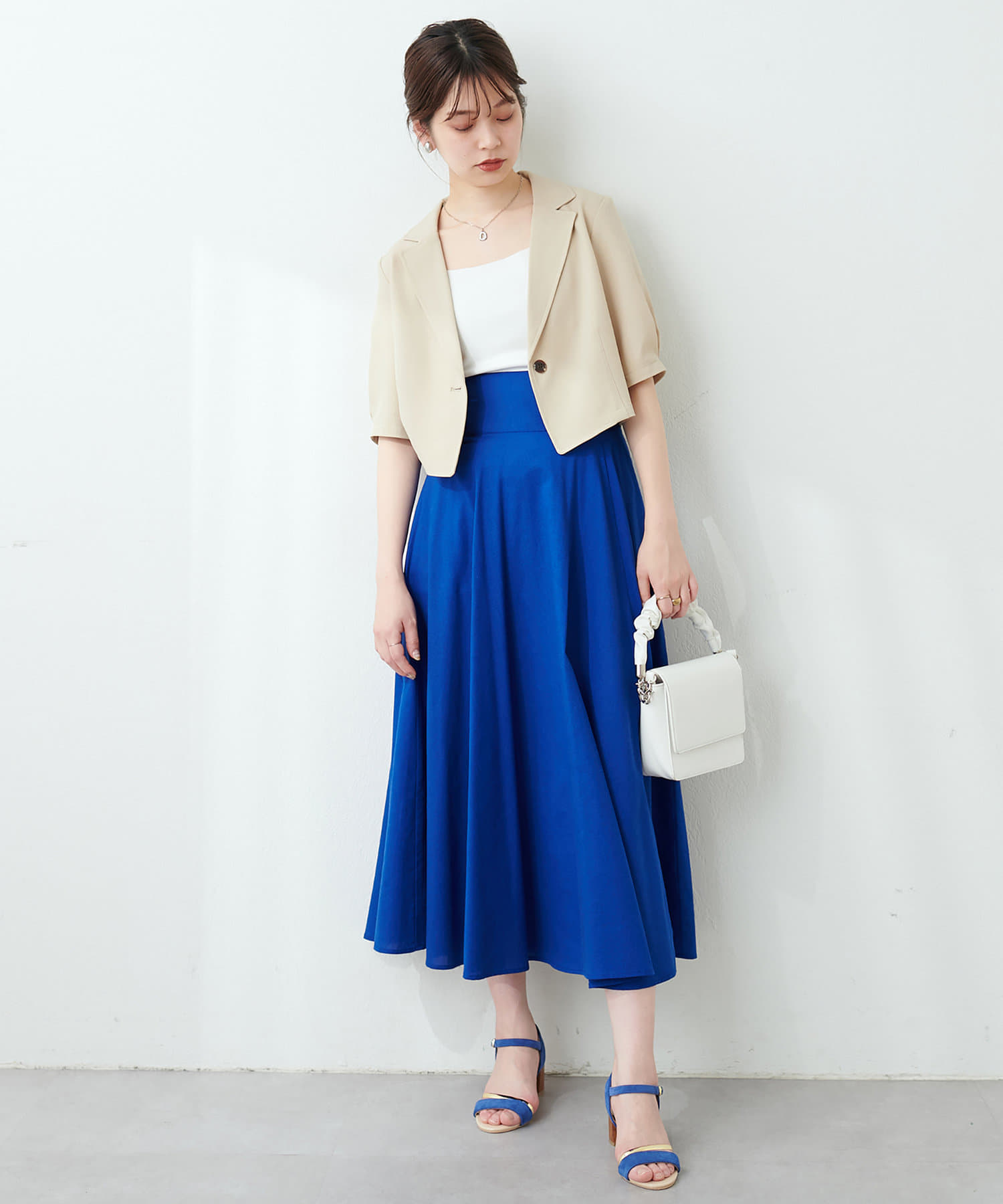 ジャケットは、フレアラインやナローデザインのスカートに合わせ、女性らしい上品なコーディネートにまとめて頂くのはもちろん、