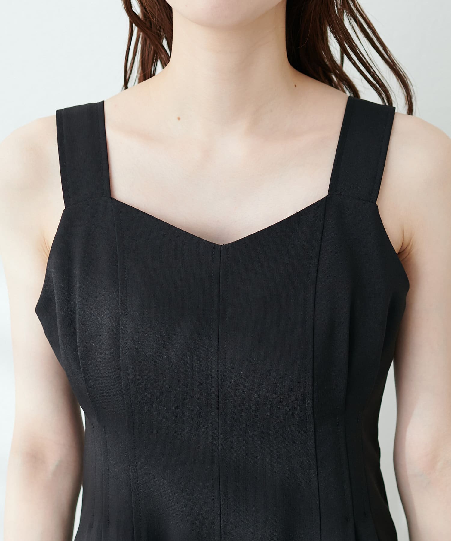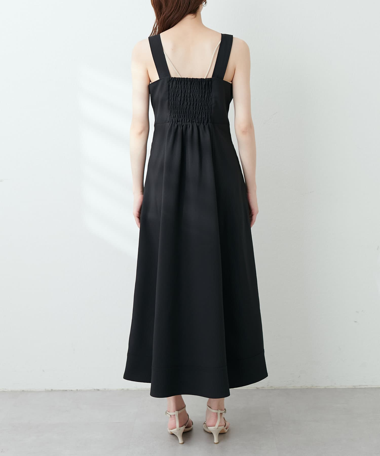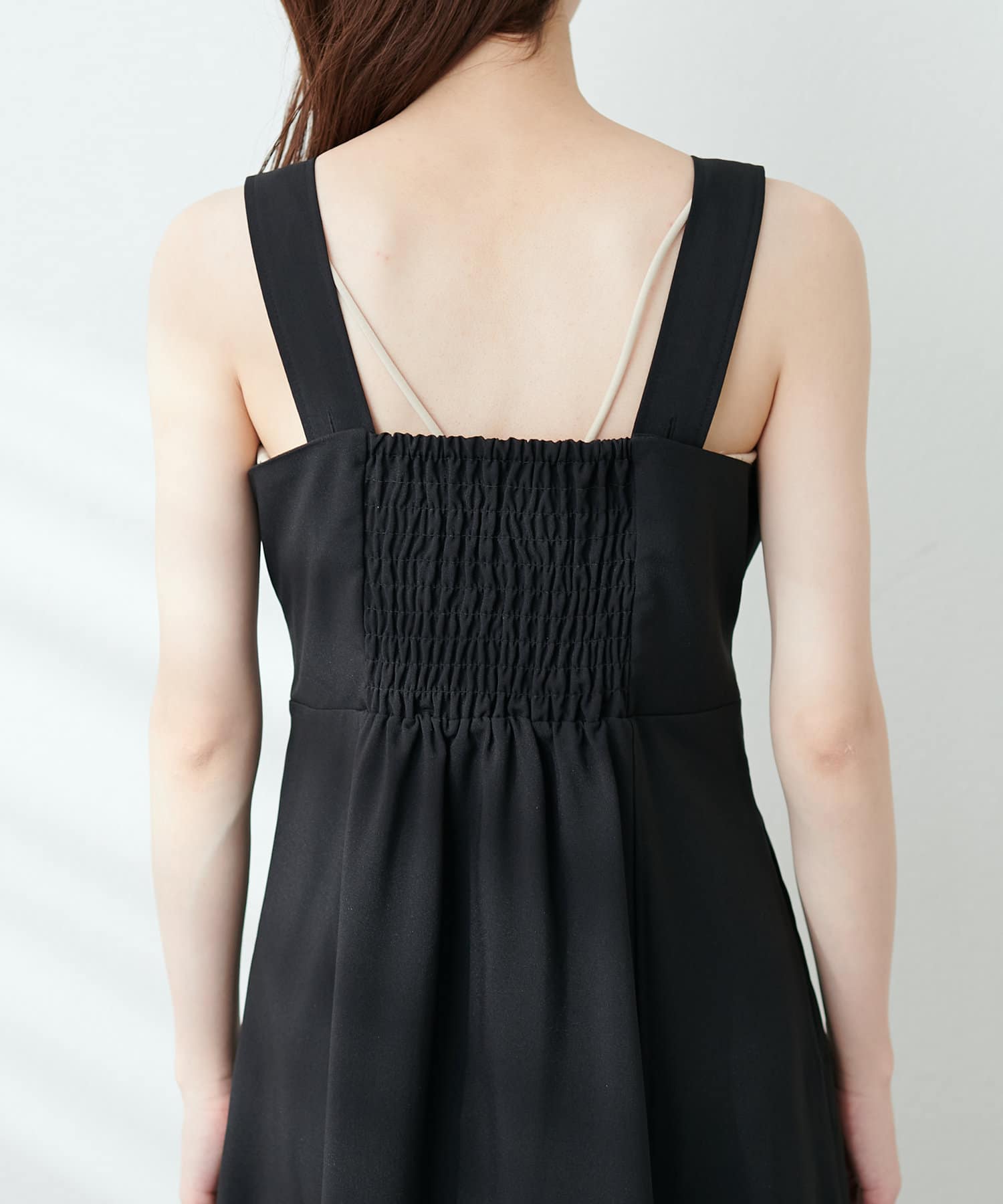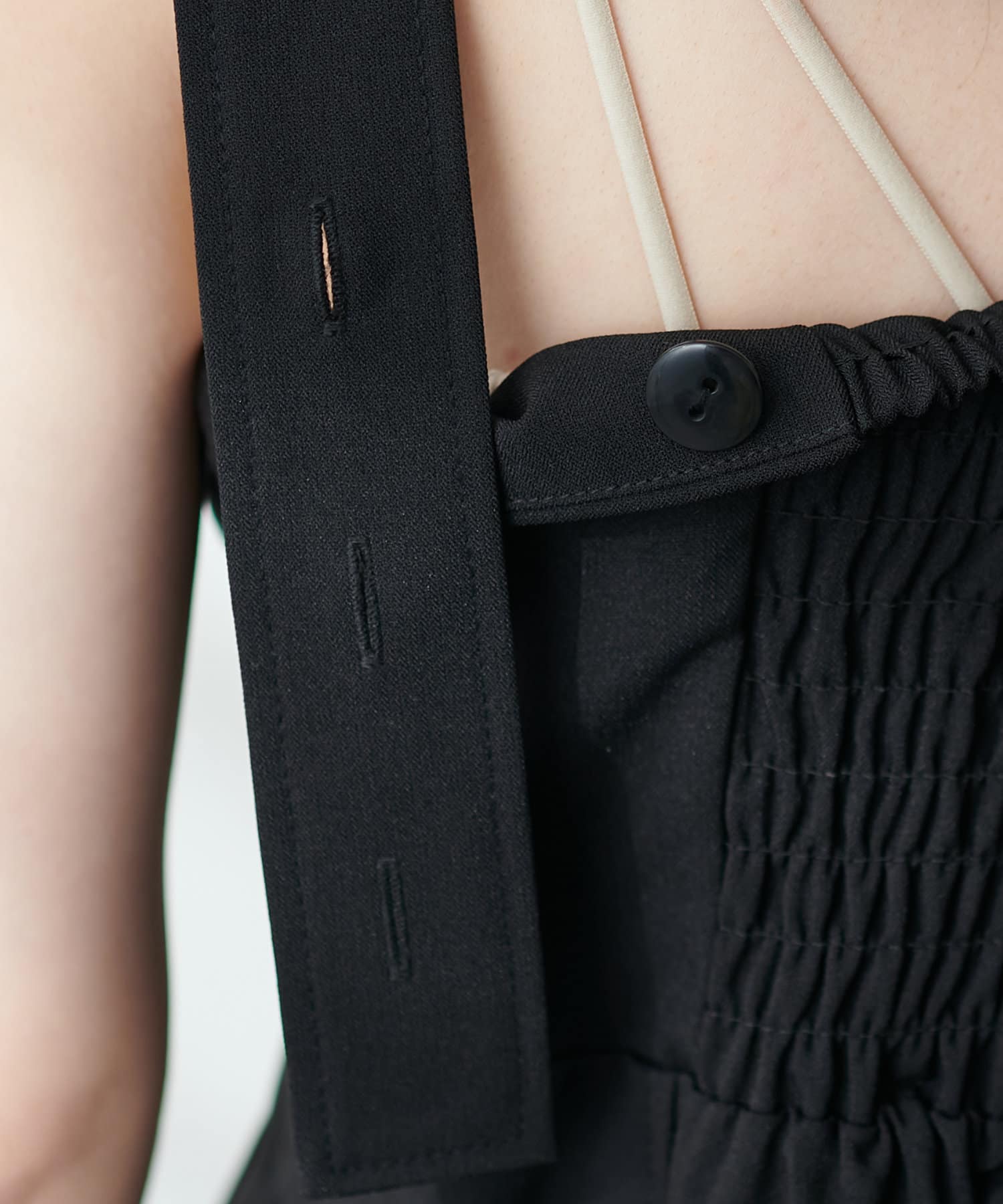 ワンピースの肩紐はボタンで調節可能です。左側にアジャスターが付いているので着脱も楽にして頂けます。
