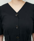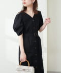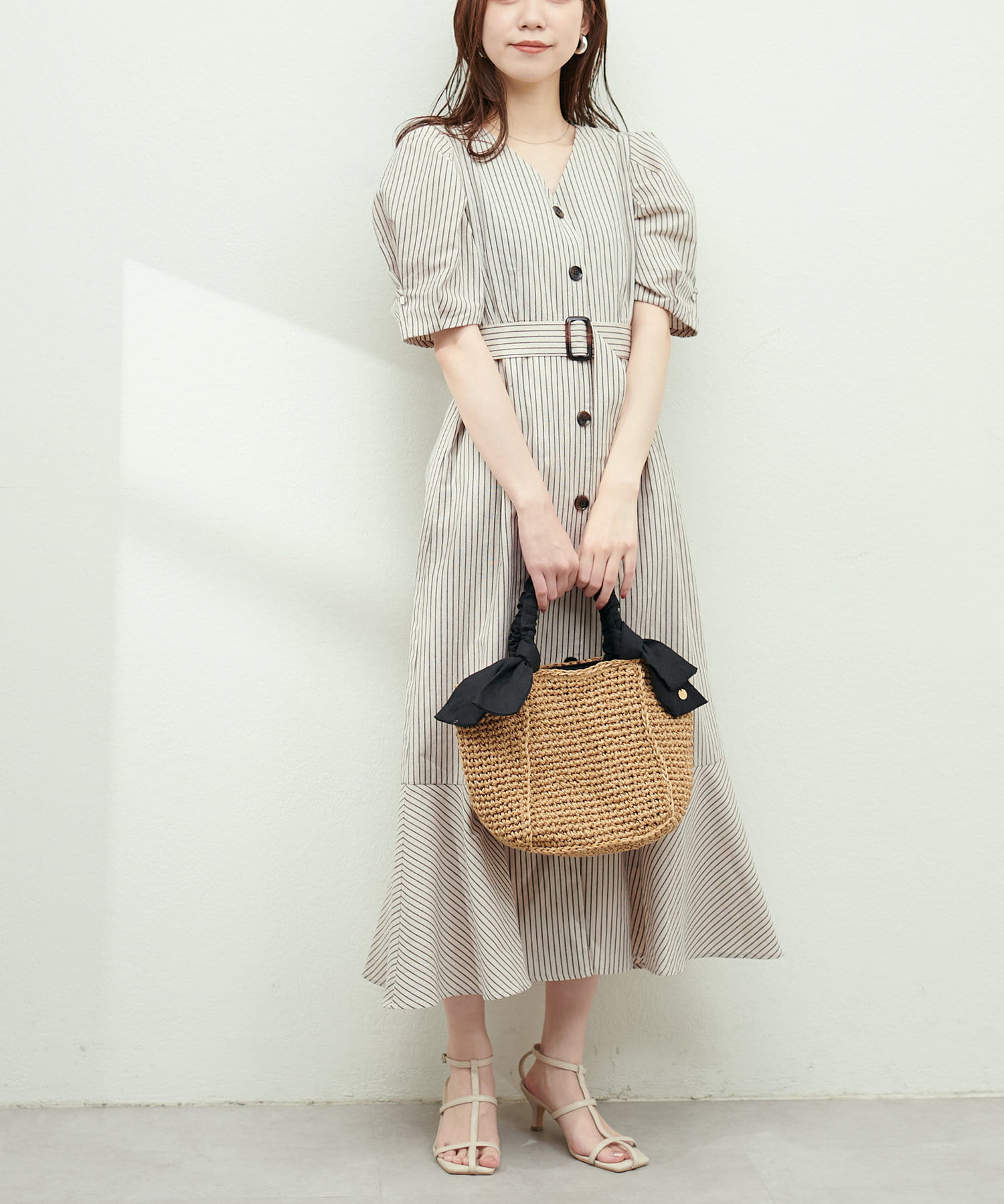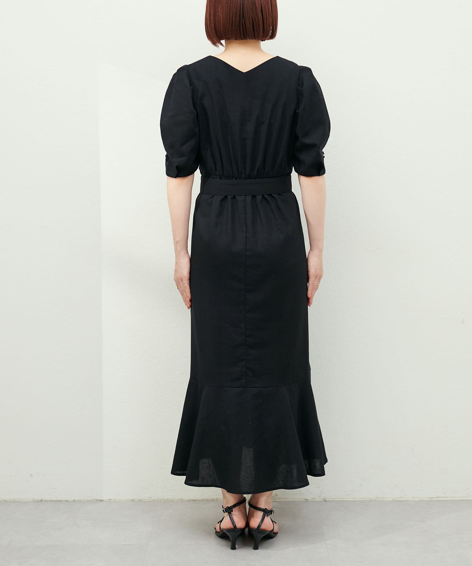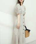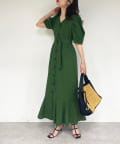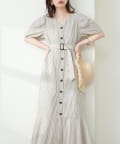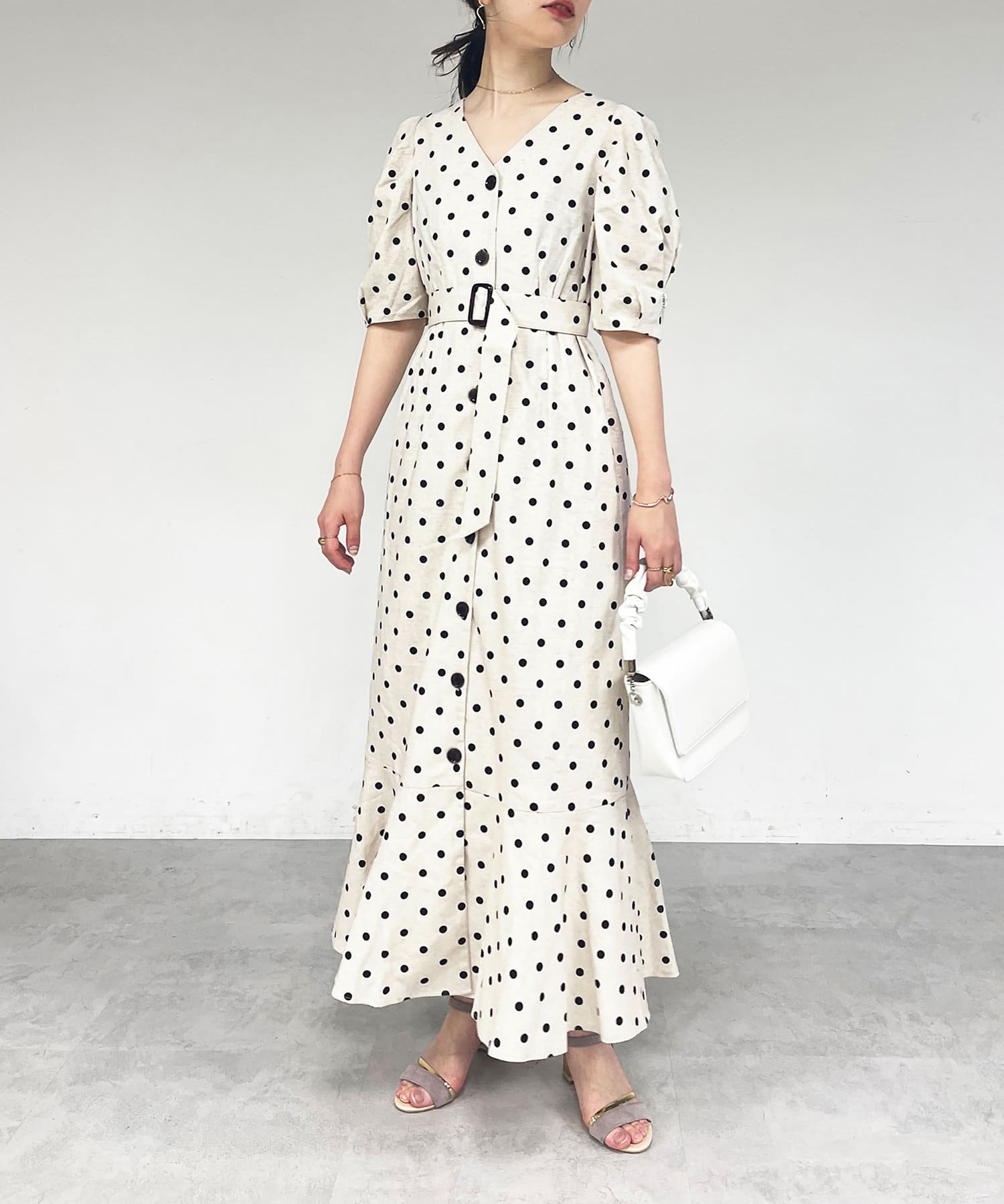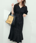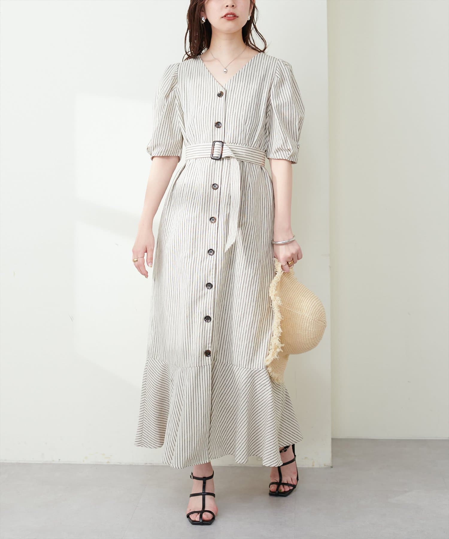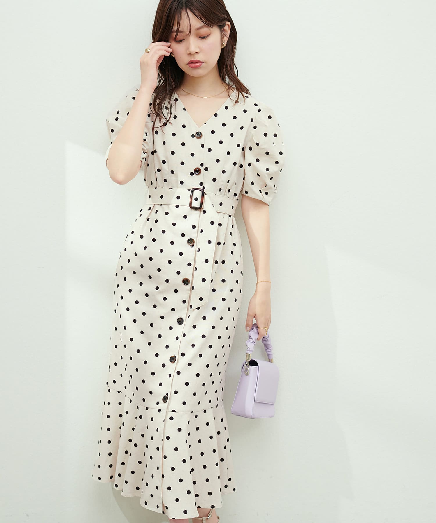【M/Lサイズ展開】ベルト付き綿麻べっ甲釦ワンピース