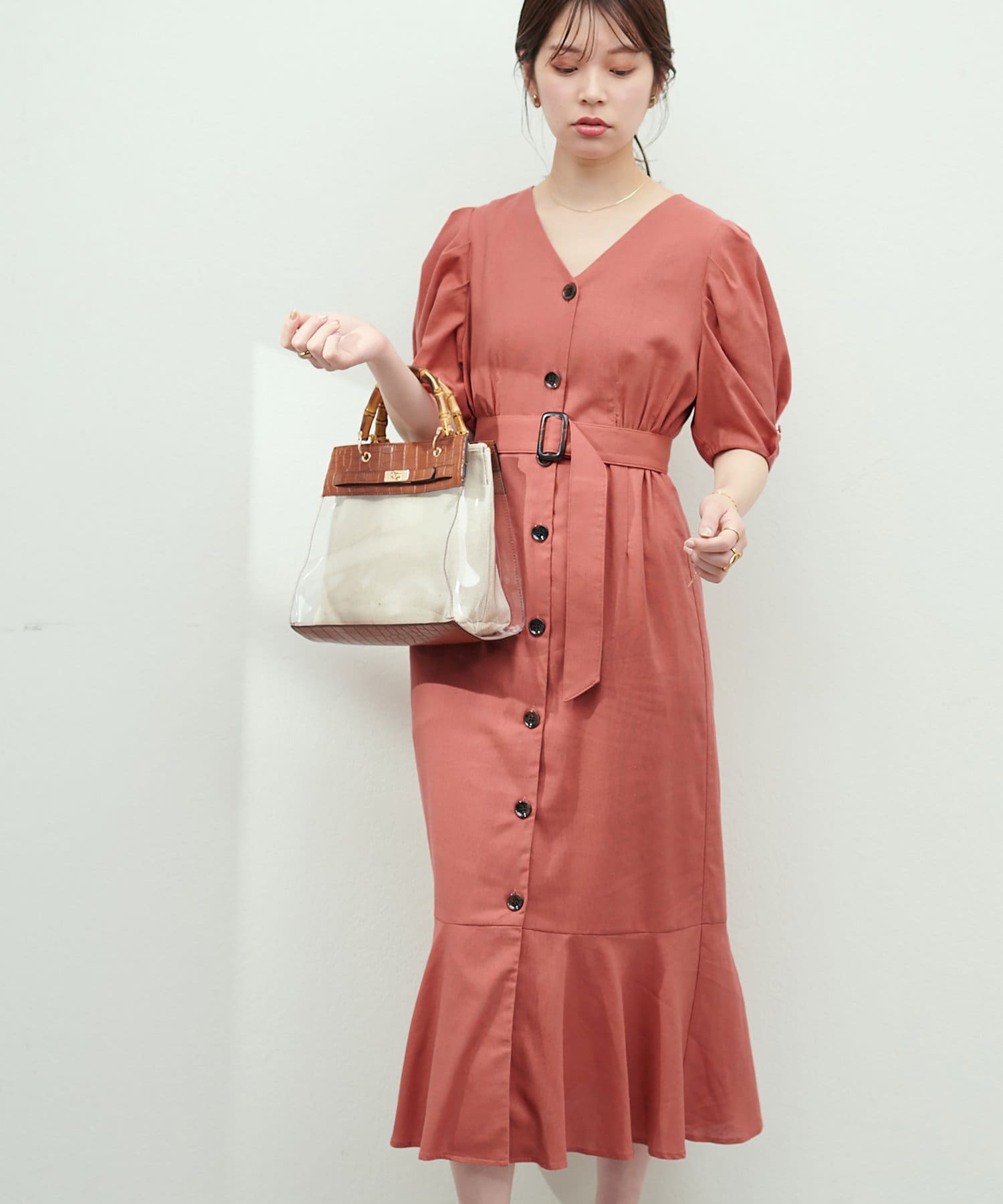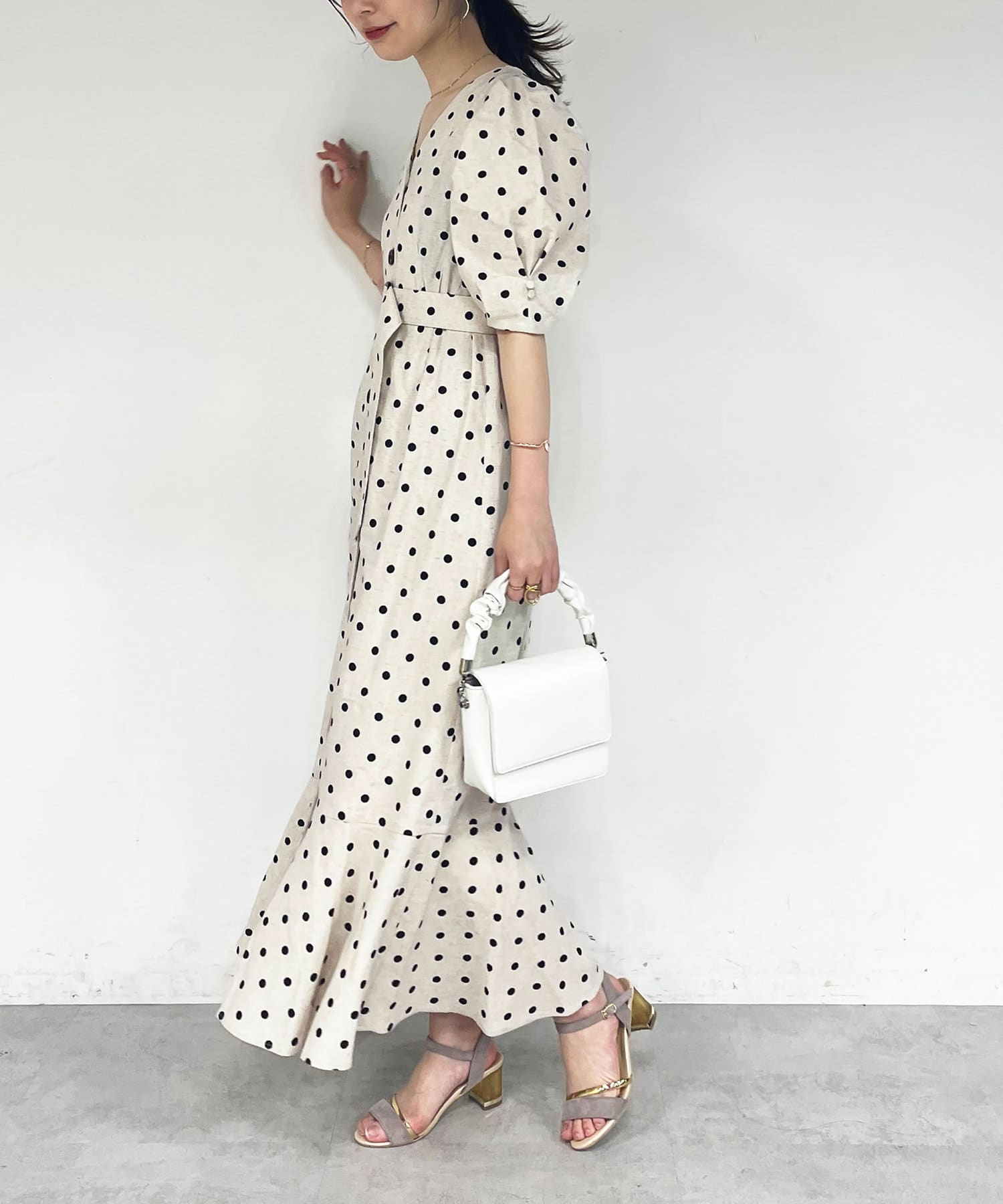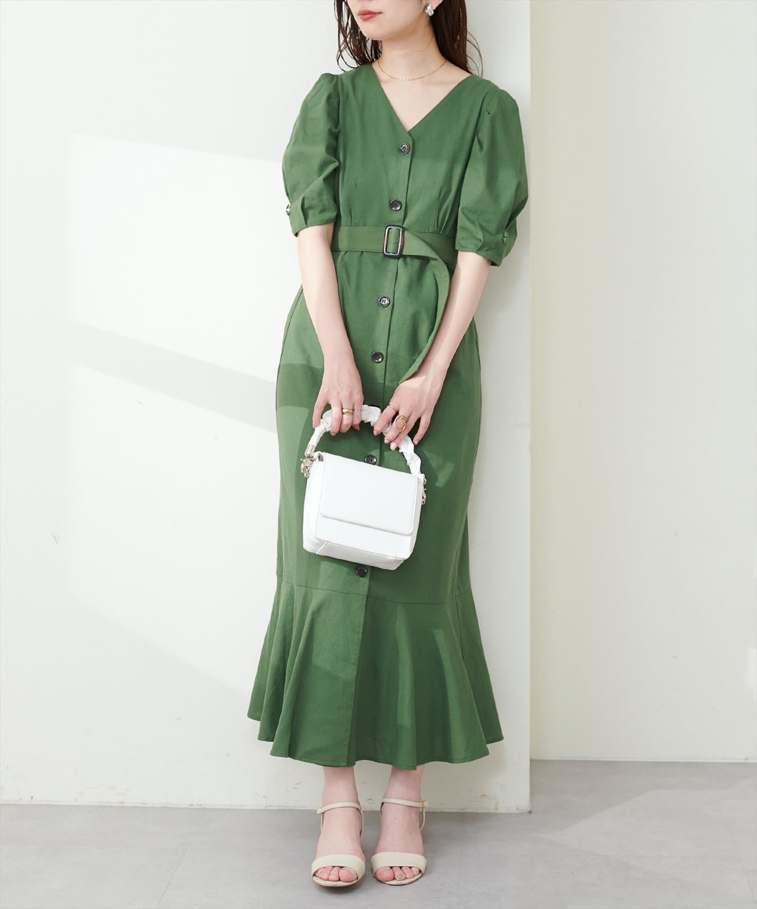 歩く度にふんわりと揺れるマーメイドラインがフェミニンな印象に。