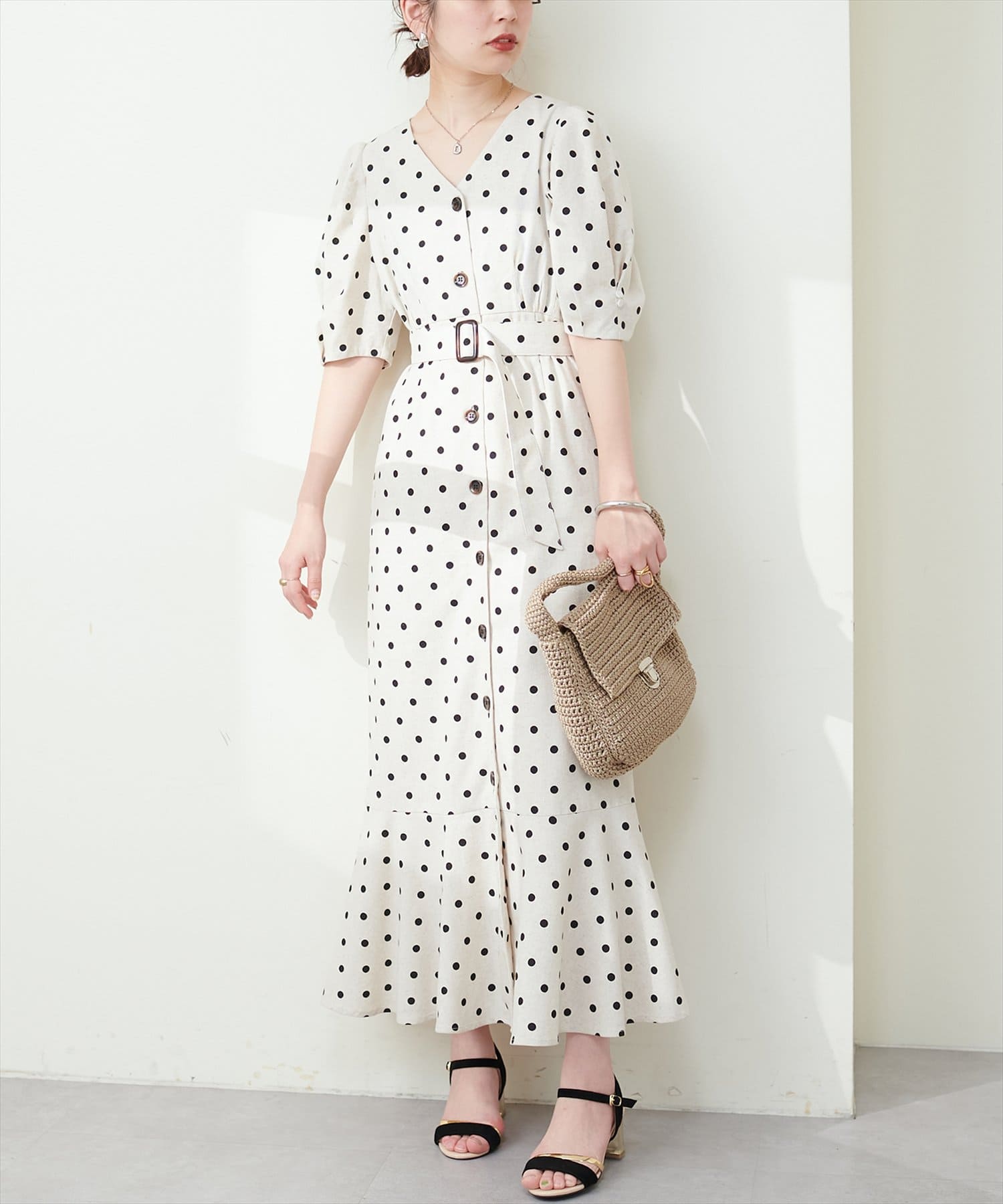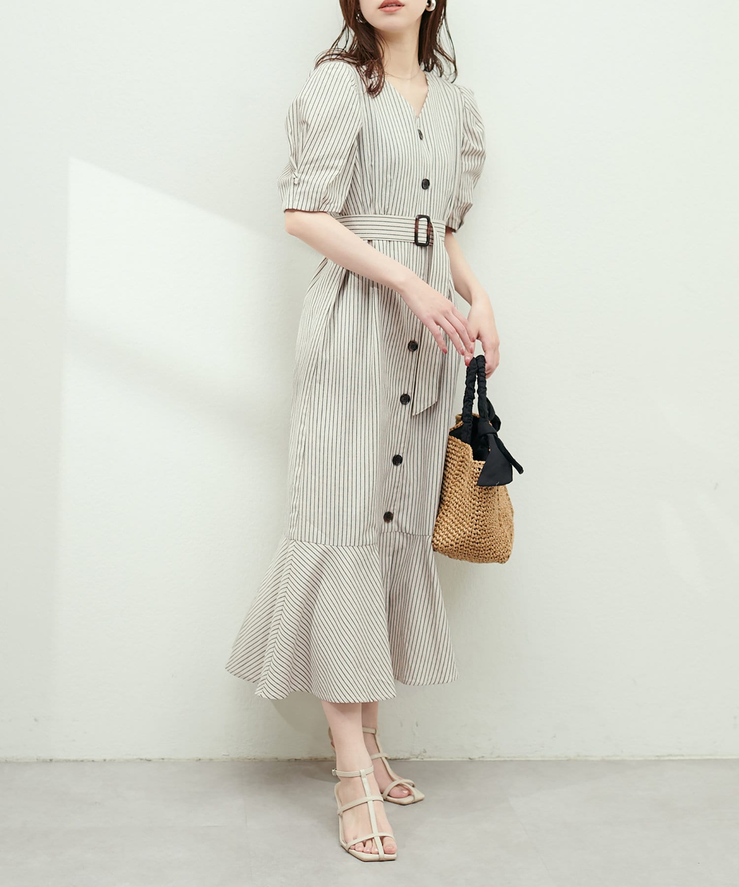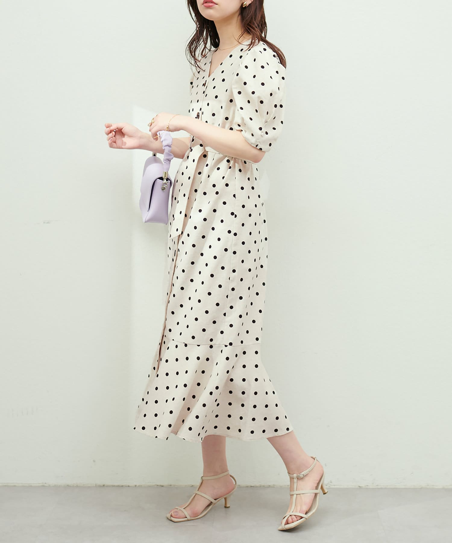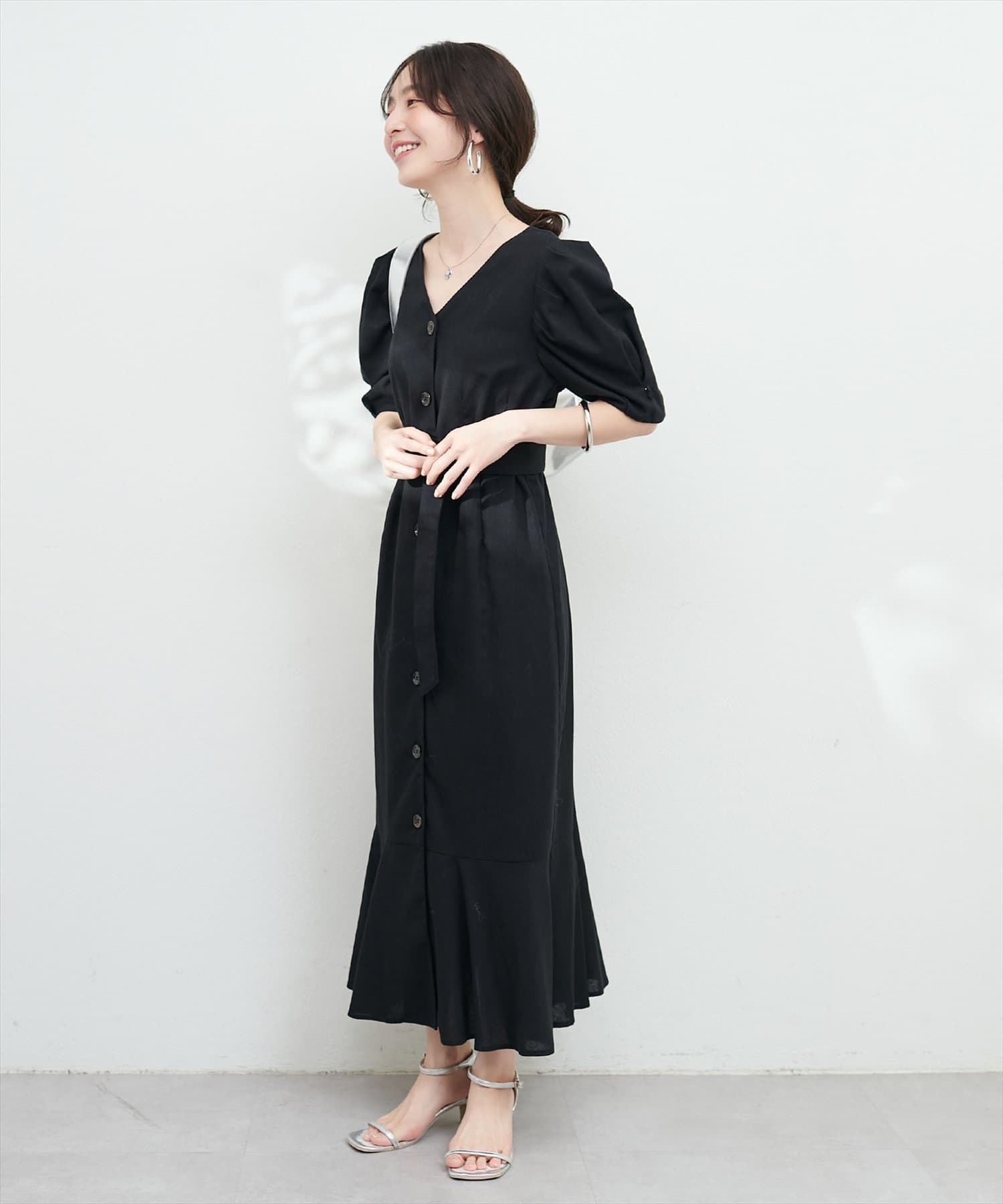 歩く度にふんわりと揺れるマーメイドラインがフェミニンな印象に。